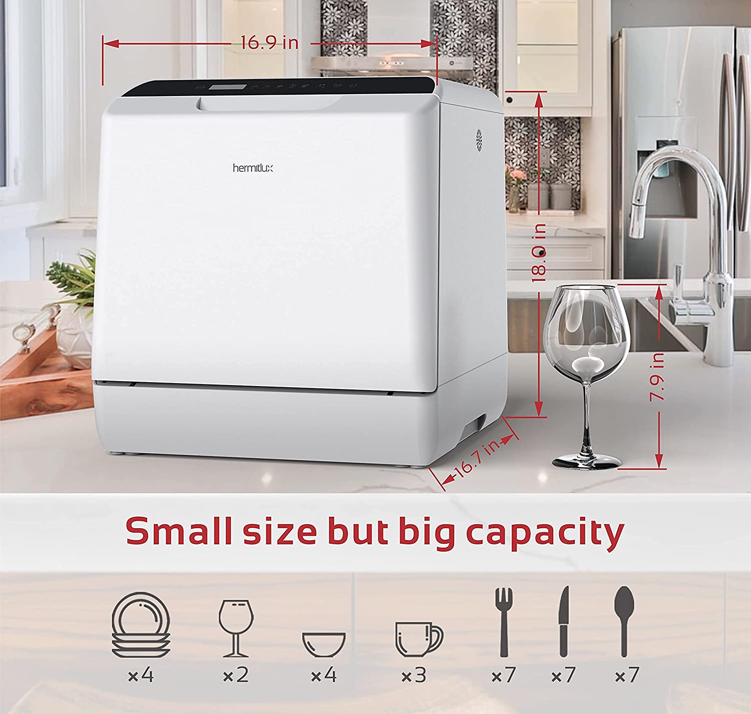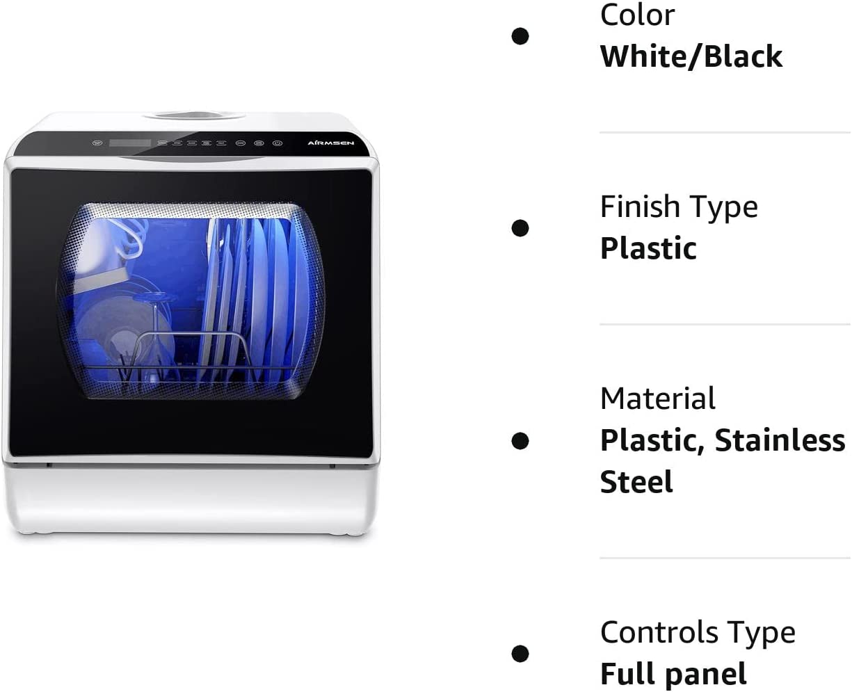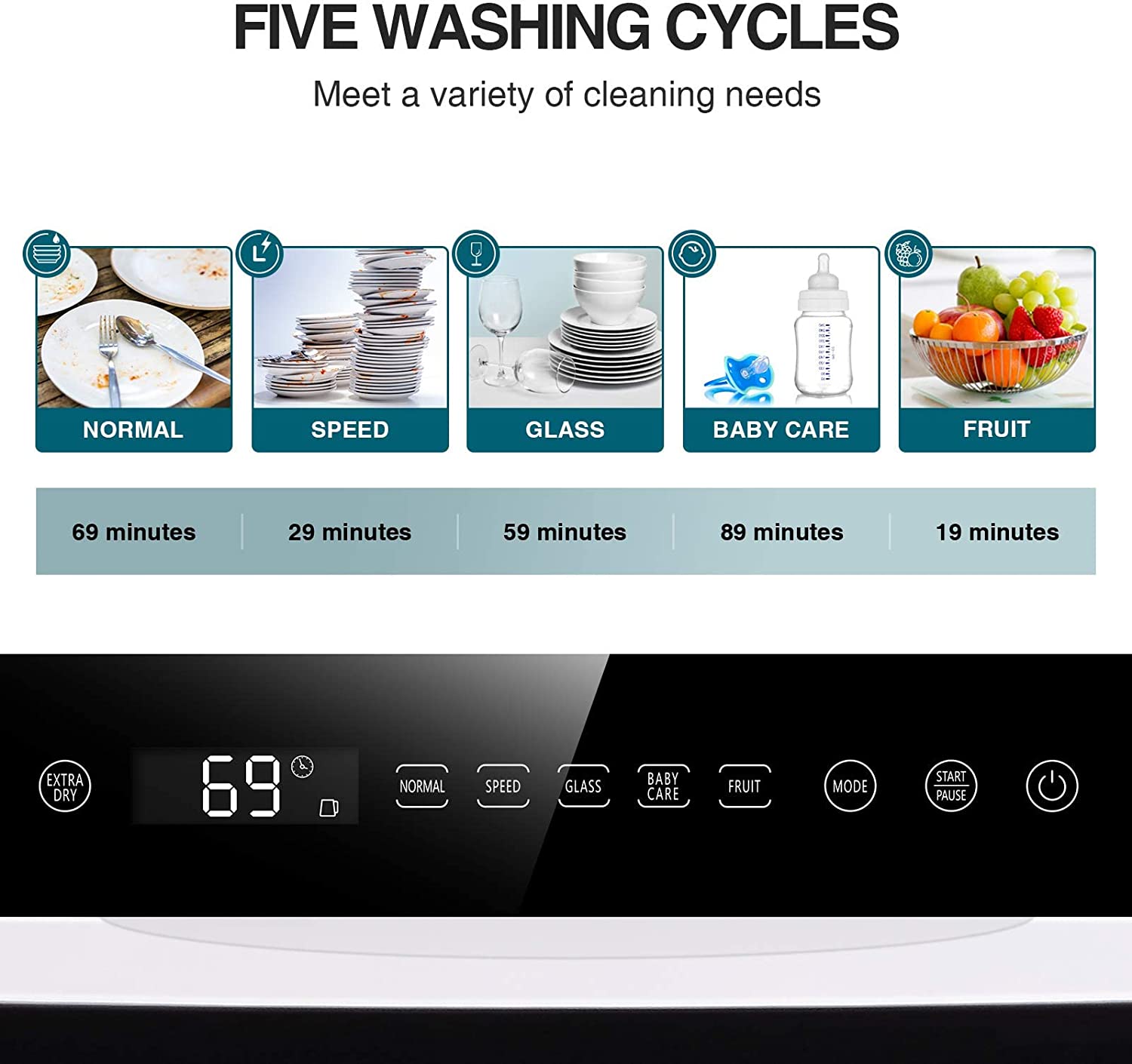 Portable Countertop Dishwasher. Compact Mini Dishwasher with 5L Built-in Water Tank. 5 Washing Programs & Air-Dry Function. Baby Care. Glass & Fruit Wash for Apartments. Dorms and RVs
