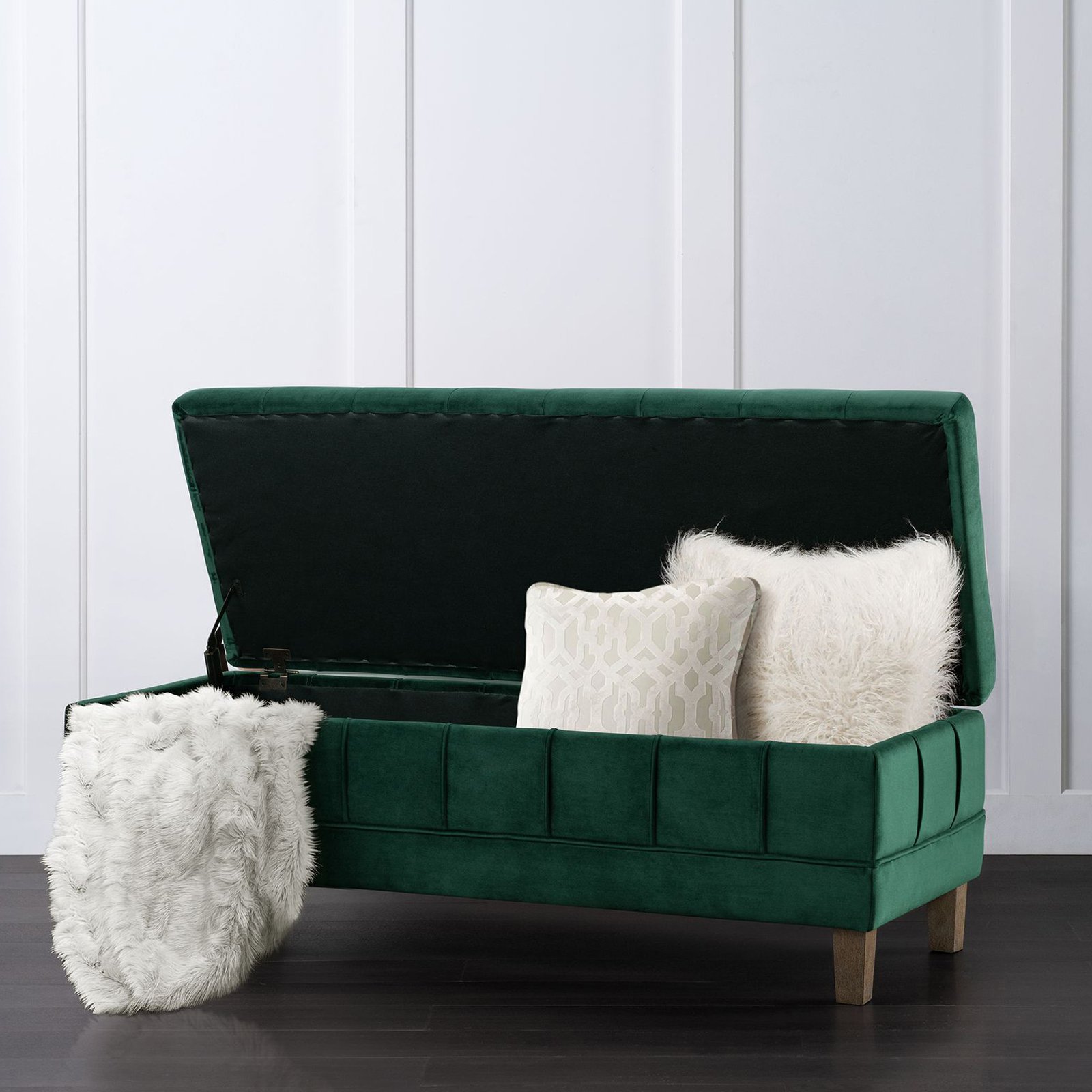 Picket House Furnishings Jude Tufted Velvet Bedroom Bench. Evergreen