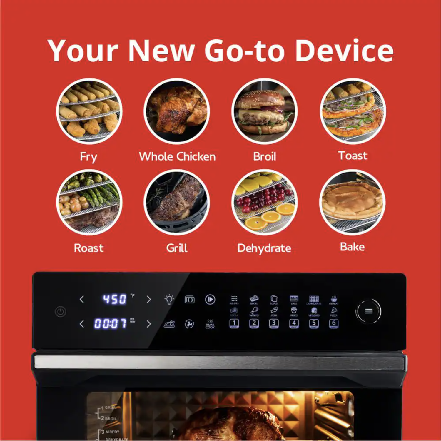 West Bend 12.6 Qt XL Air Fryer Oven - Bake. Roast. Rotisserie. Dehydrate. Re-Heat 10 Quick Menu Presets