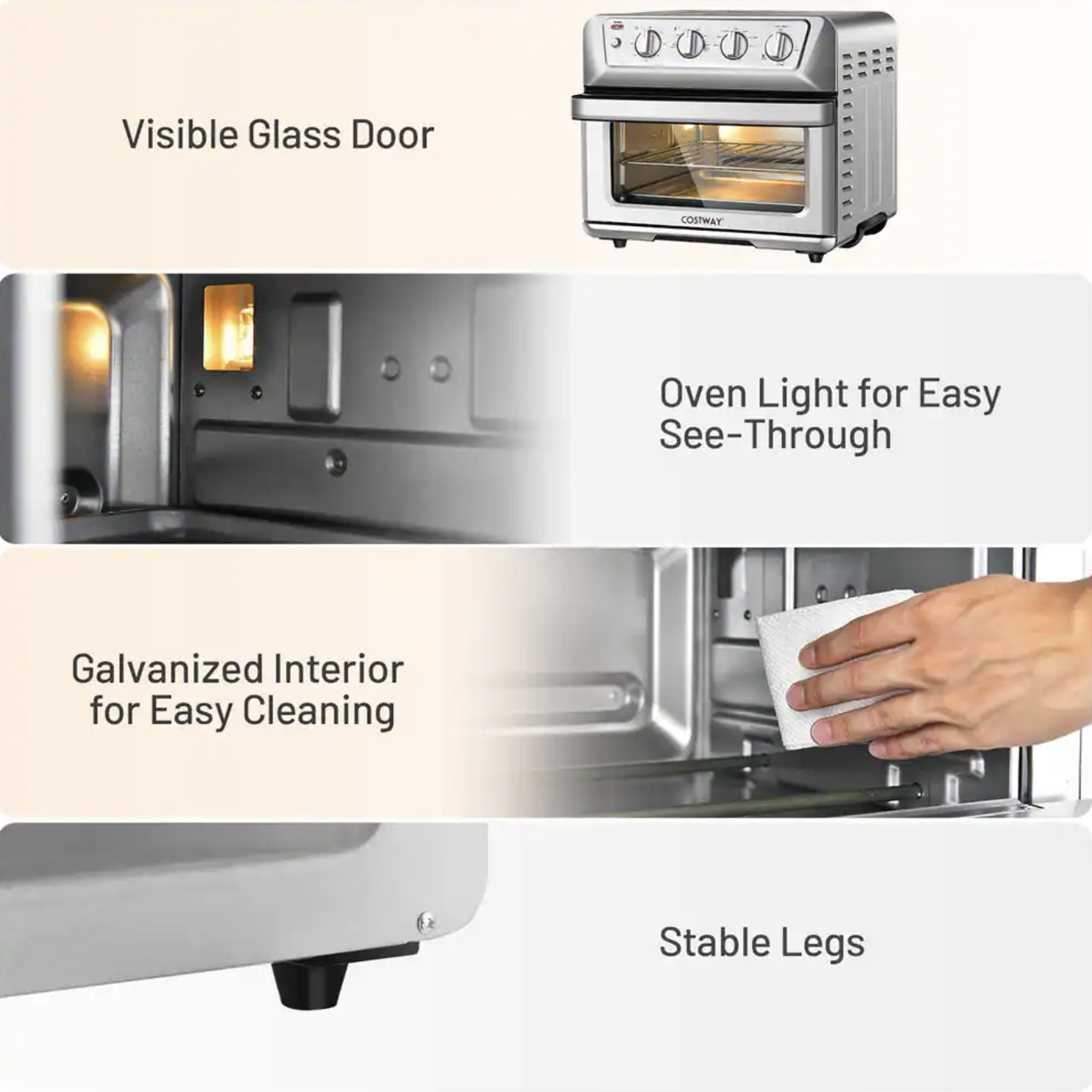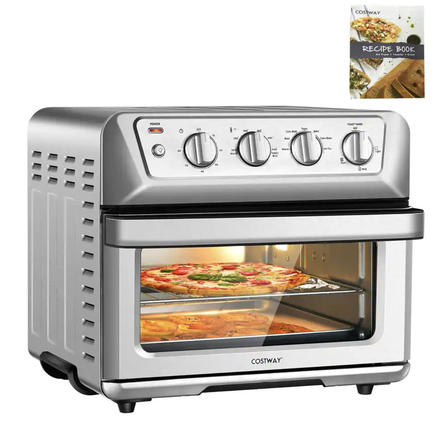 Costway 21.5 Qt. Silver Air Fryer Toaster Oven 1800-Watt Countertop Convection Oven with Recipe