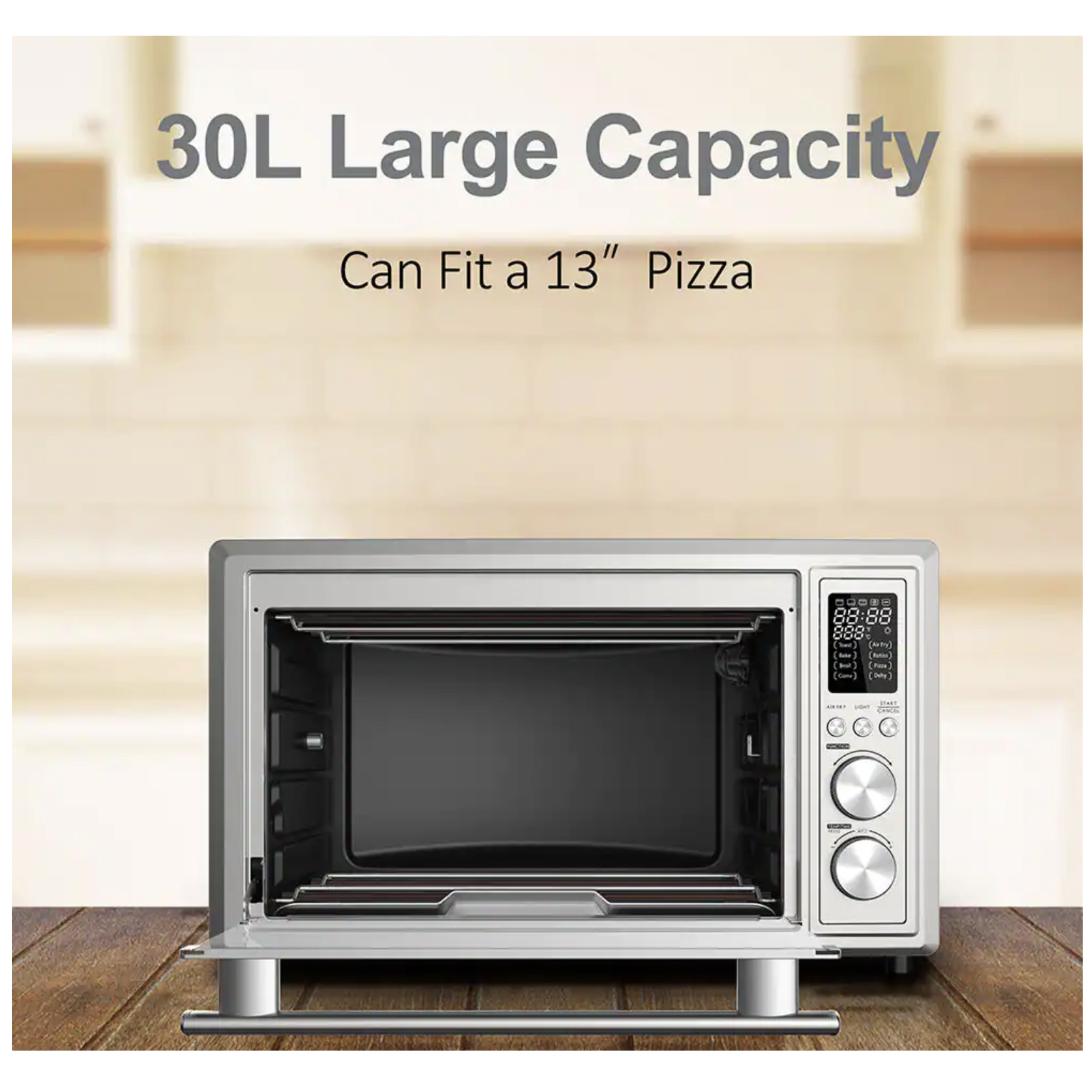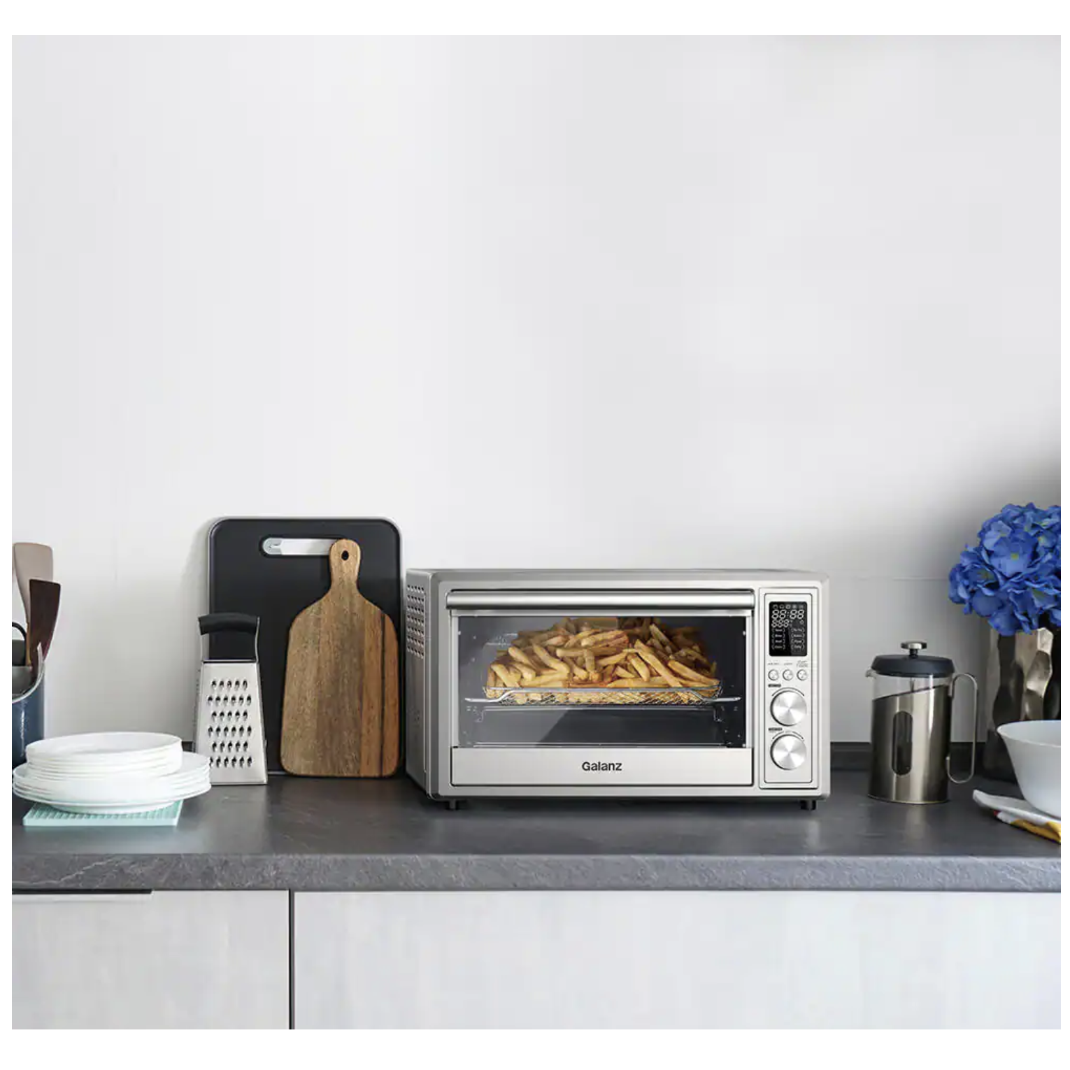 Galanz 1.1 Cu. Ft. 1800-Watt 6-Slice Stainless Steel Toaster Oven with Convection. Air Fryer and Rotisserie