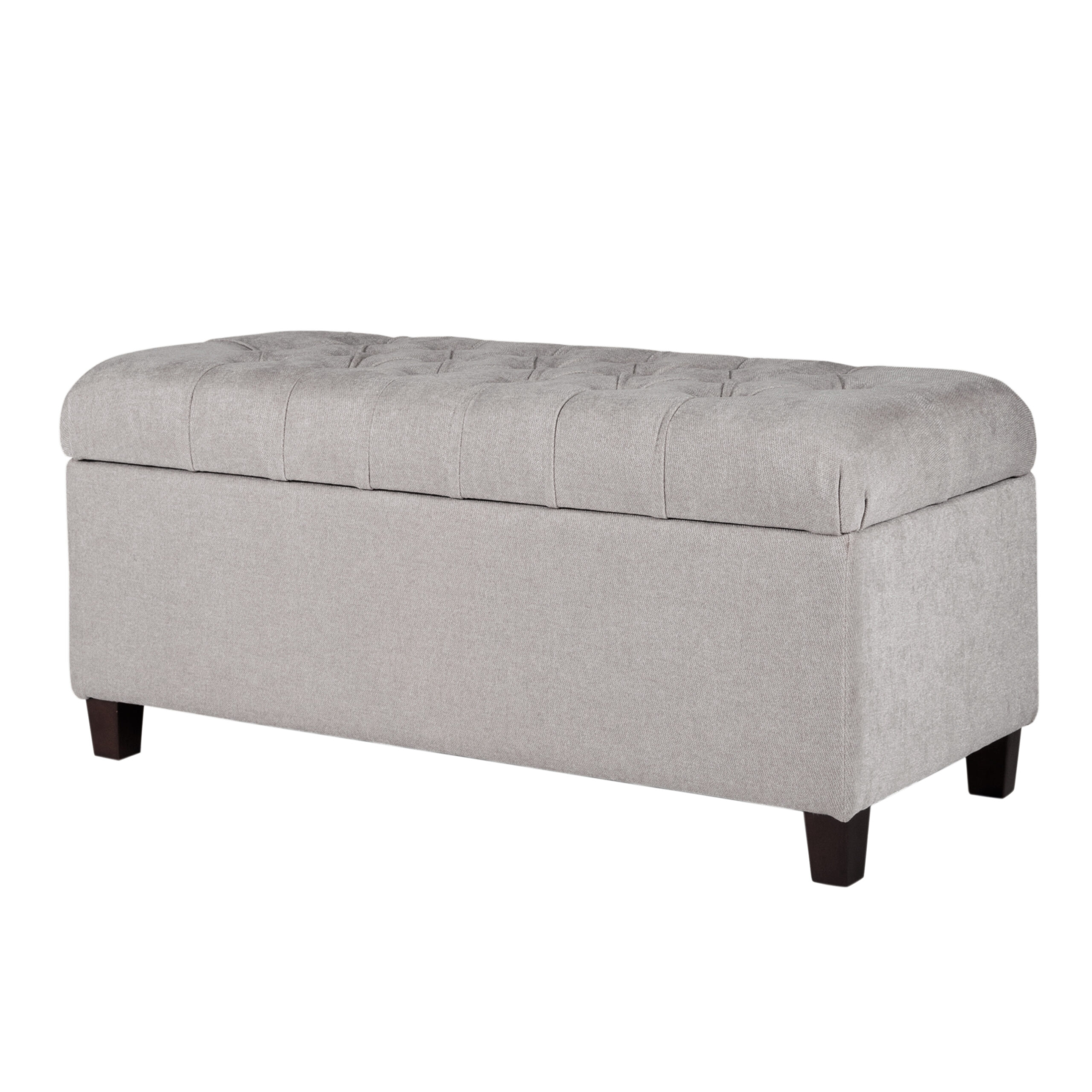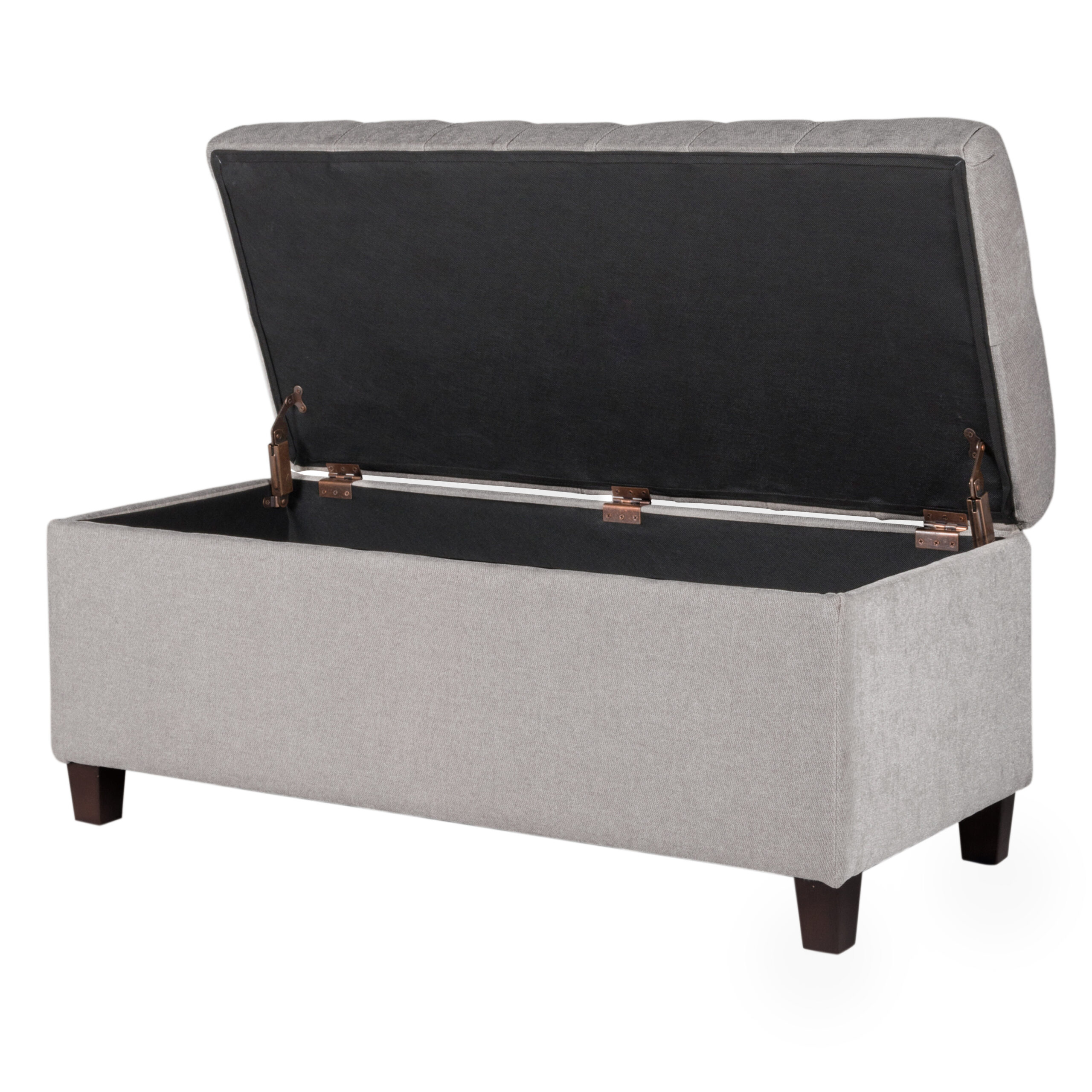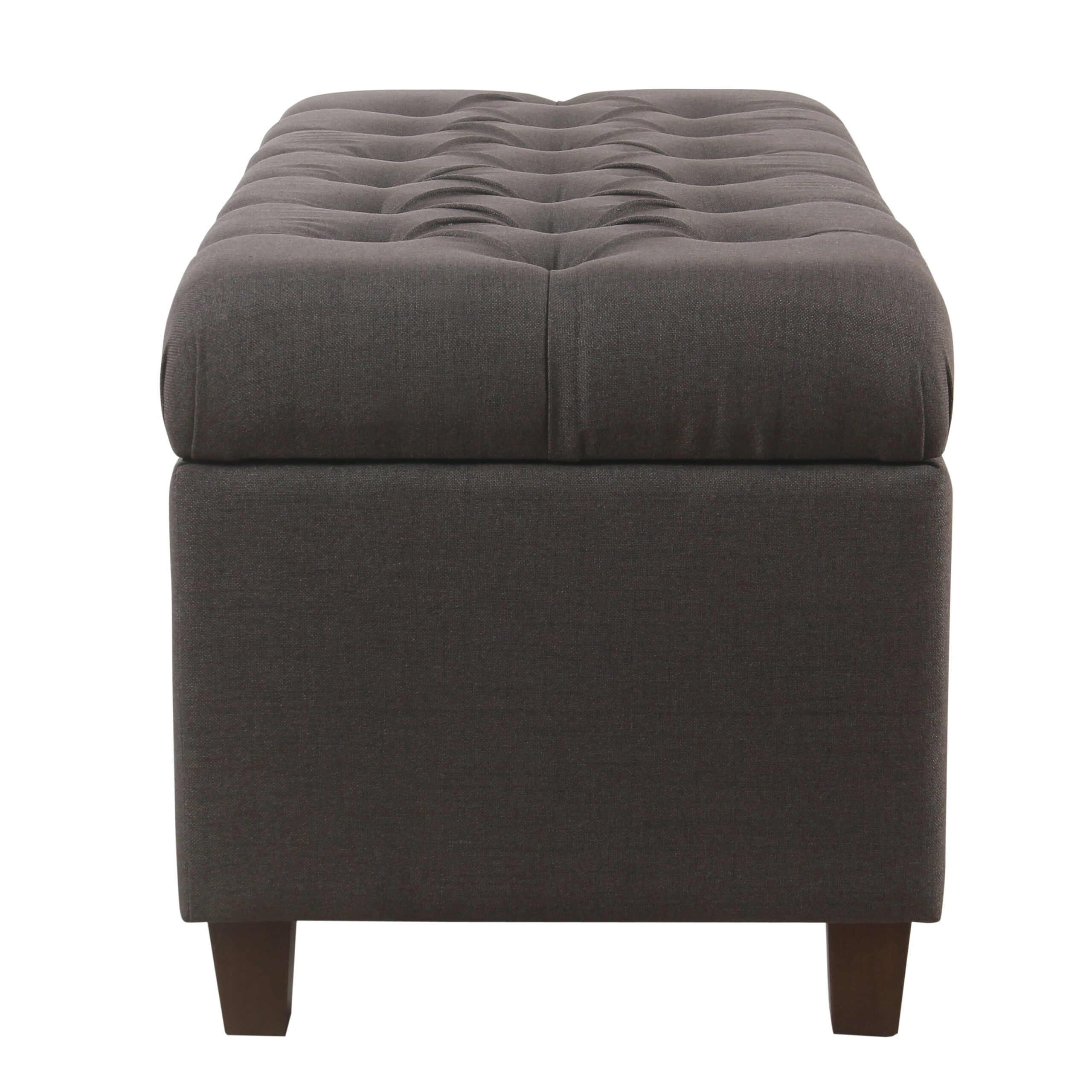 Fabric Upholstered Button Tufted Wooden Bench With Hinged Storage. Gray and Brown- Saltoro Sherpi