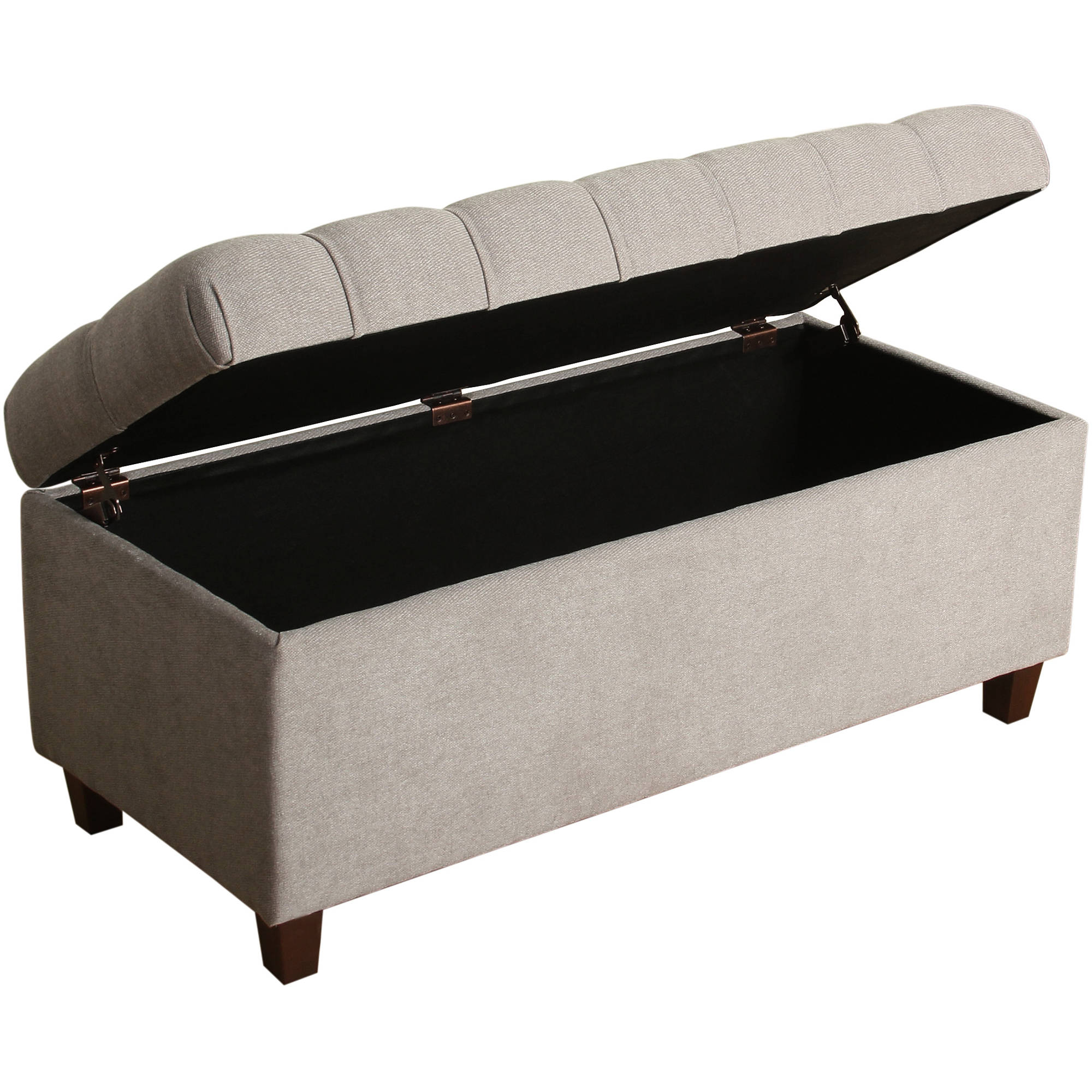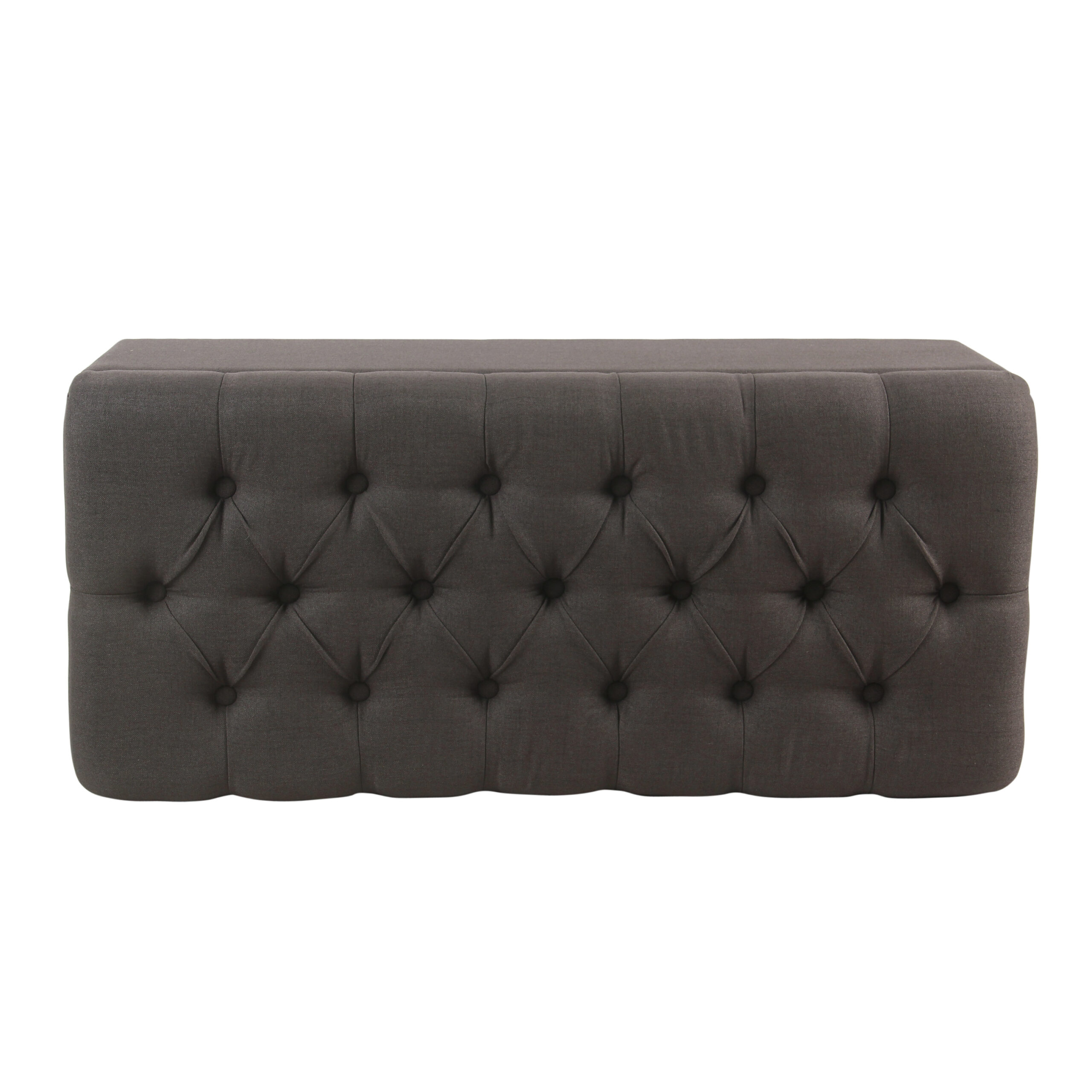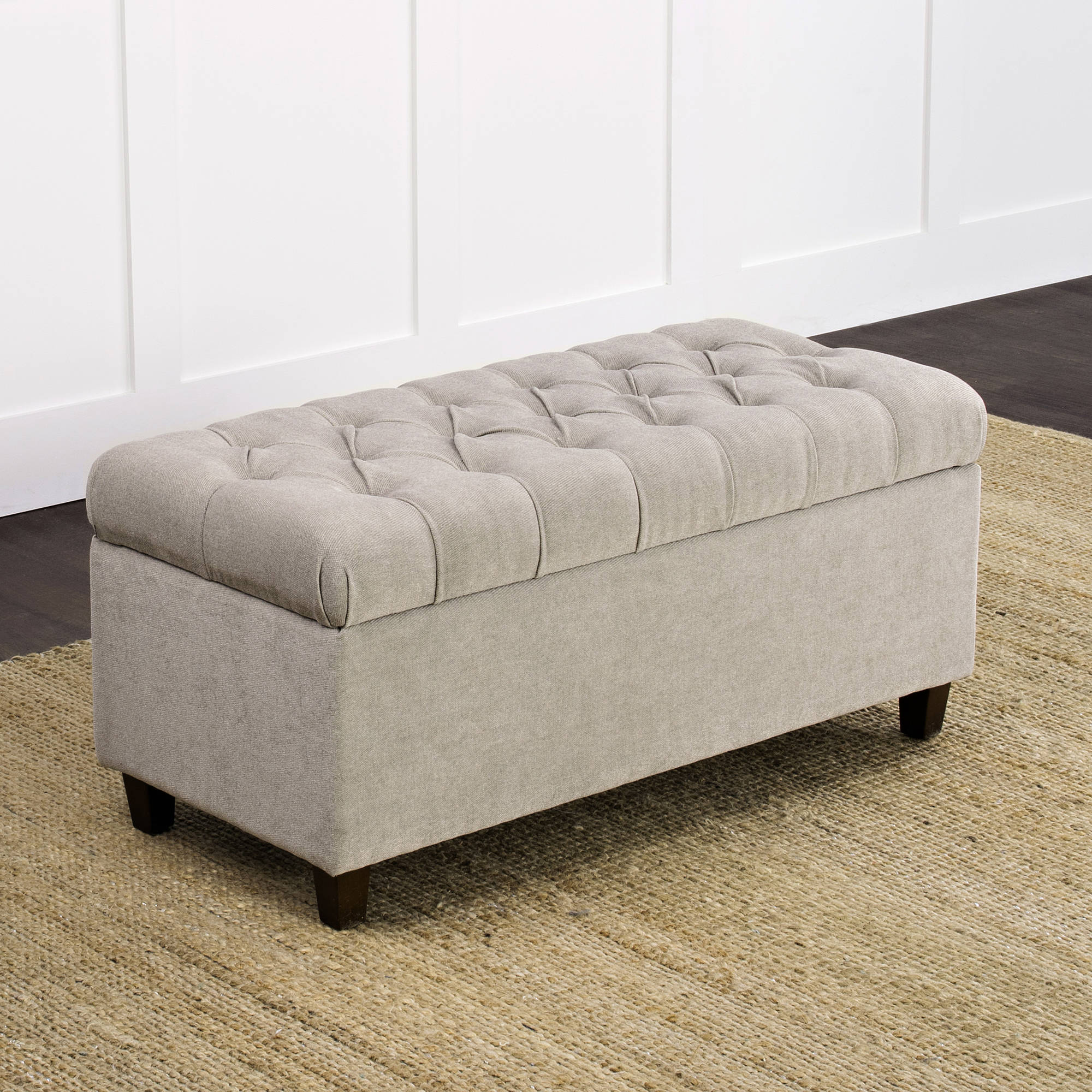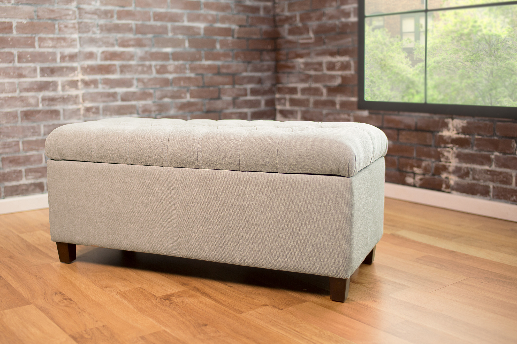 Fabric Upholstered Button Tufted Wooden Bench With Hinged Storage. Gray and Brown- Saltoro Sherpi