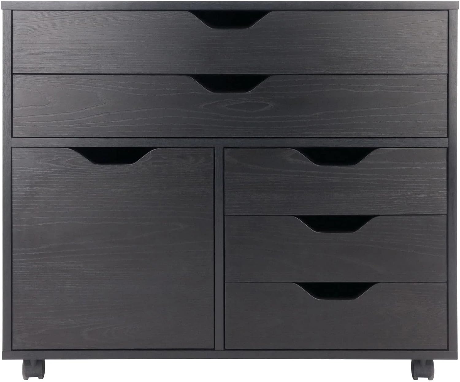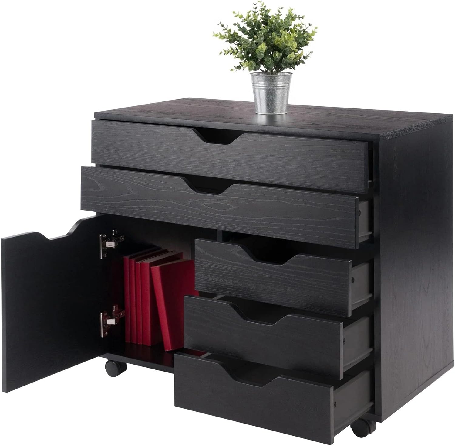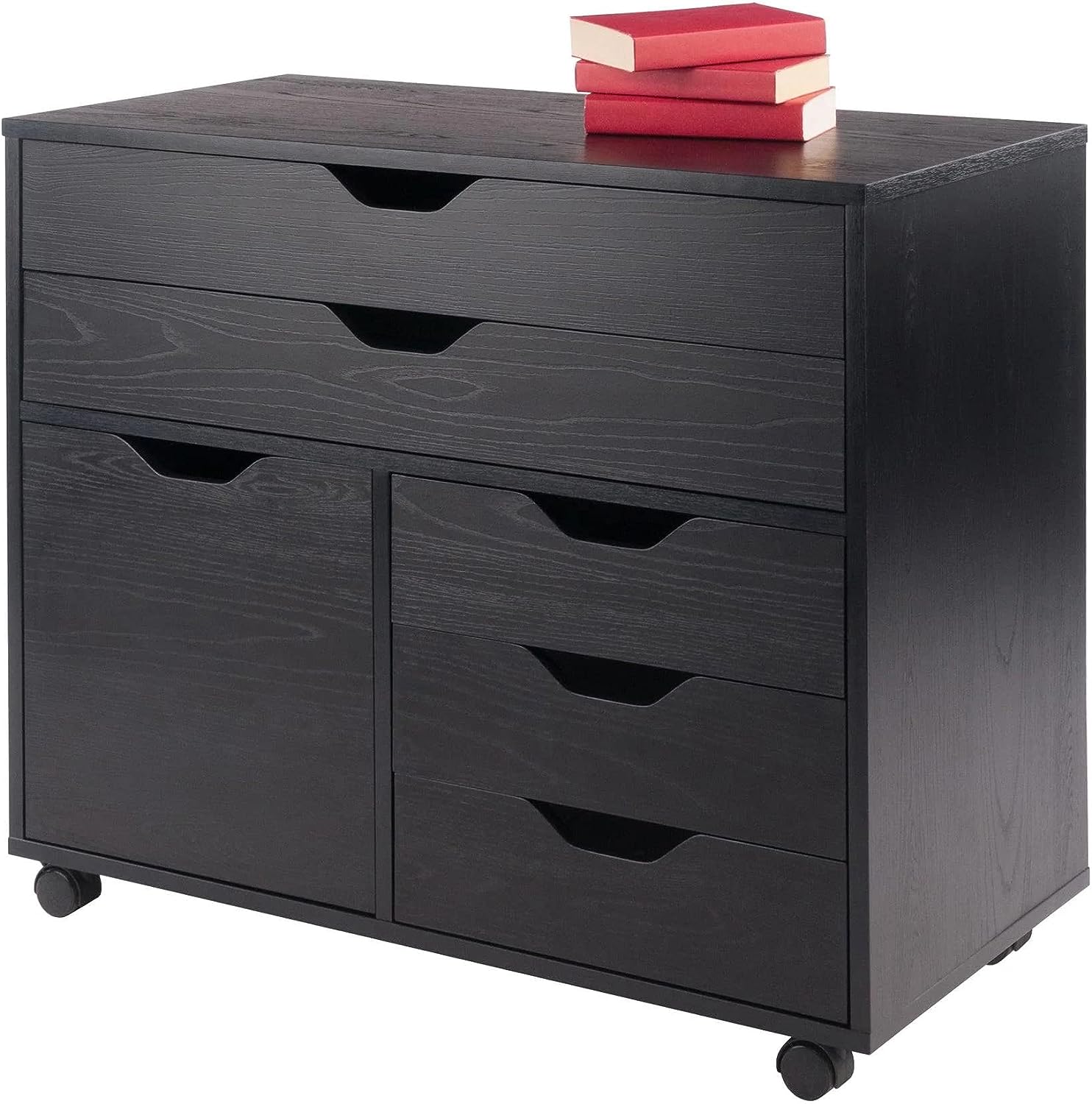 Simpli Home Owen 34 inch Wide Mid Century Modern Rectangle Coffee Table Storage Ottoman-Color:Ebony.Fabric:Tweed
