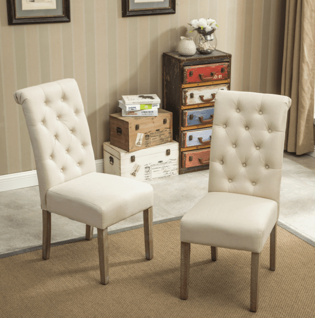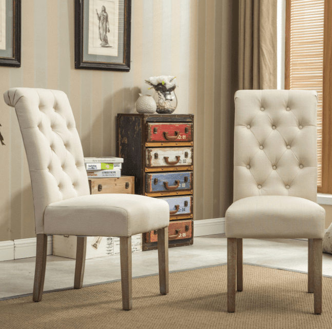 Roundhill Furniture Habit Contemporary Parsons Chair. Set of 2. Fabric and Solid Rubberwood. Purple