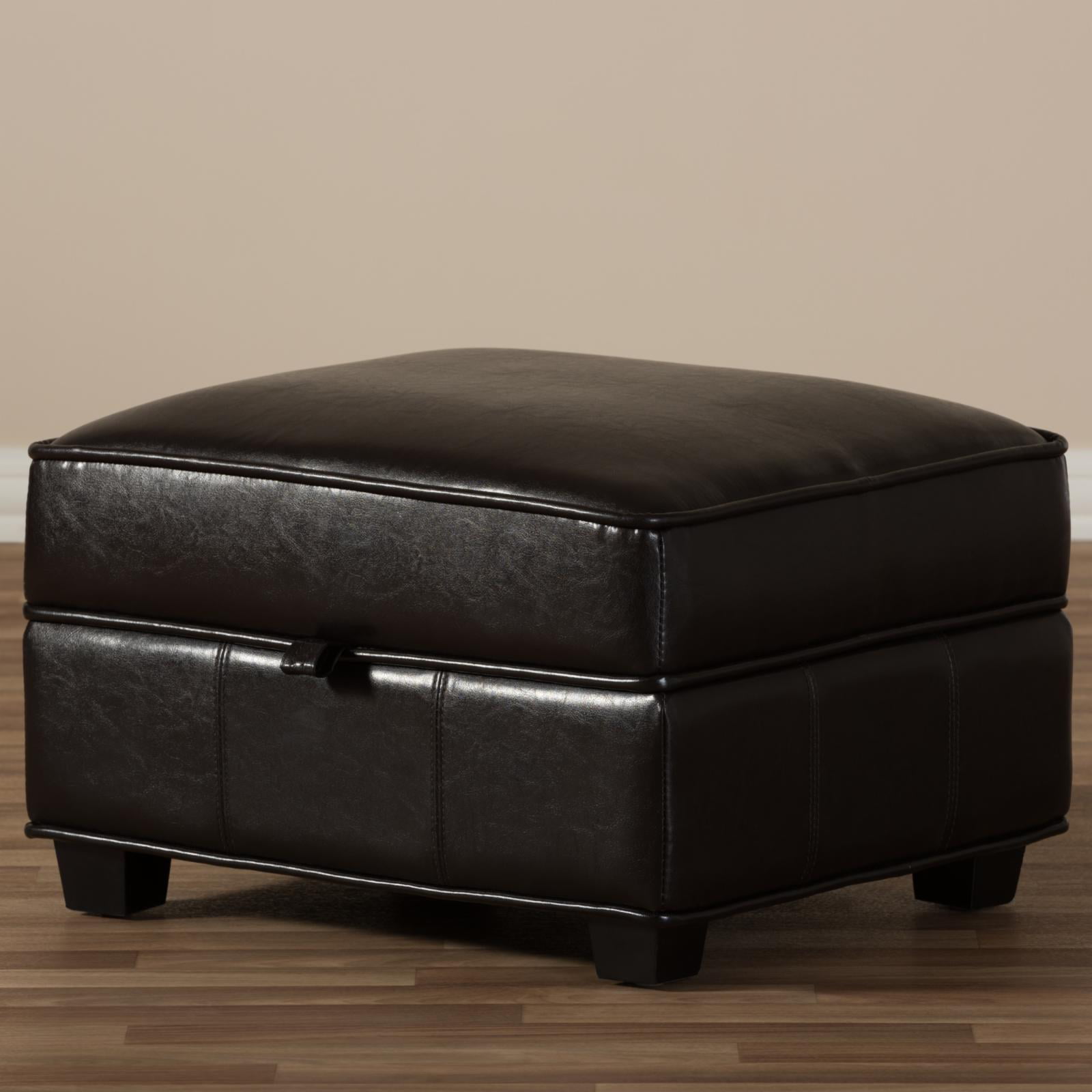 Baxton Studio Benvolio Leather Storage Ottoman - Dark Brown