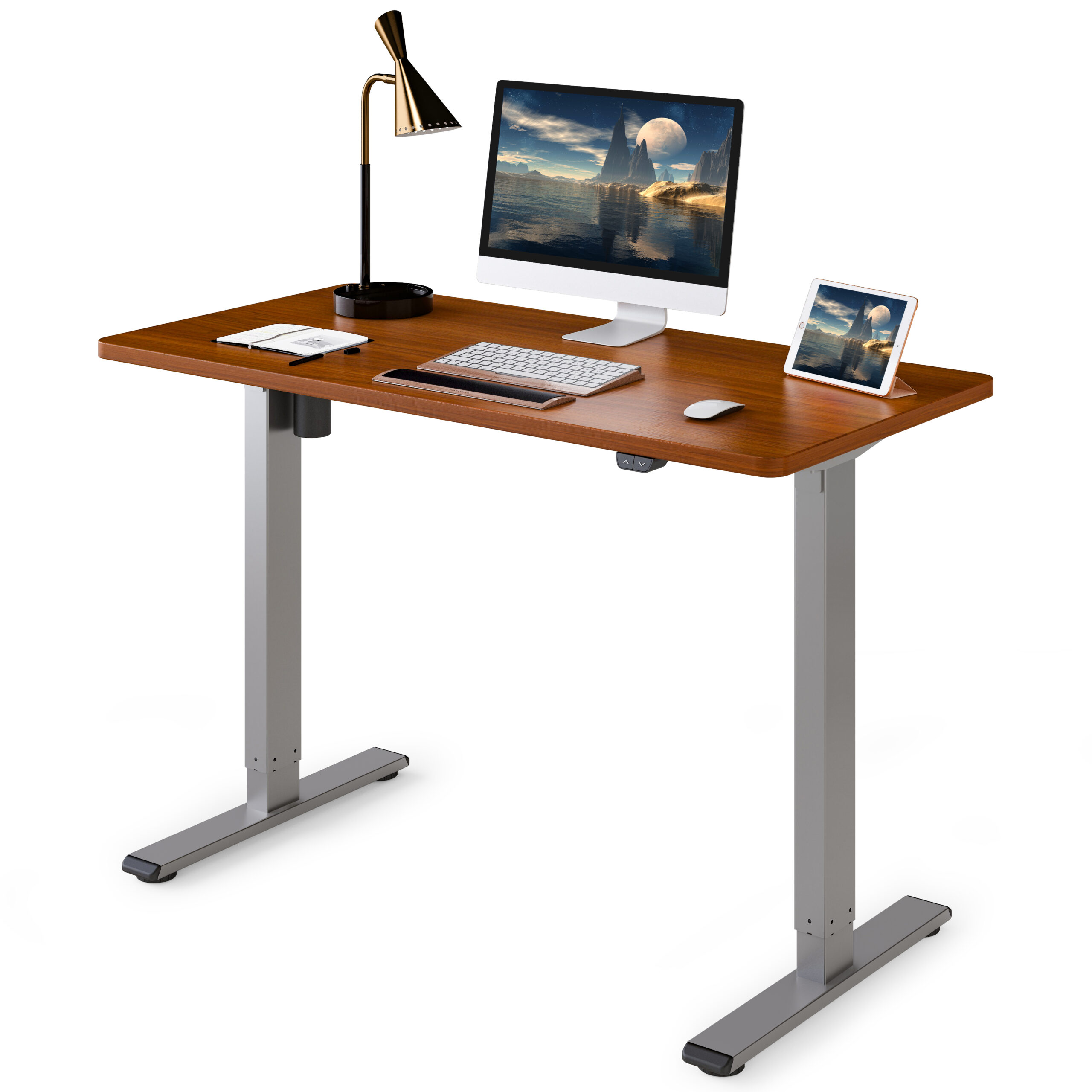FLEXISPOT 48″x30″ Ergonomic Home Office Electric Height Adjustable Standing Desk Gray and Mahogany