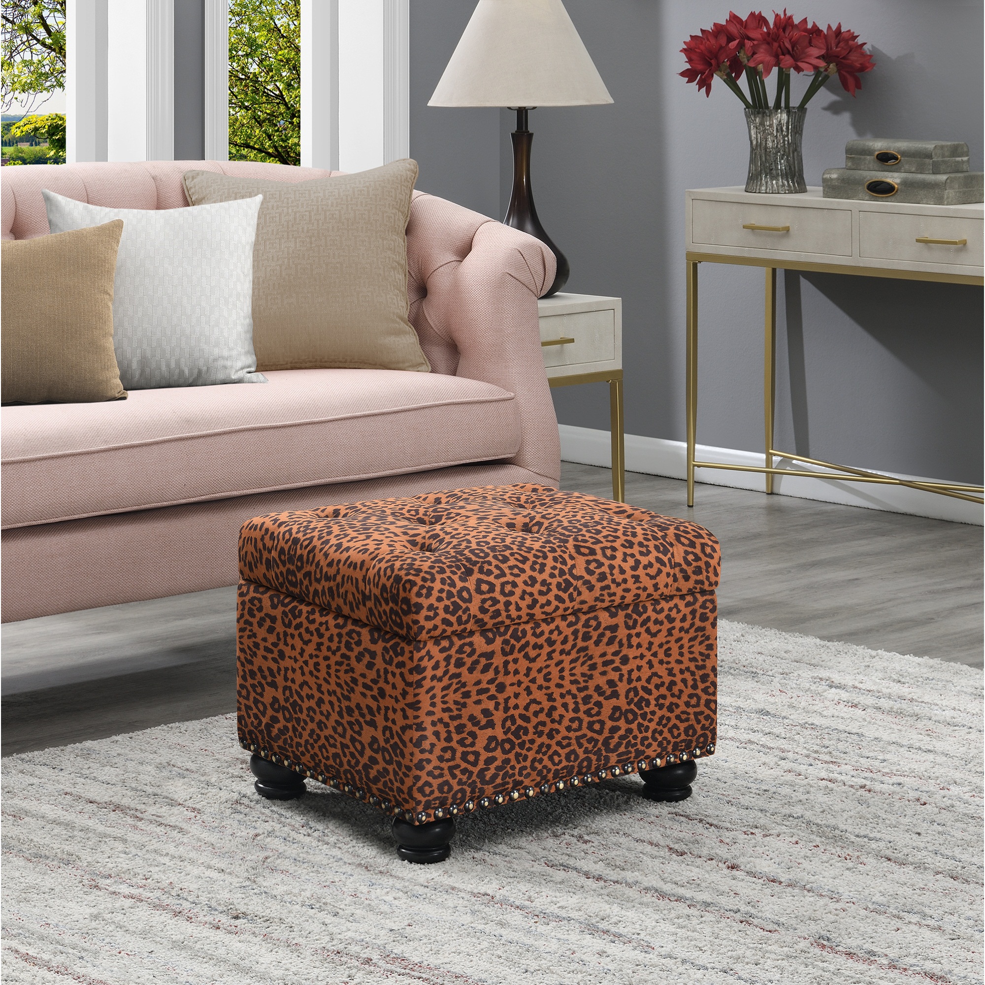 Convenience Concepts Designs4Comfort 5th Avenue Storage Ottoman. Forest Leopard Print Fabric