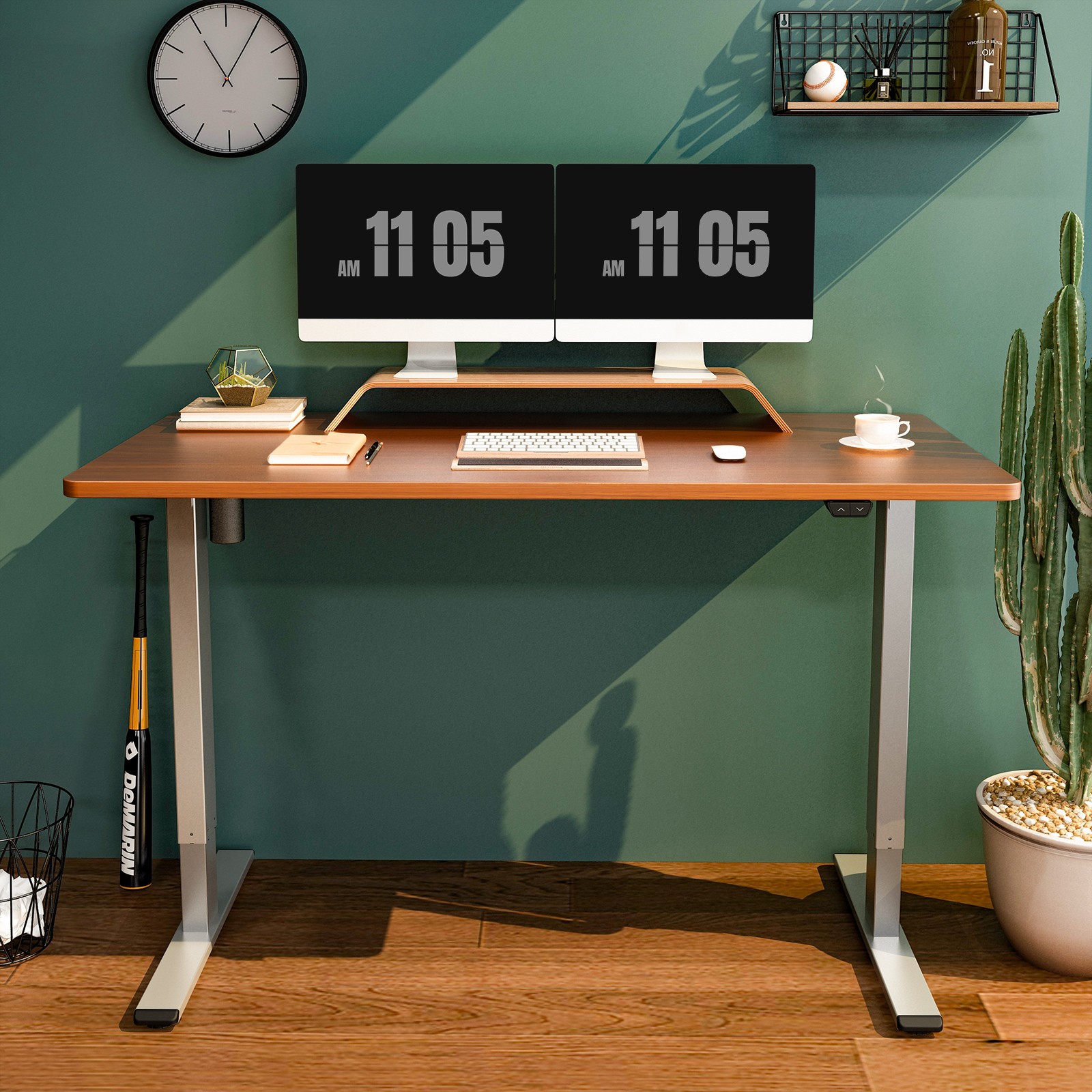 FLEXISPOT 55″x28″ Ergonomic Home Office Electric Height Adjustable Standing Desk Gray and Mahogany
