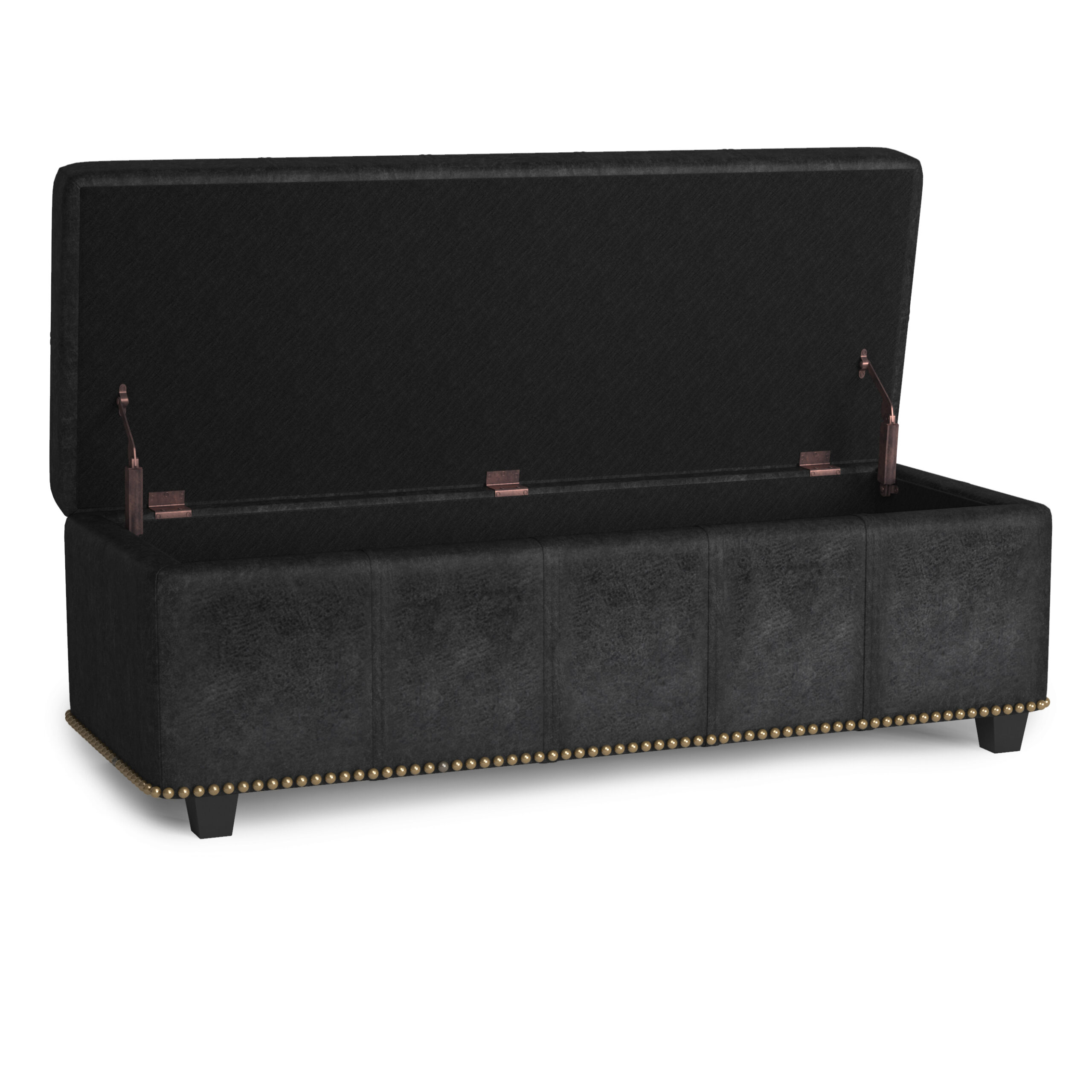 Simpli Home Kingsley Large Storage Ottoman-Finish:Distressed Black.Style:Faux Air Leather