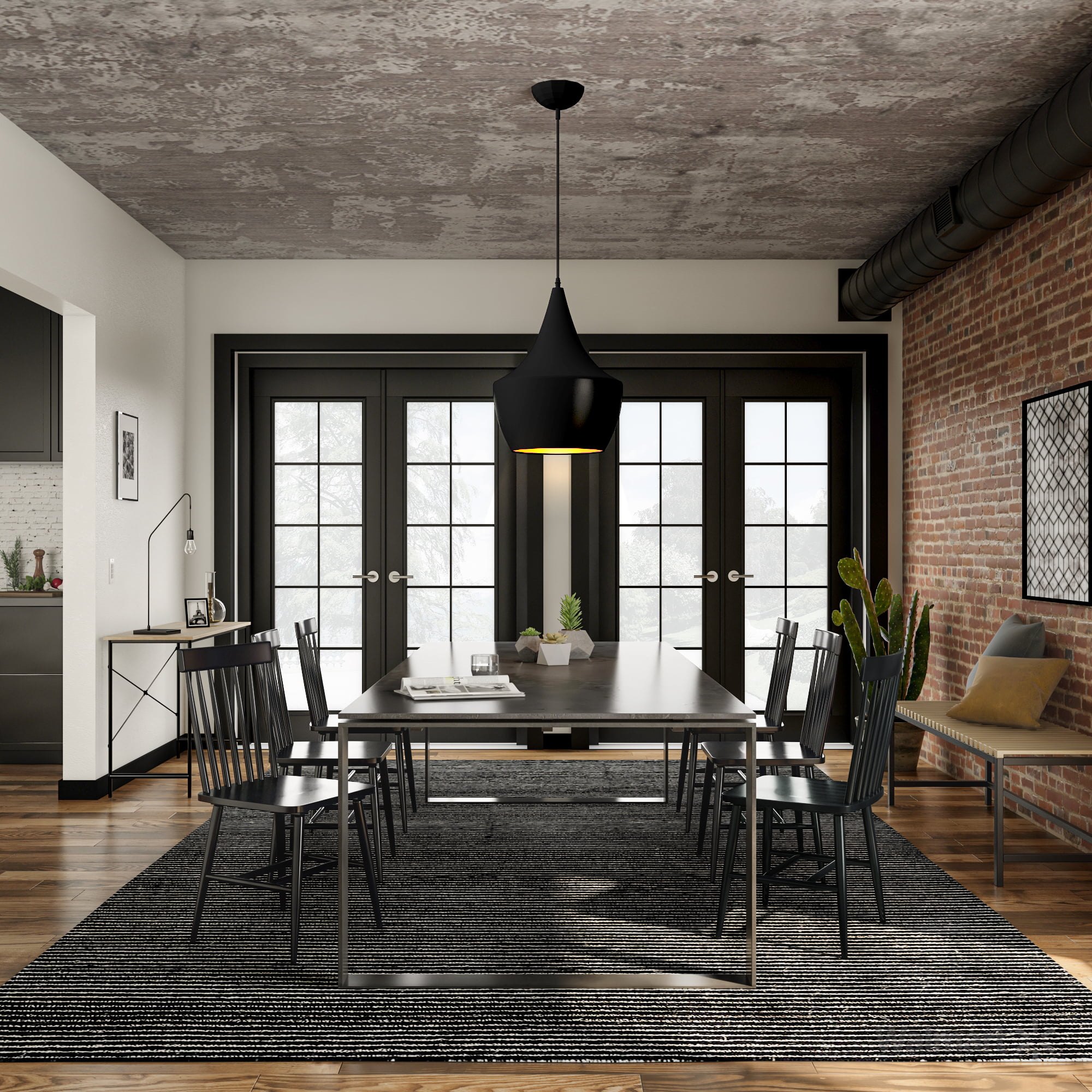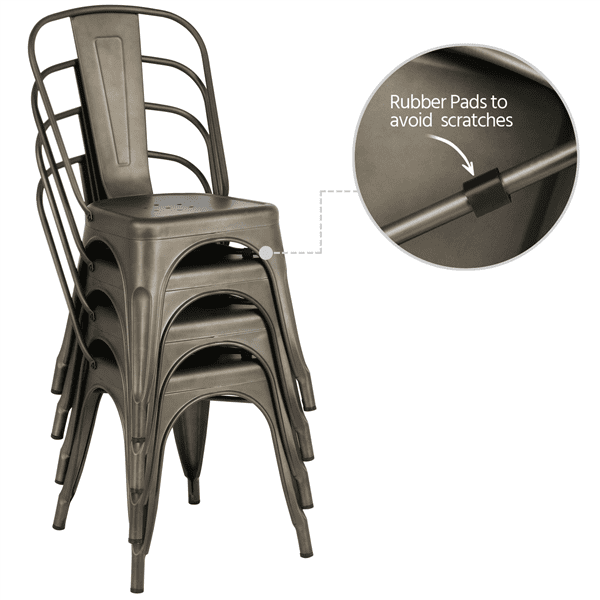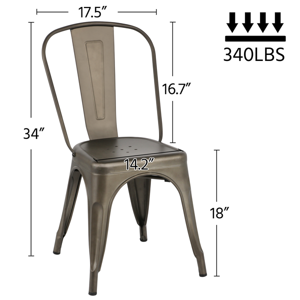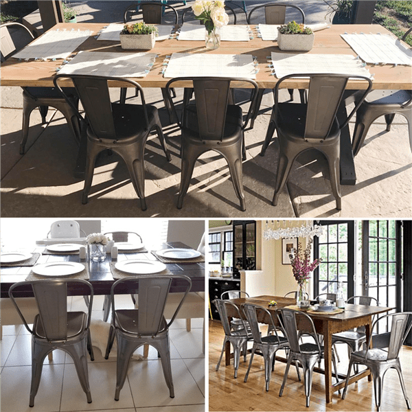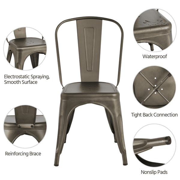 SMILE MART Industrial Modern Metal Dining Chairs. Set of 4. Gunmetal Gray