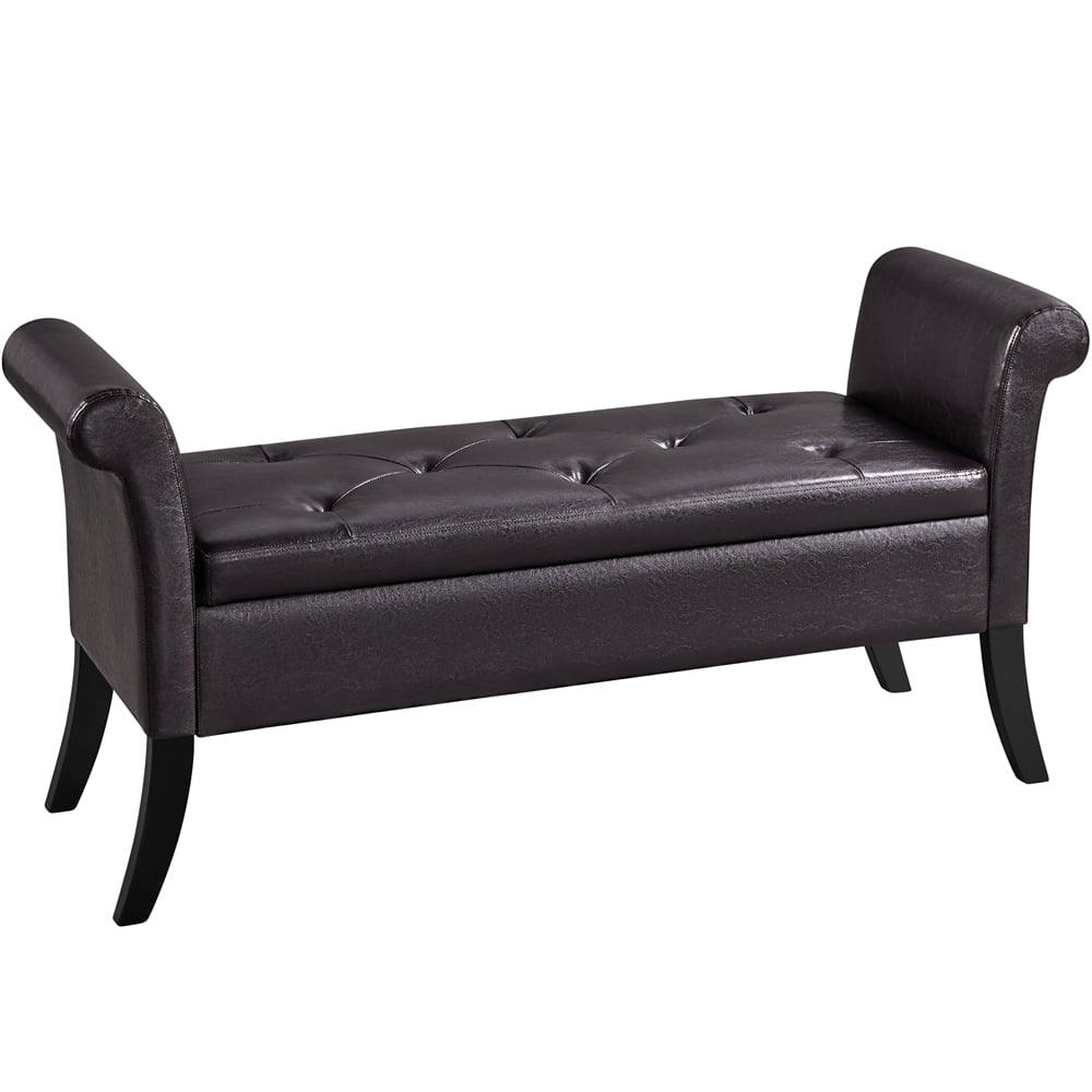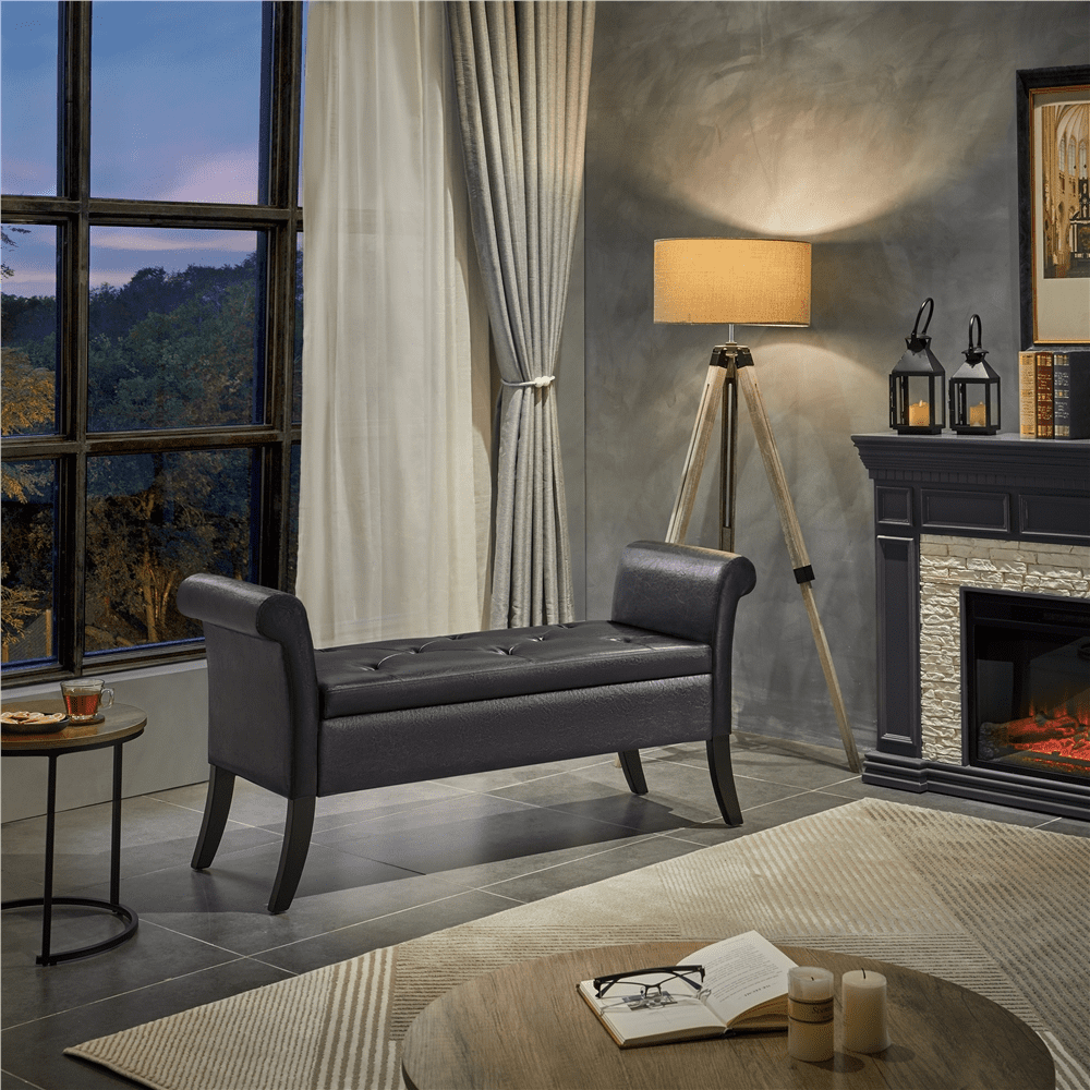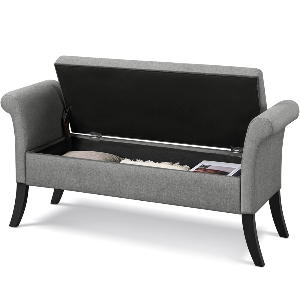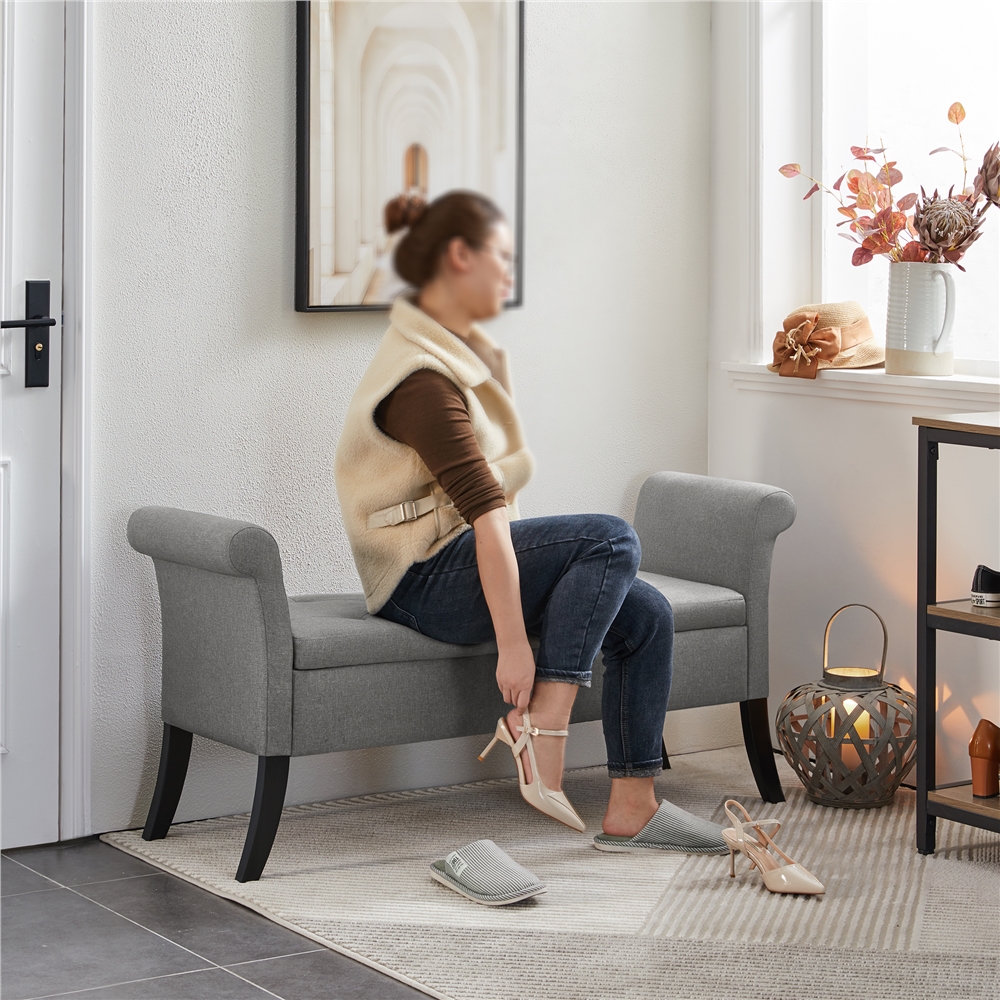 SmileMart Button Tufted Ottoman Storage Bench with Rolled Arms. Light Gray Fabric
