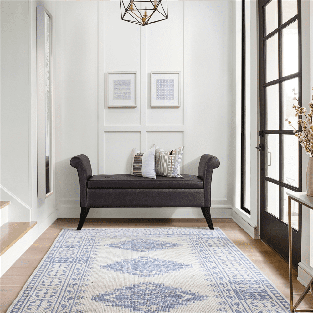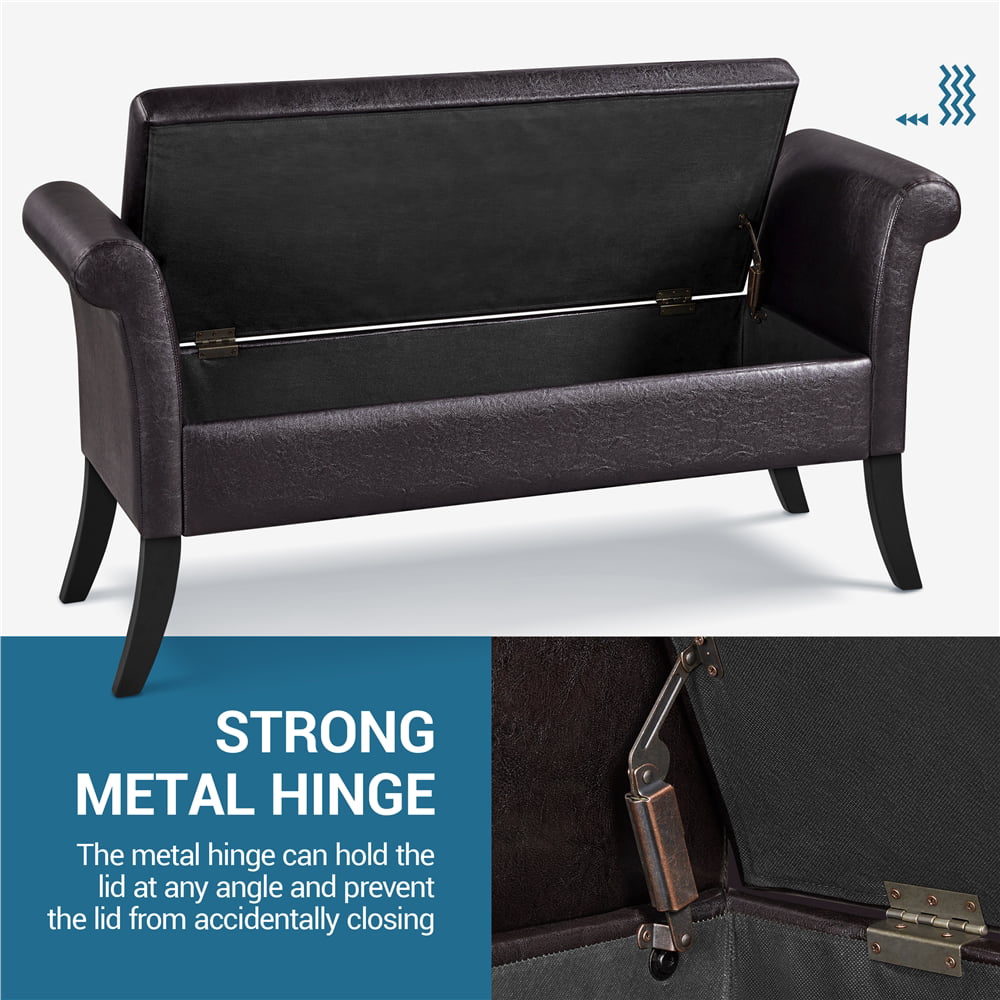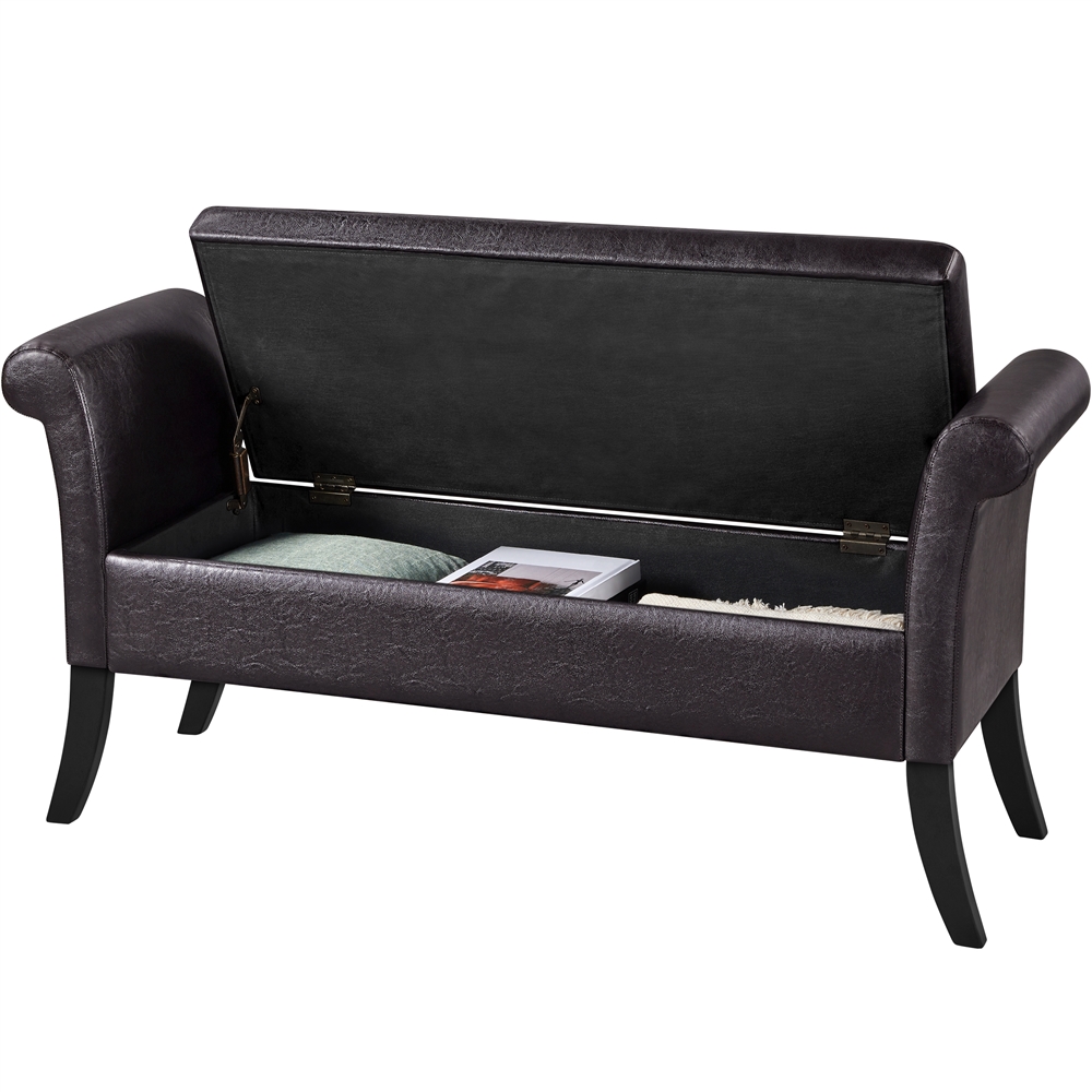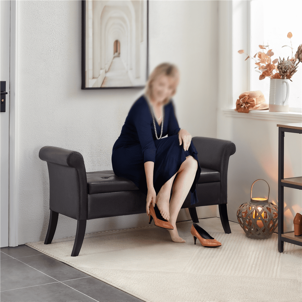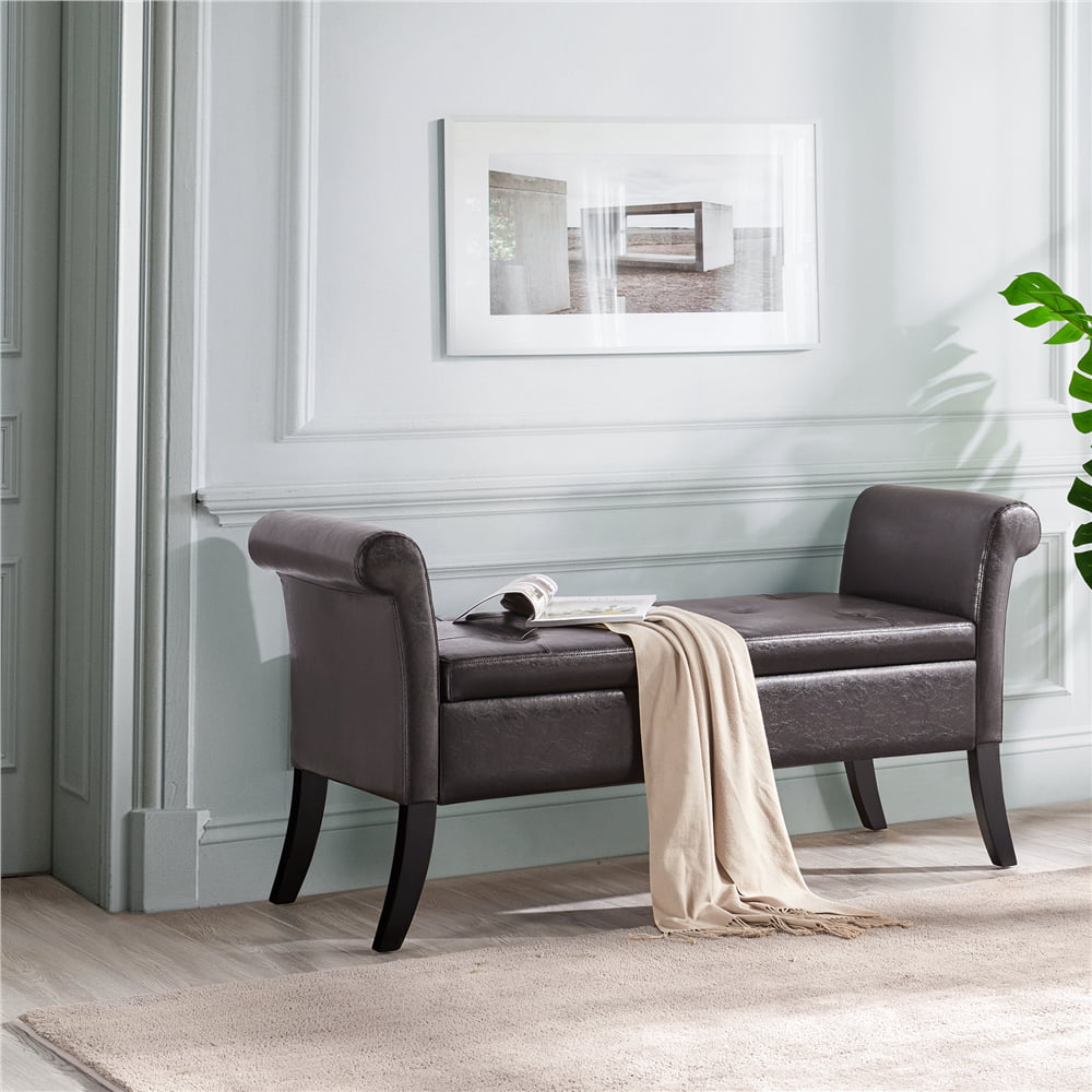SmileMart Button Tufted Ottoman Storage Bench with Rolled Arms. Light Gray Fabric