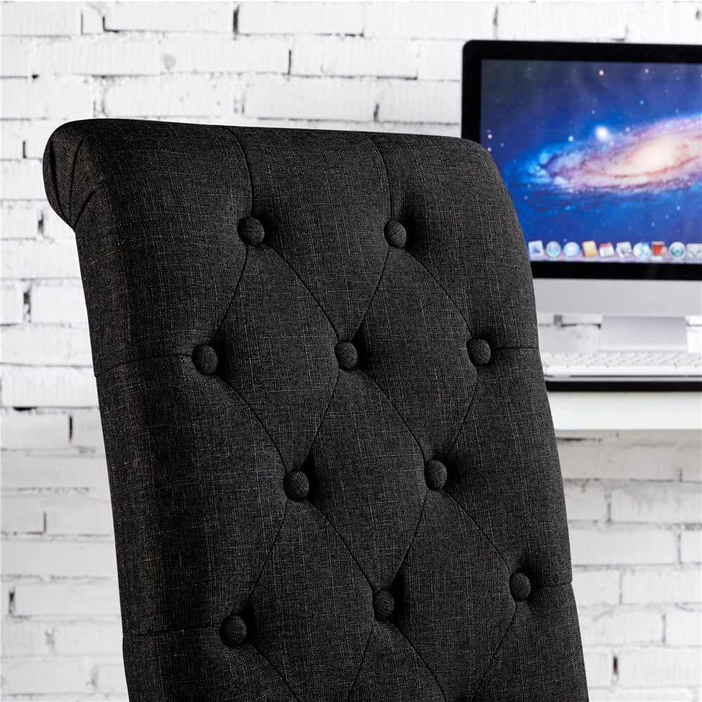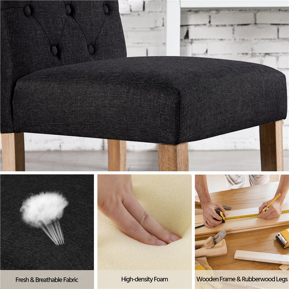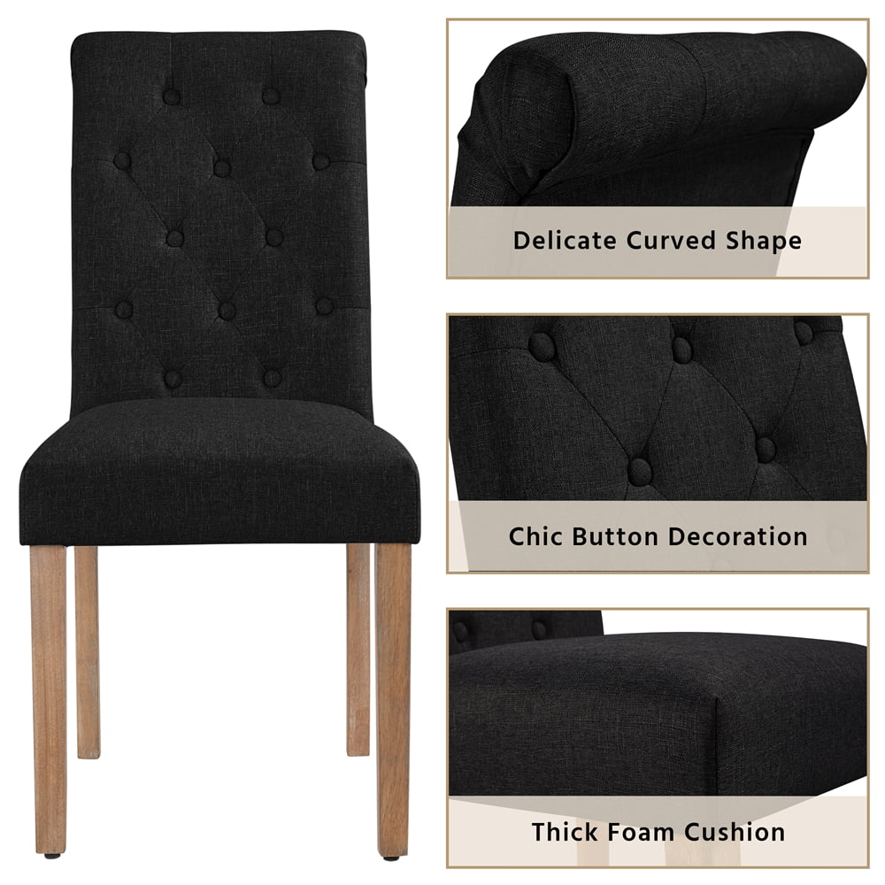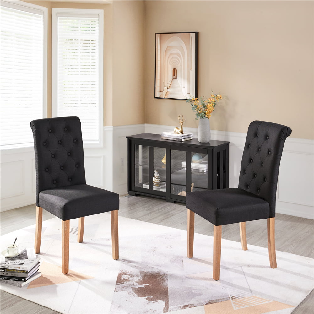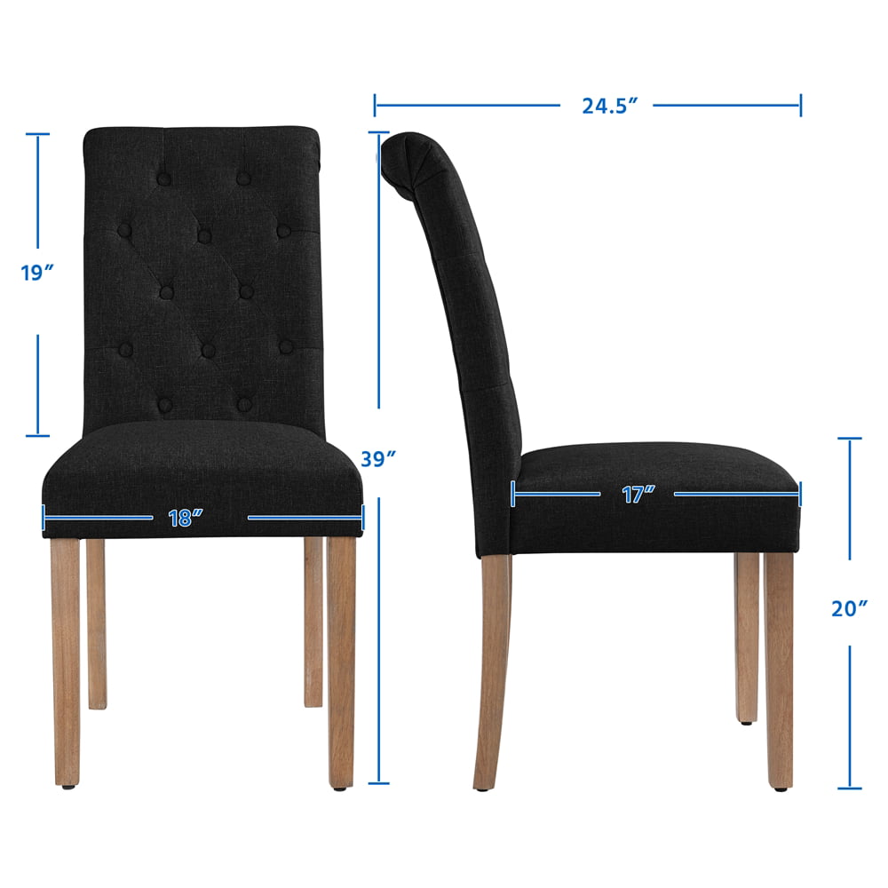 Alden Design Tufted Upholstered High Back Parson Dining Chair. Set of 2. Black