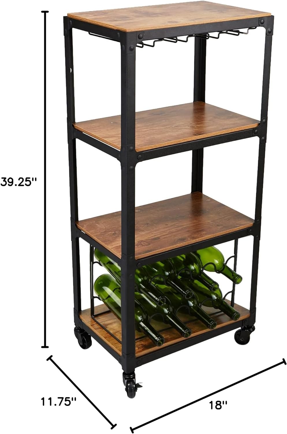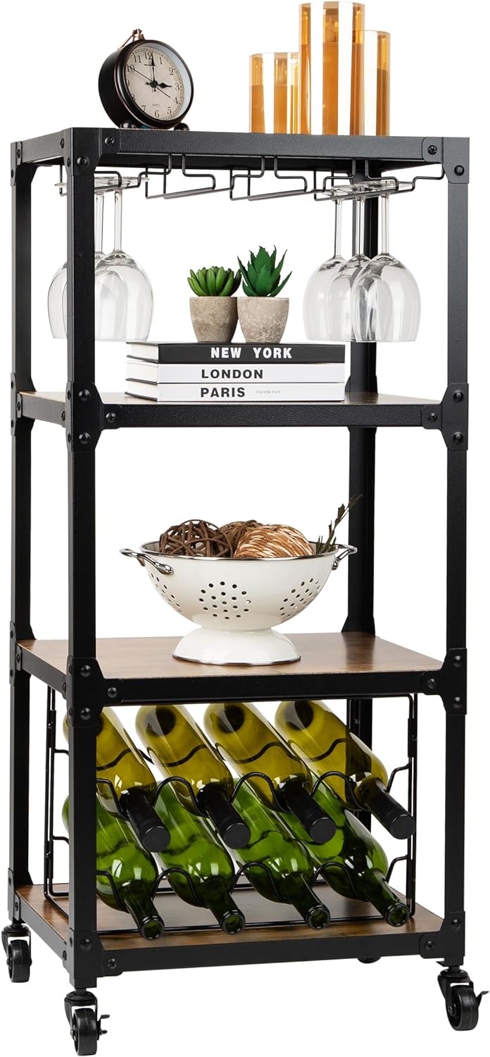 Mind Reader Mobile Kitchen Cart with Wine Rack and Stemware Storage. Black