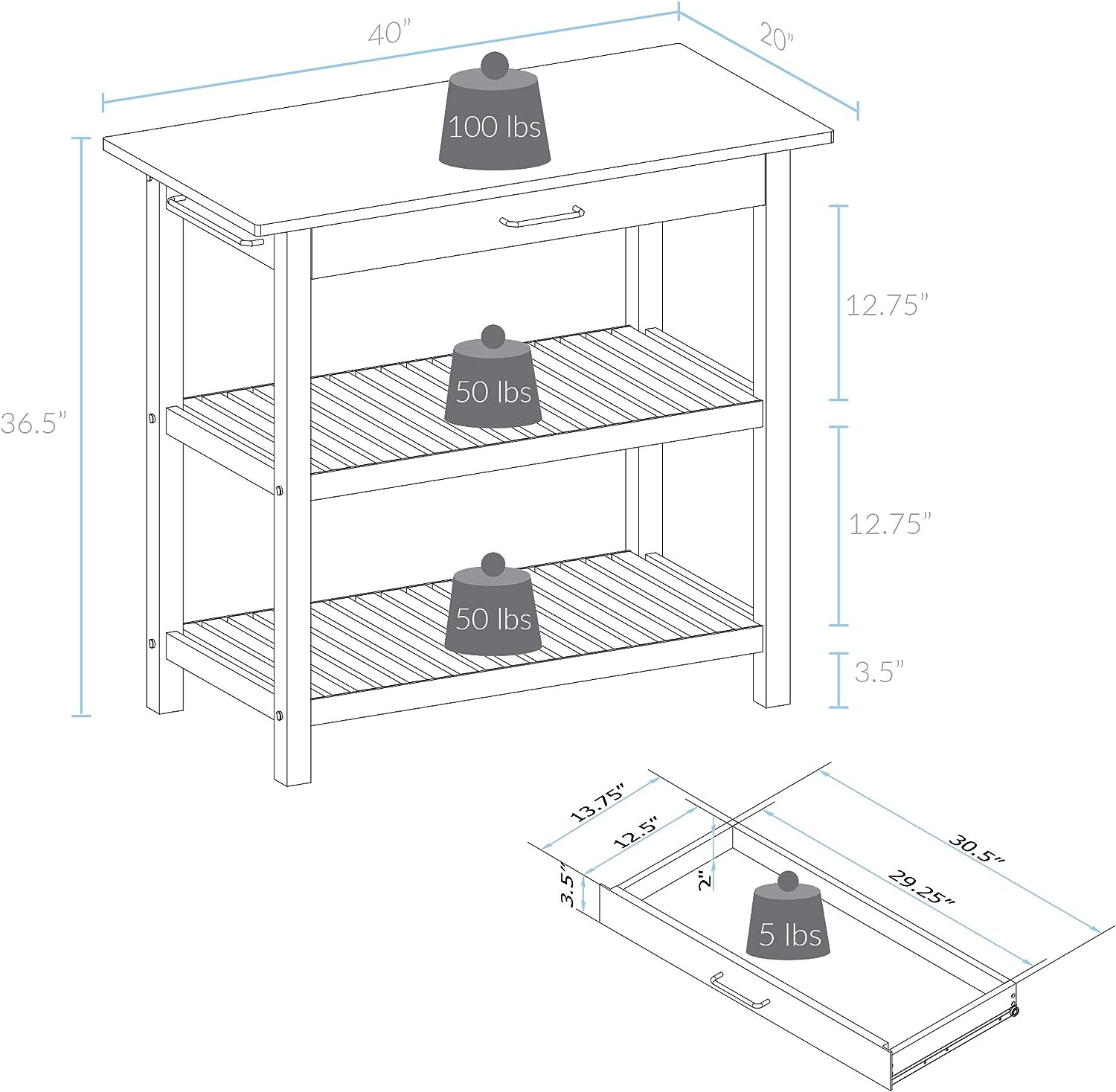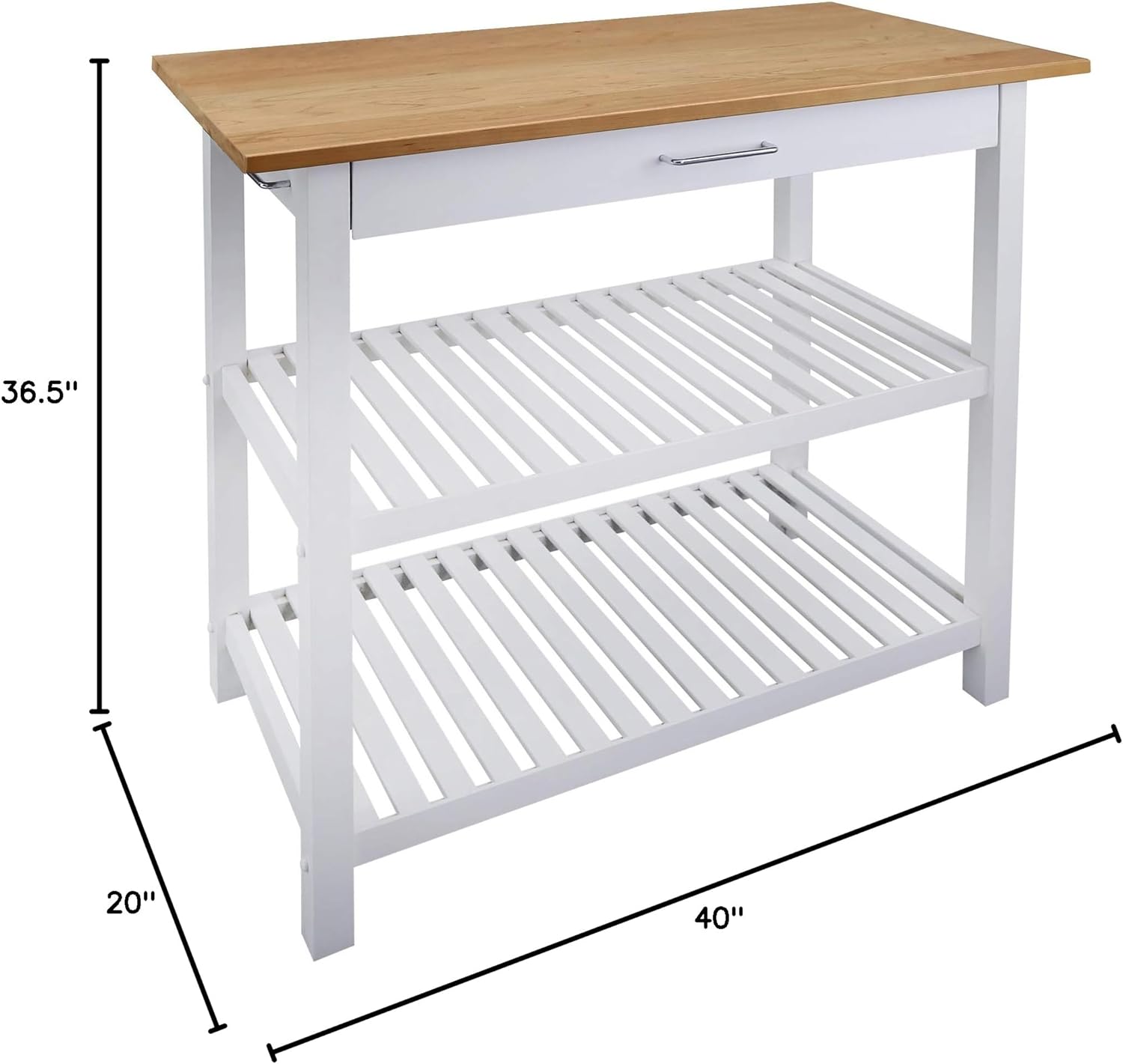 Casual Home Kitchen Island with Solid American Cherry Top. White & Cherry Natural