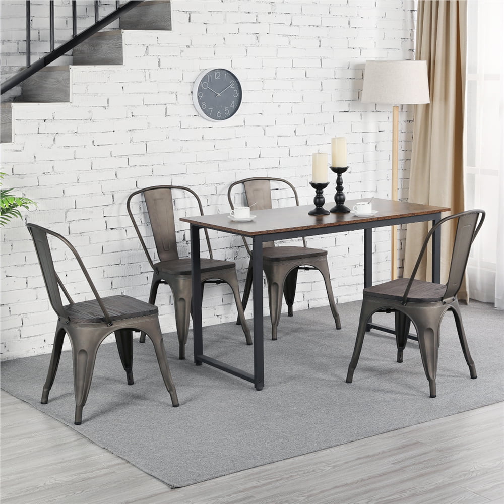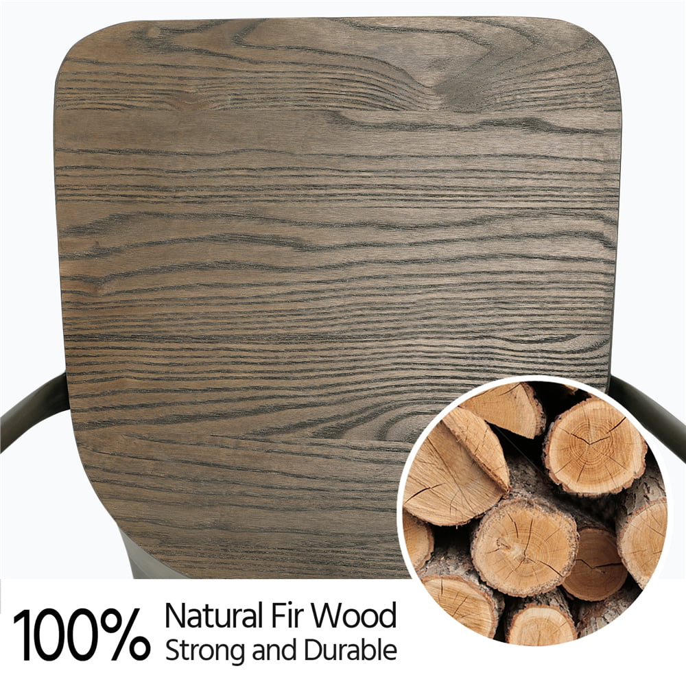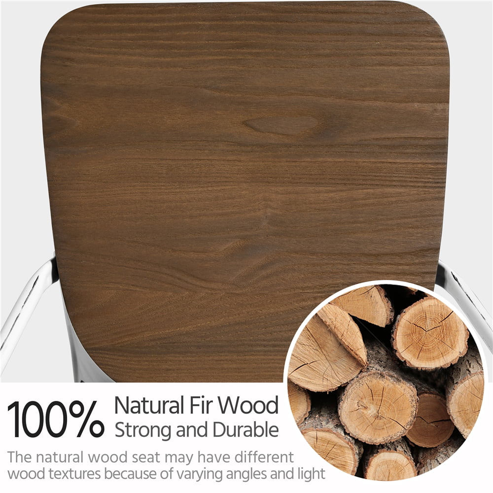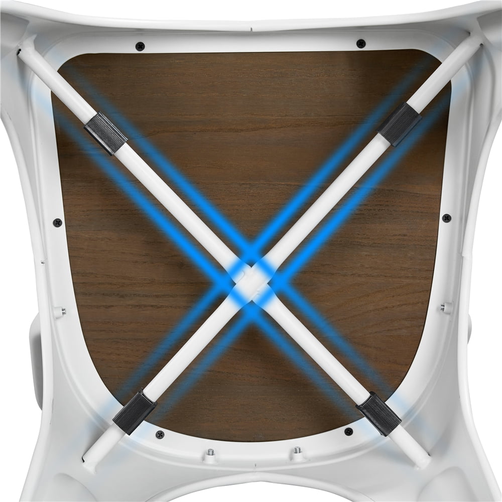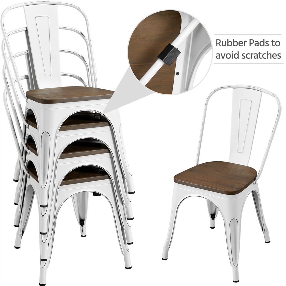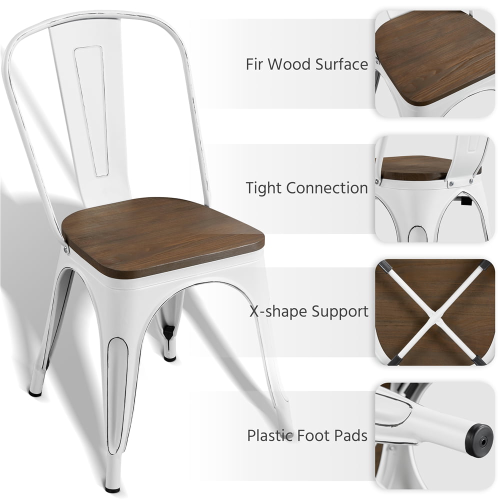Alden Design Metal Stackable Dining Chairs with Wooden Seat. Set of 4. White