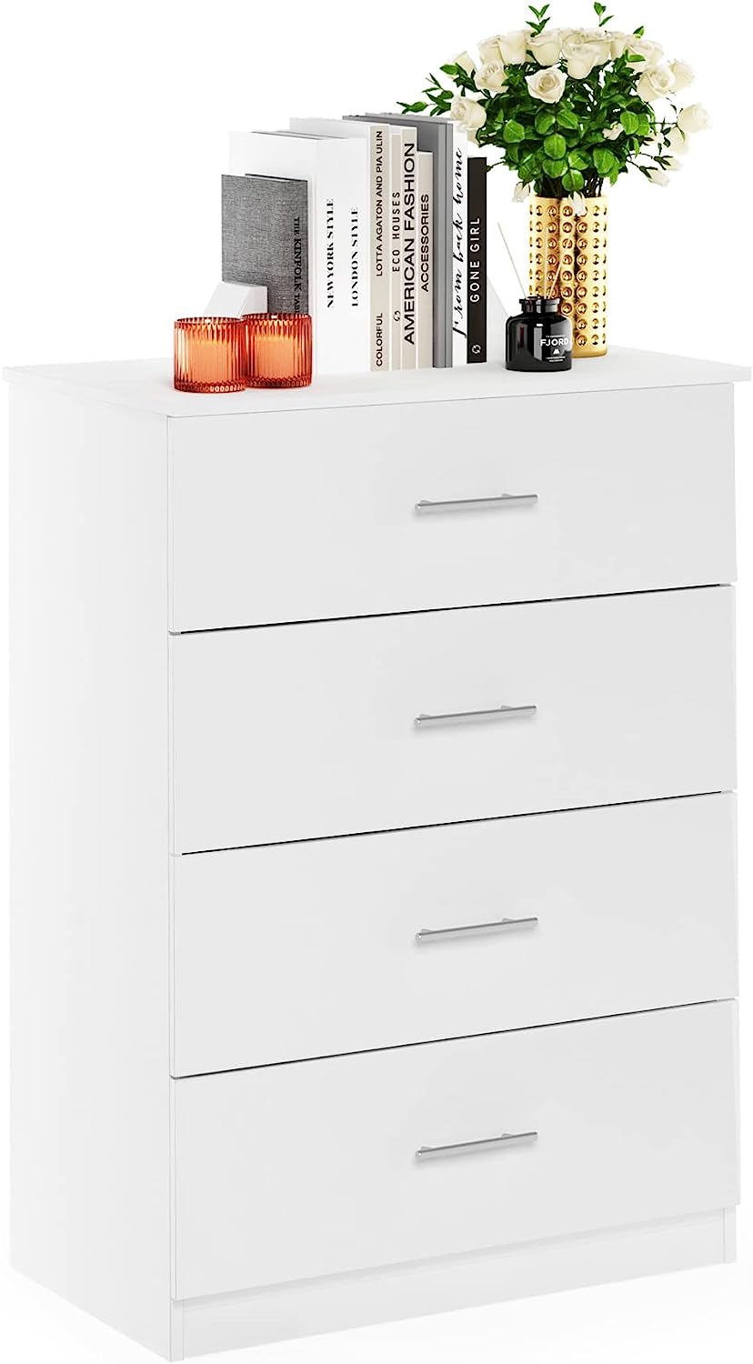 Furinno Tidur Simple Design Dresser. 4-Tier Handle. Solid White