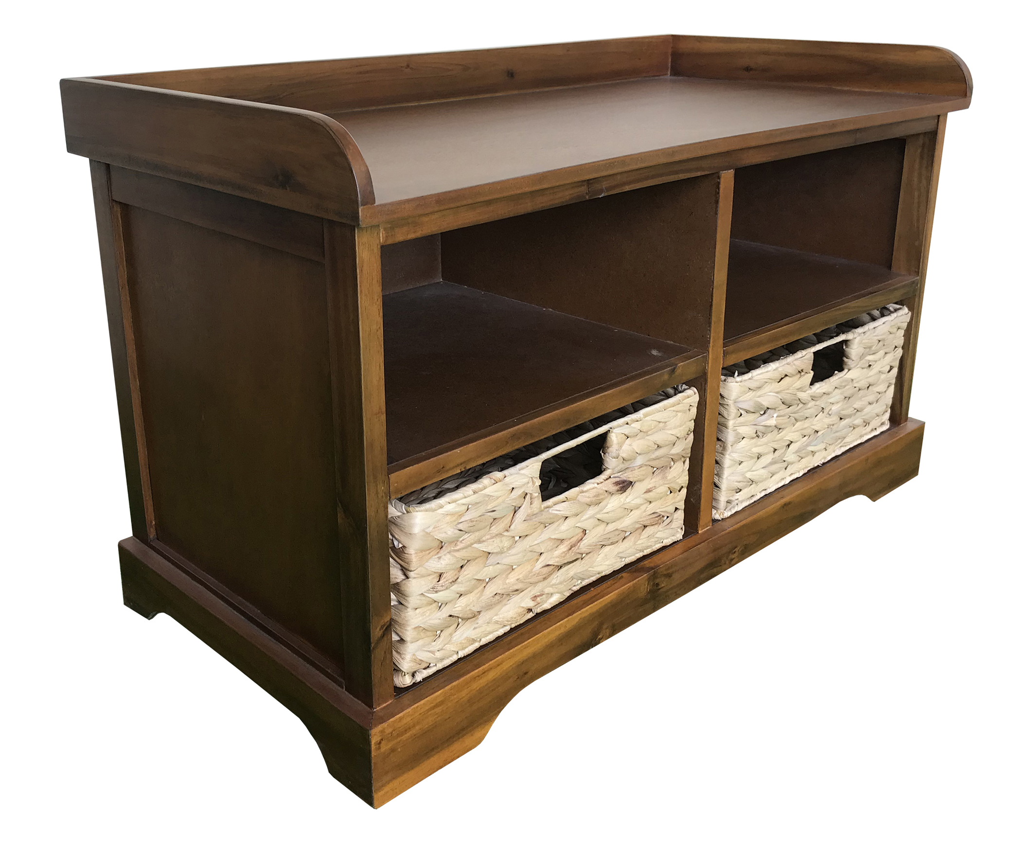 Decor Therapy Hayden Storage Bench with 2 Baskets. Honey Pine. 33.5″