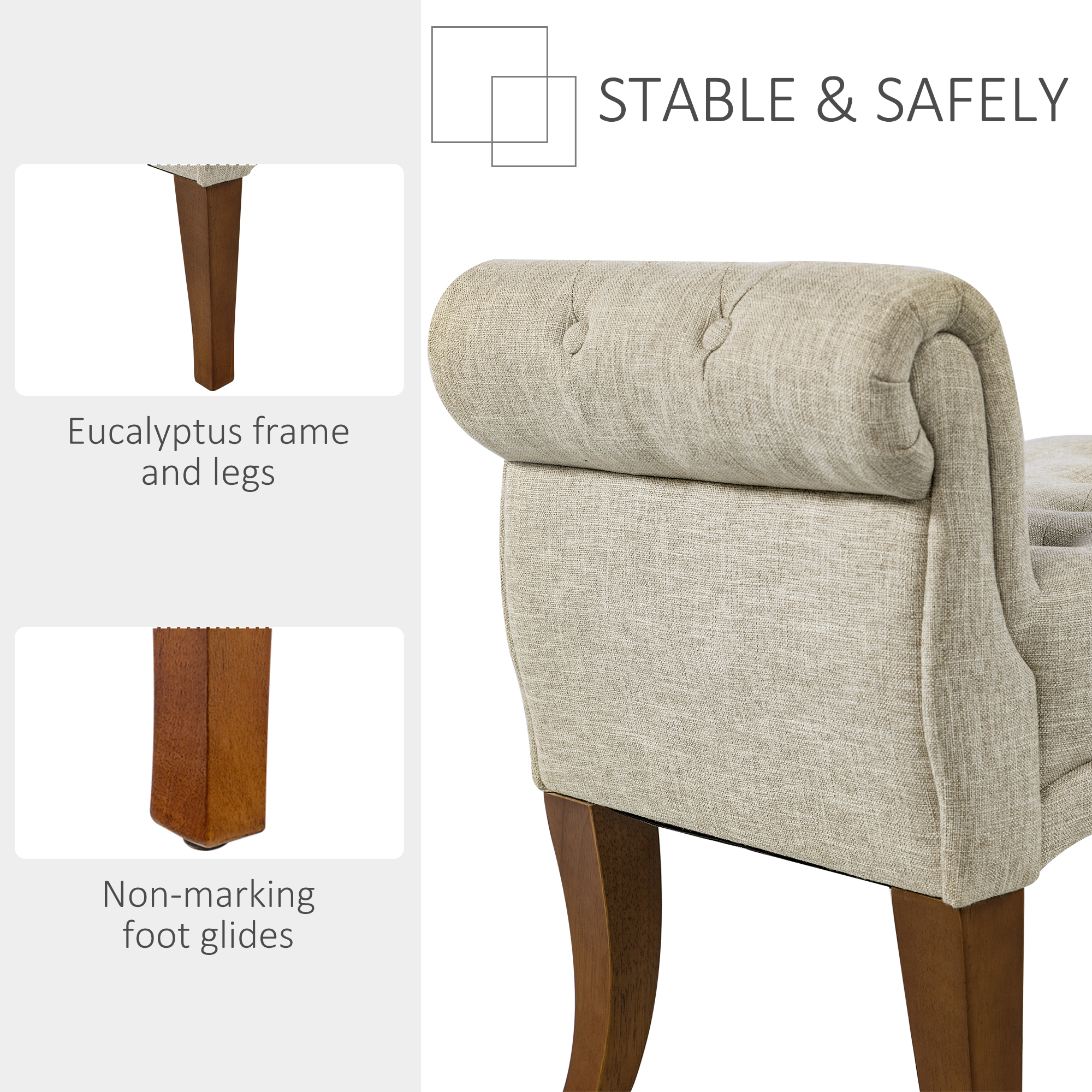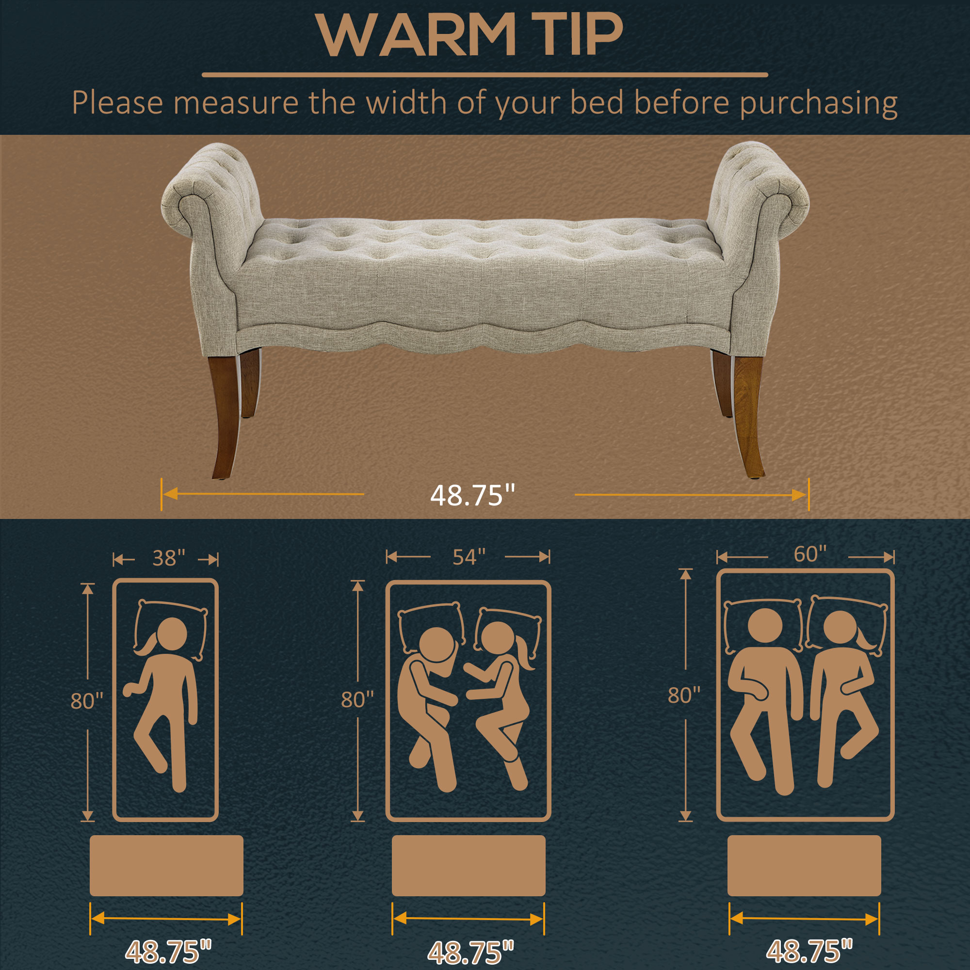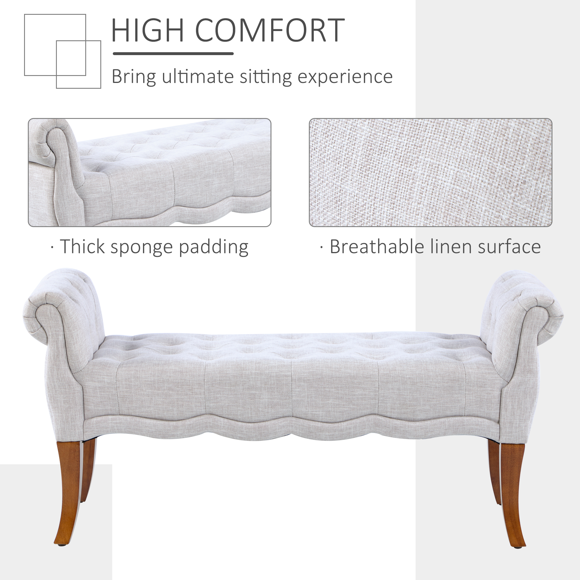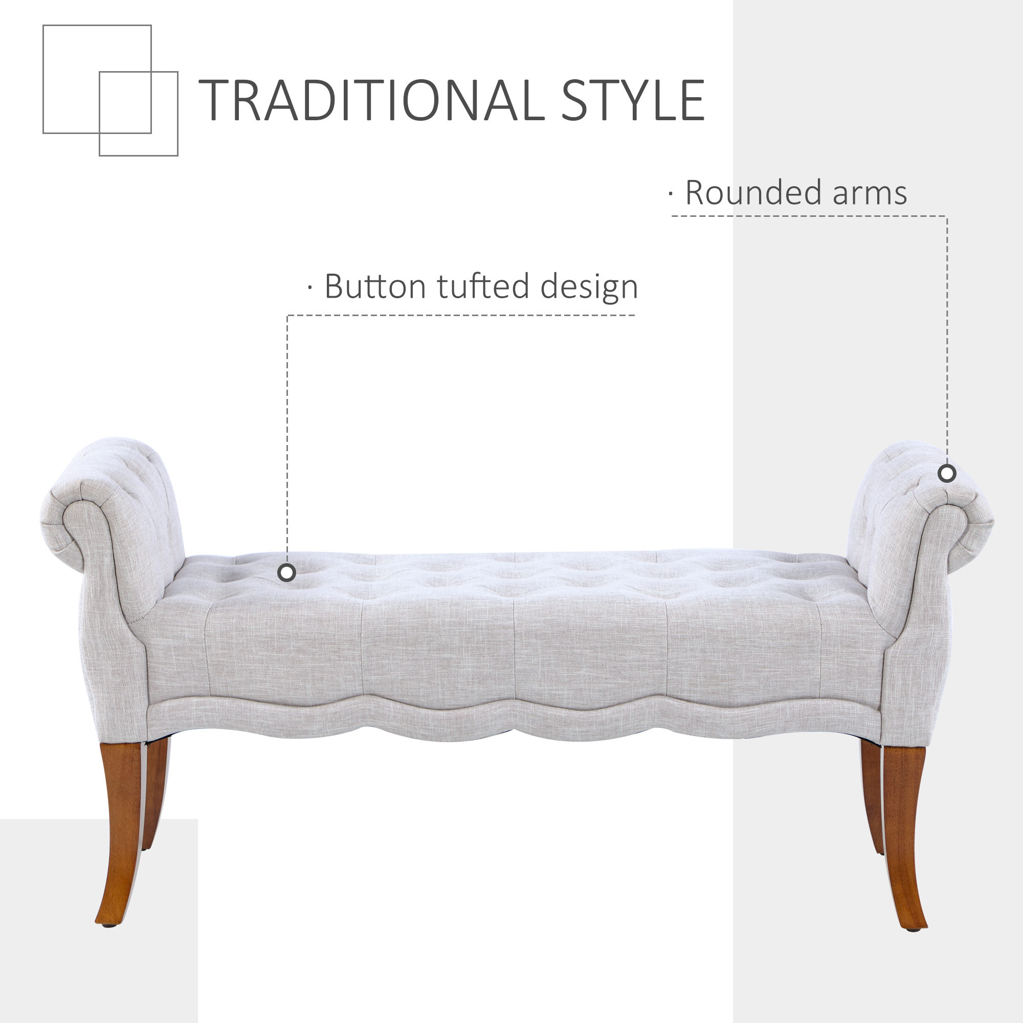 HOMCOM Traditional Style End of Bed Bench. Upholstered Bedroom Entryway Bench with Button Tufted and Rounded Arm. Light Gray