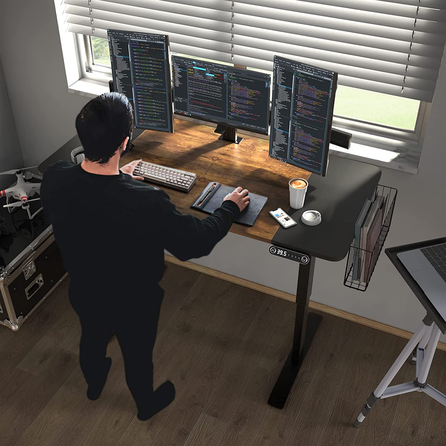 DIYAREA Height Adjustable Electric Standing Desk with Memory Prese. 55 x 24 Inches Stand Up Desk by DIYAREA . Sit Stand Desk with Espresso and Black Top and Black Frame