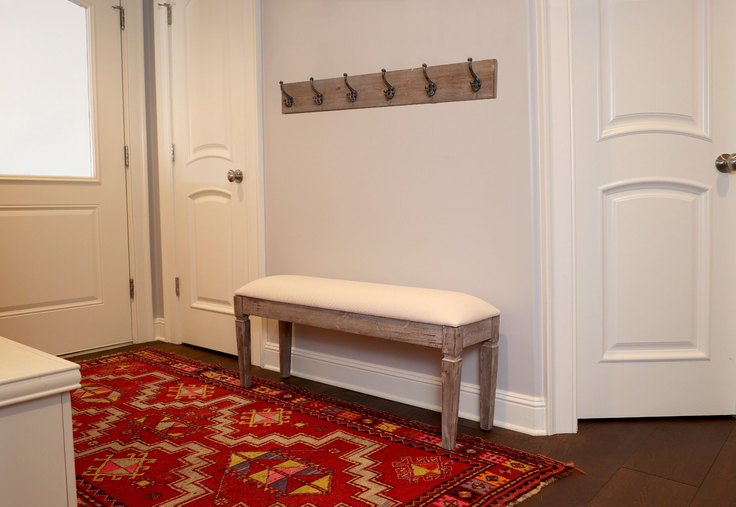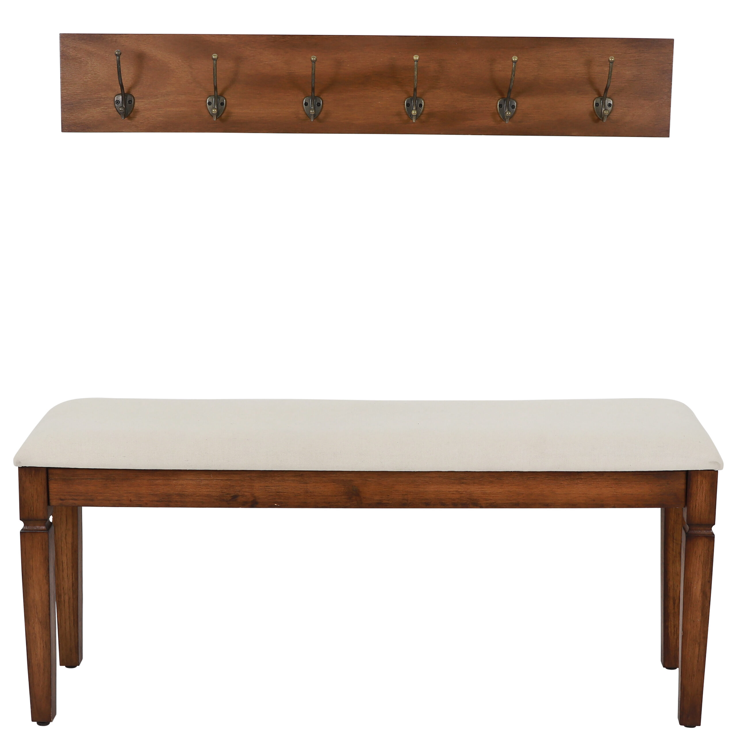 Decor Therapy Waverly Wood Bench with Coat Rack Set. 6 Hooks. 42″ Wide in Honey Nut finish
