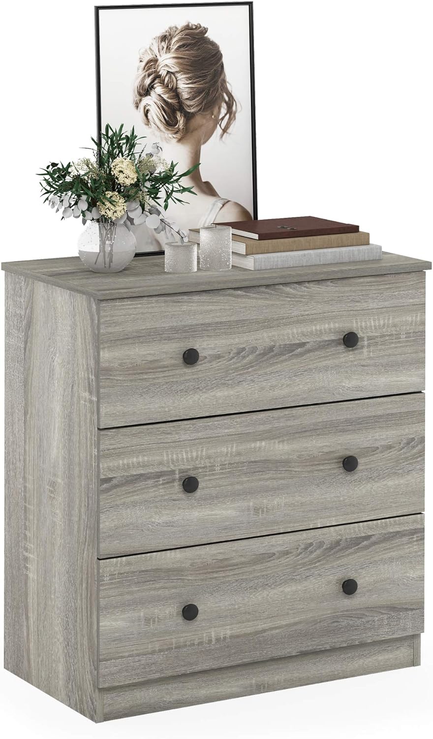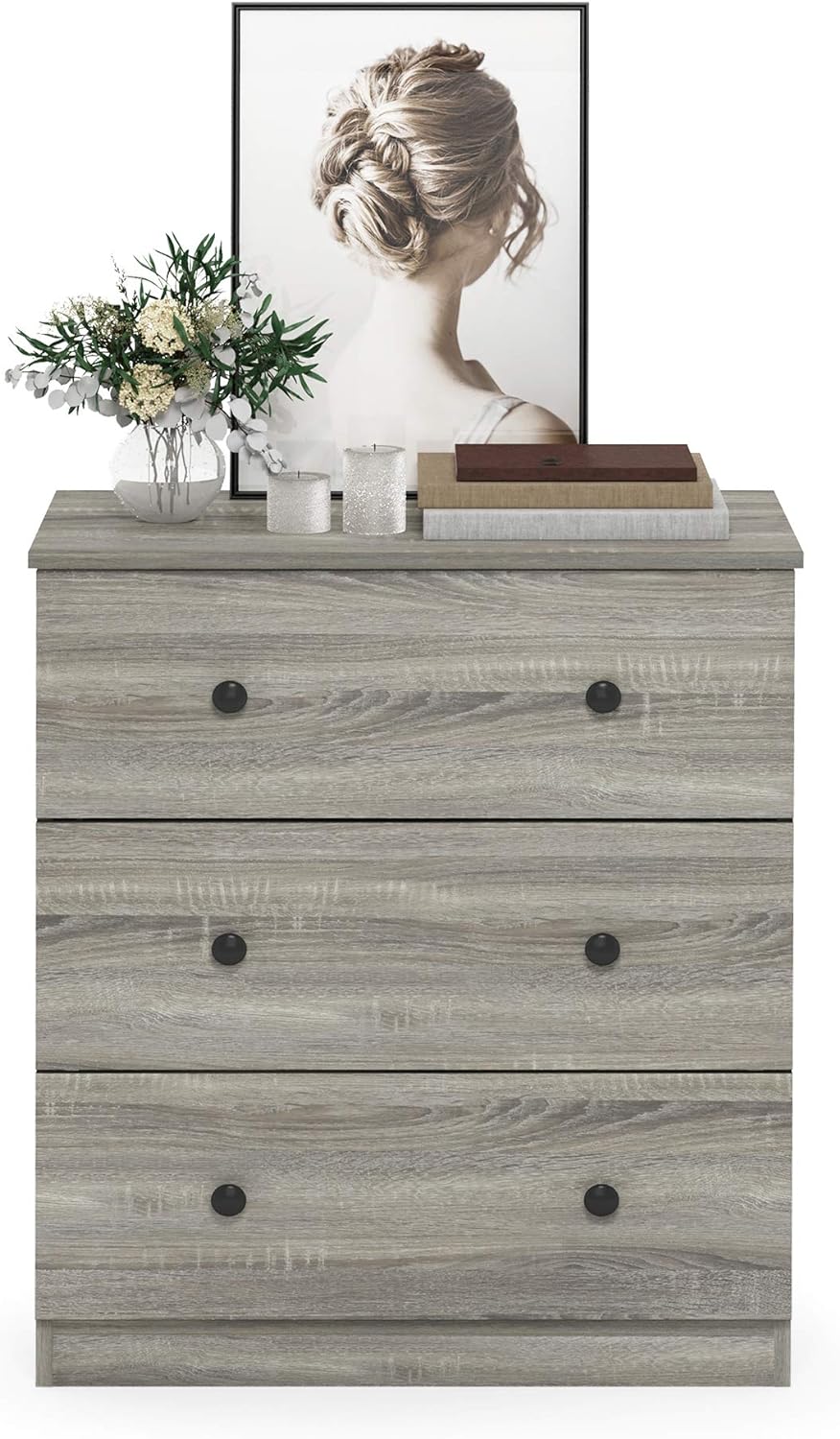 Furinno Tidur Simple Design Dresser. 3-Drawer Knob. French Oak Grey