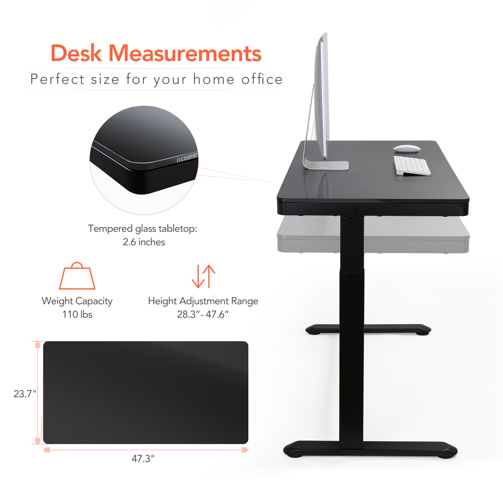 FlexiSpot 48″ W Ergonomic Home Office Height Adjustable Standing Desk Tempered Glass Top. Black