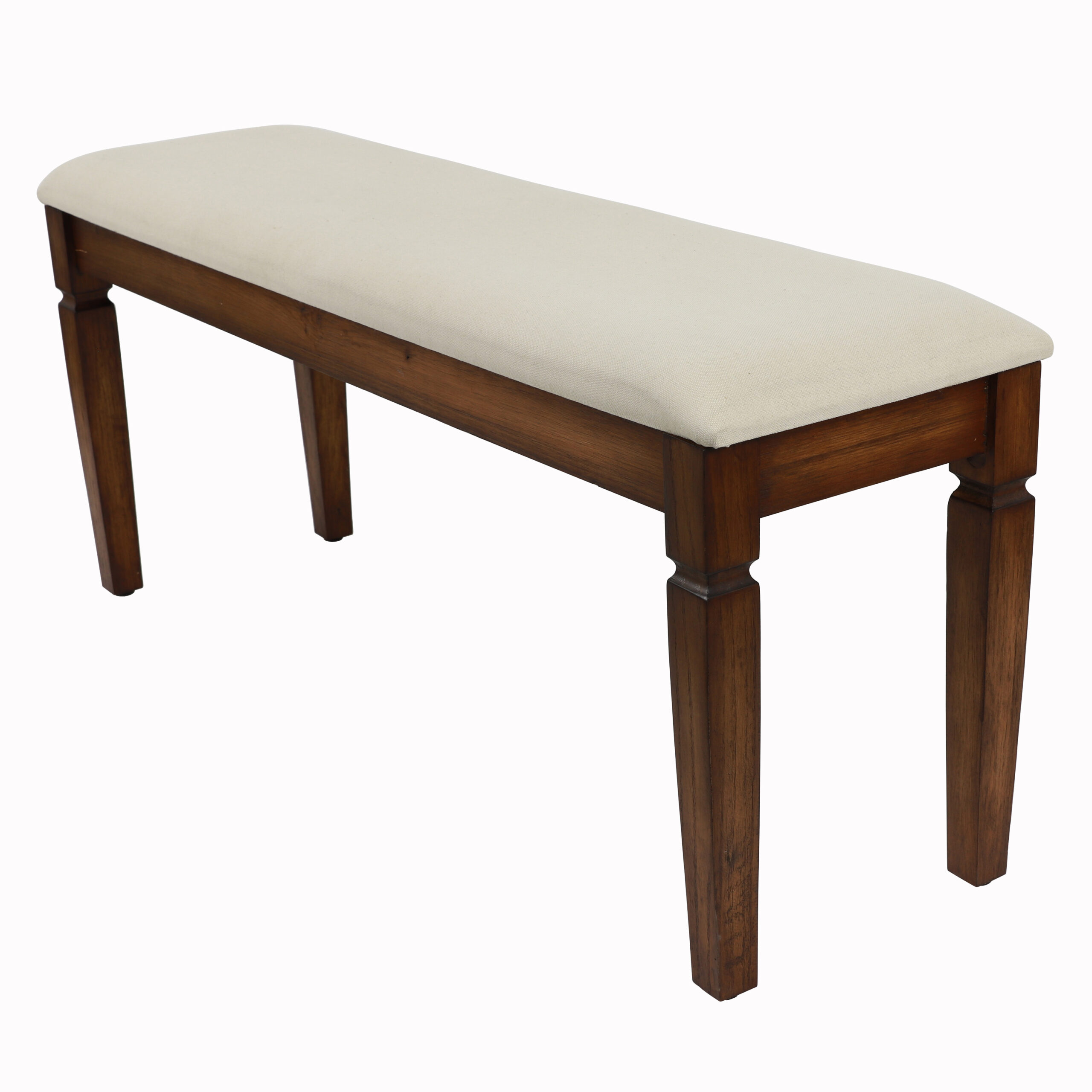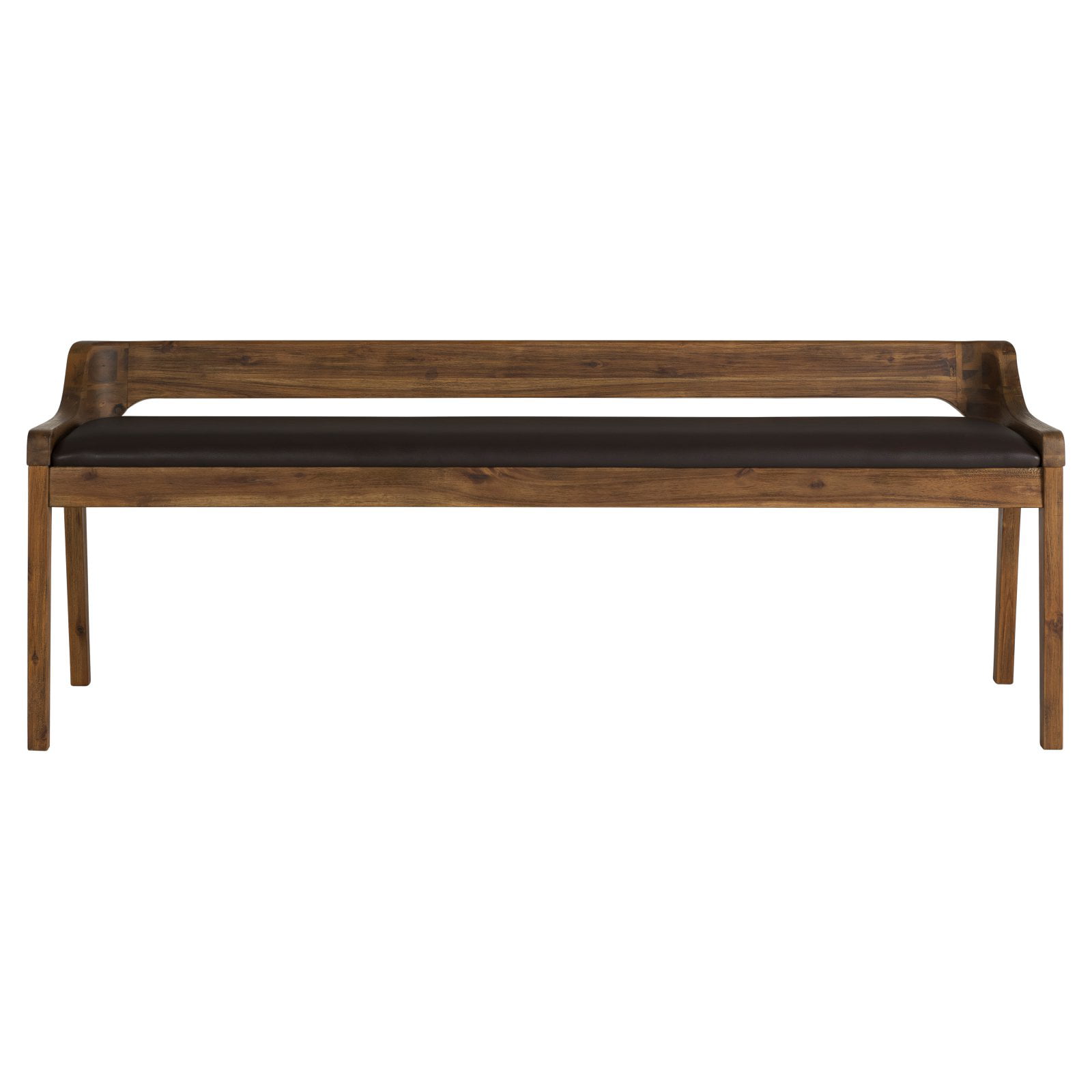 Boraam Rasmus Low Back Faux Leather and Wood Dining Bench. Chestnut Wire-Brush Finish