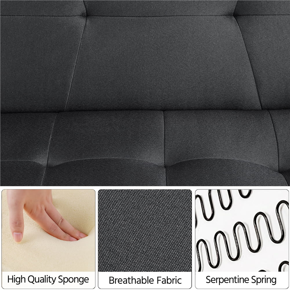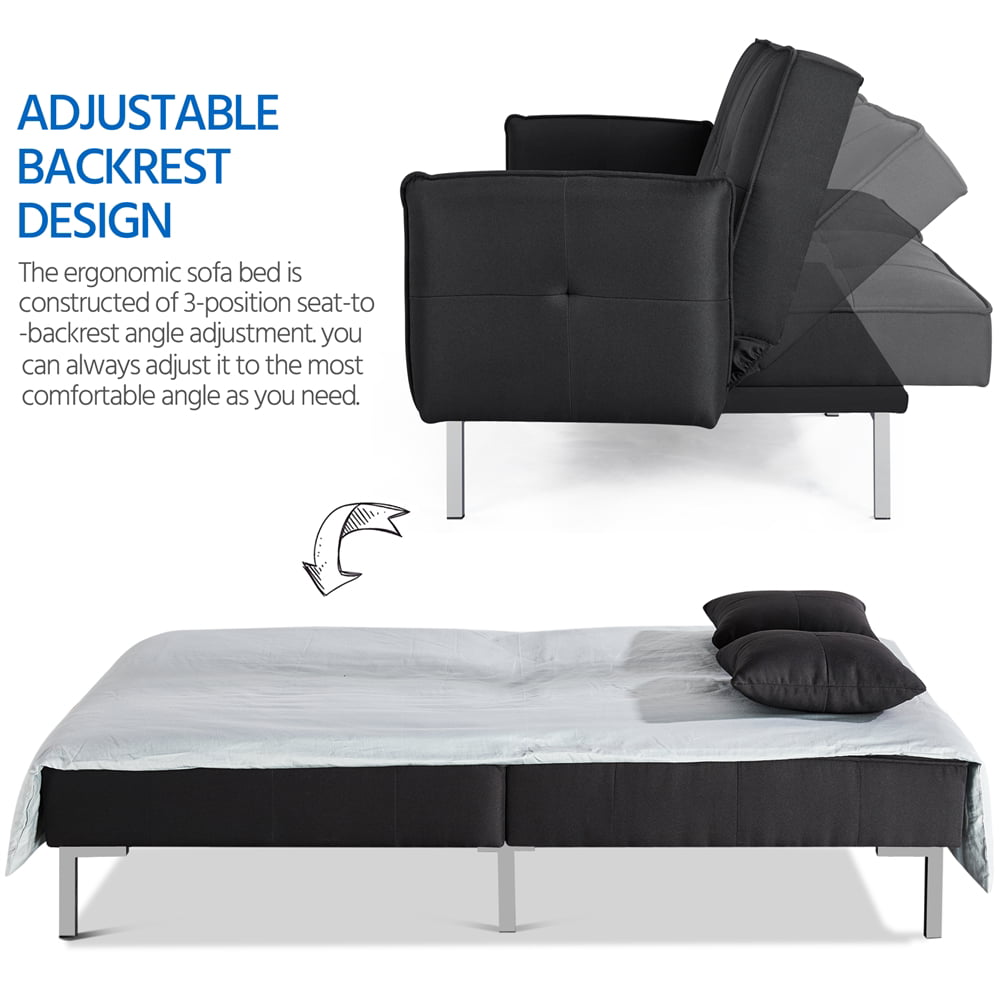 Alden Design Fabric Covered Futon Sofa Bed with Adjustable Backrest. Black