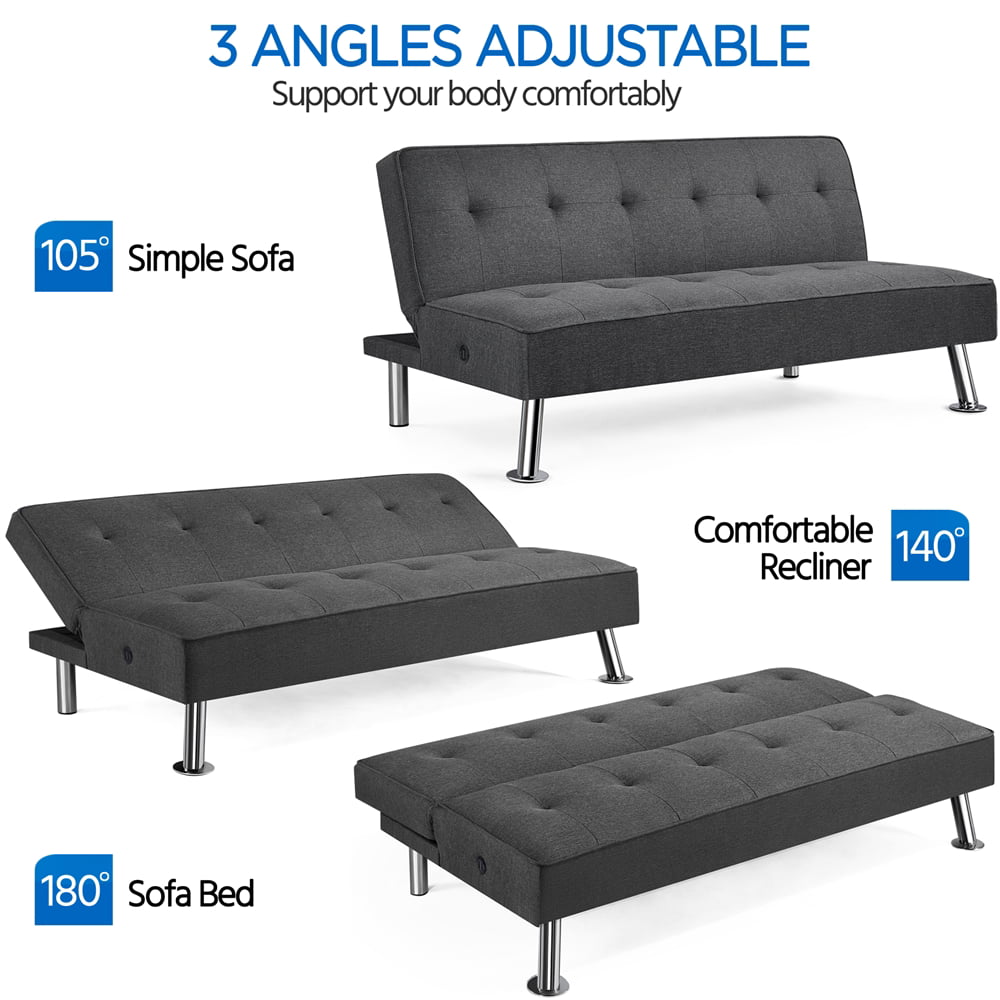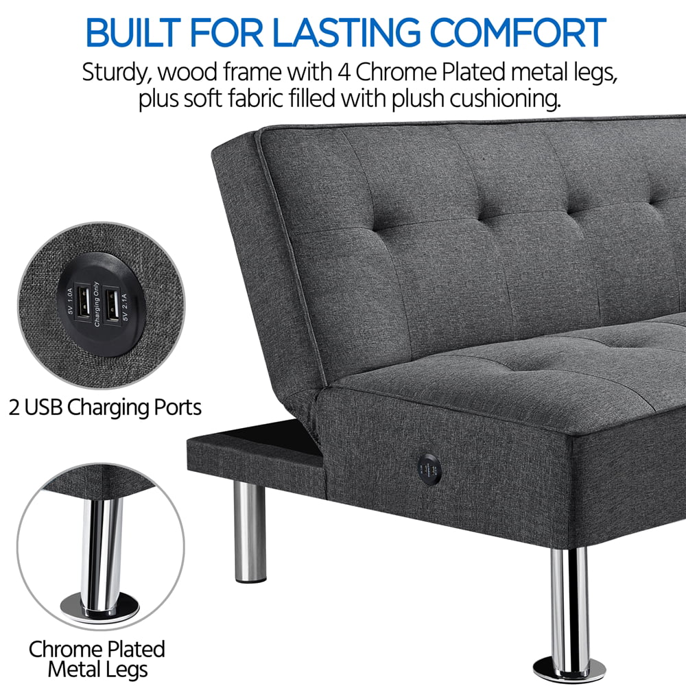 Alden Design Modern Fabric Convertible Futon with USB. Charcoal