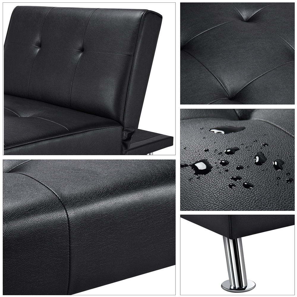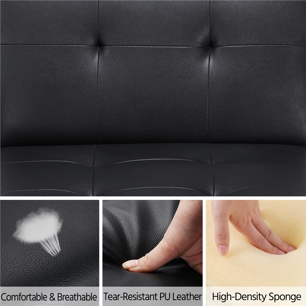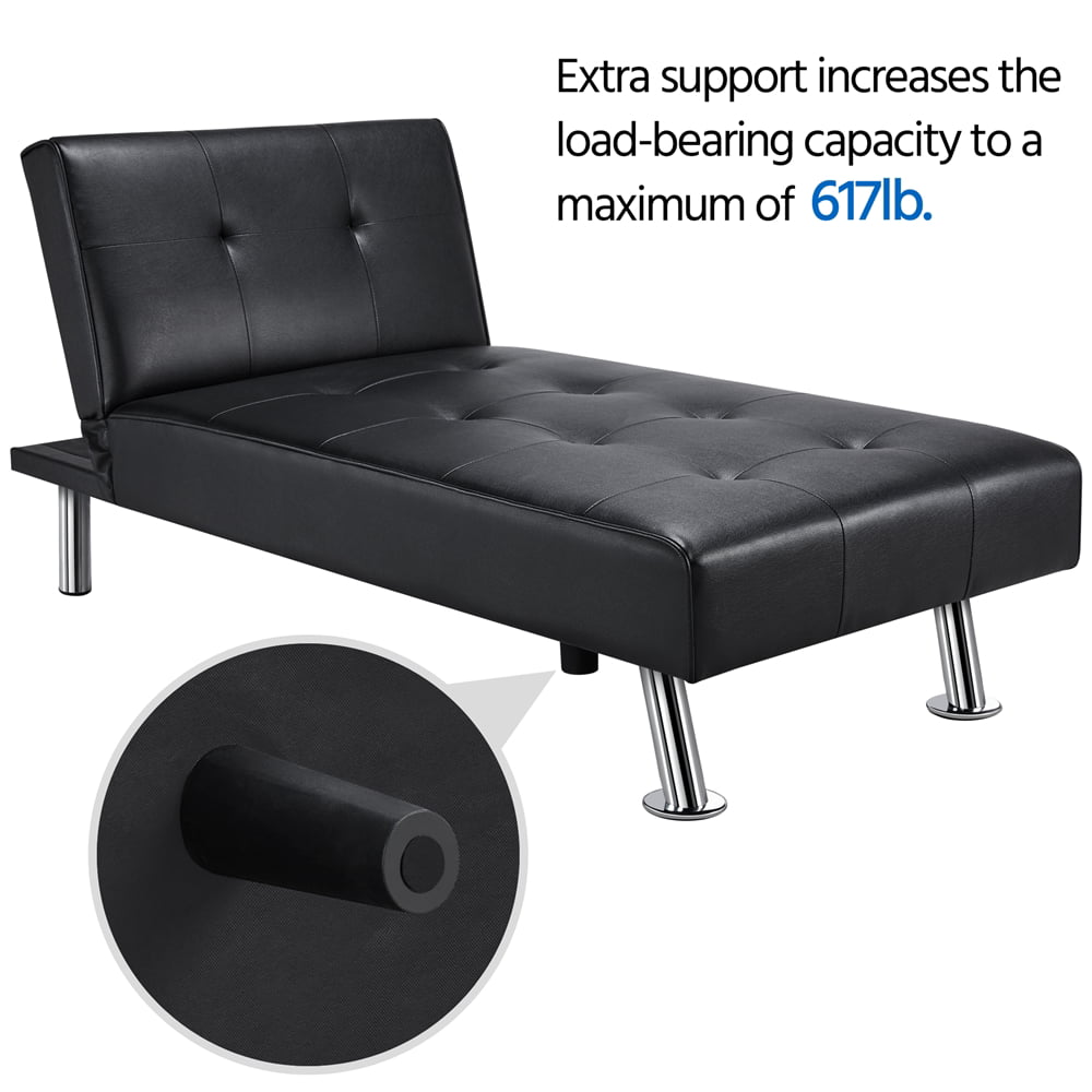 Alden Design Convertible Faux Leather Futon Chaise Lounge. Black