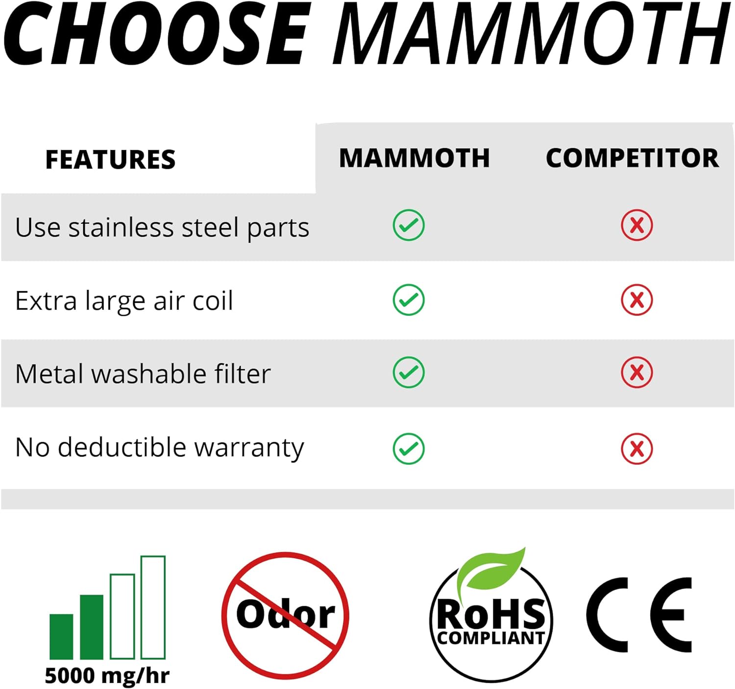 Mammoth 10.000mg Ozone Generator. Ozone Machine Odor Removal - Air Purifier for Odors in Home. Car. and Large Rooms (10.000mg)
