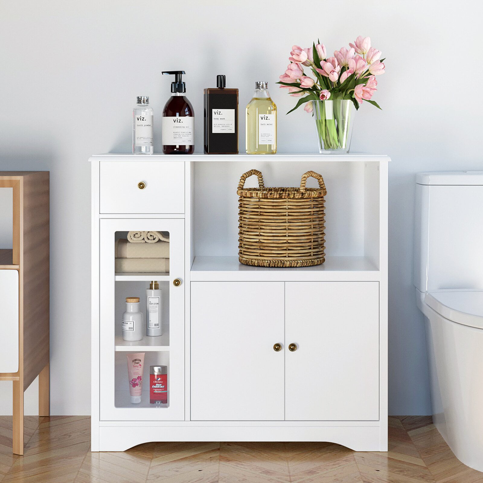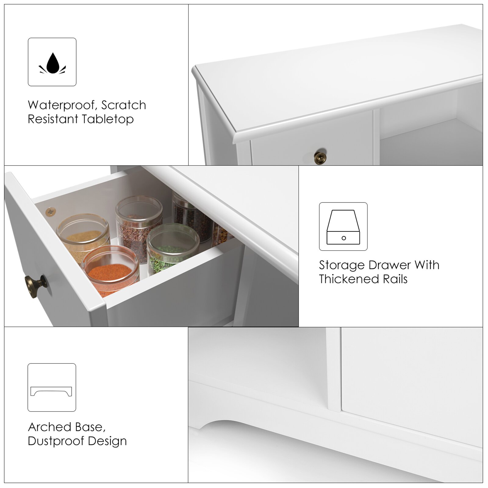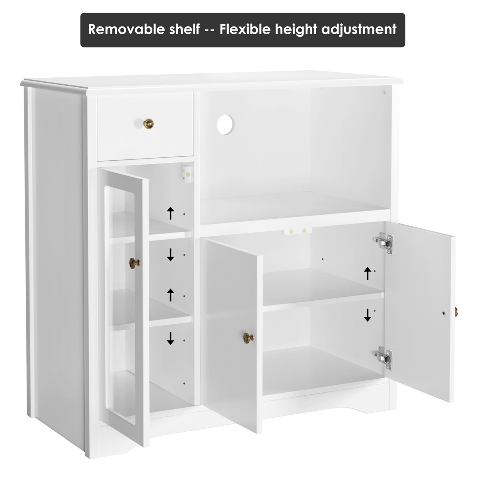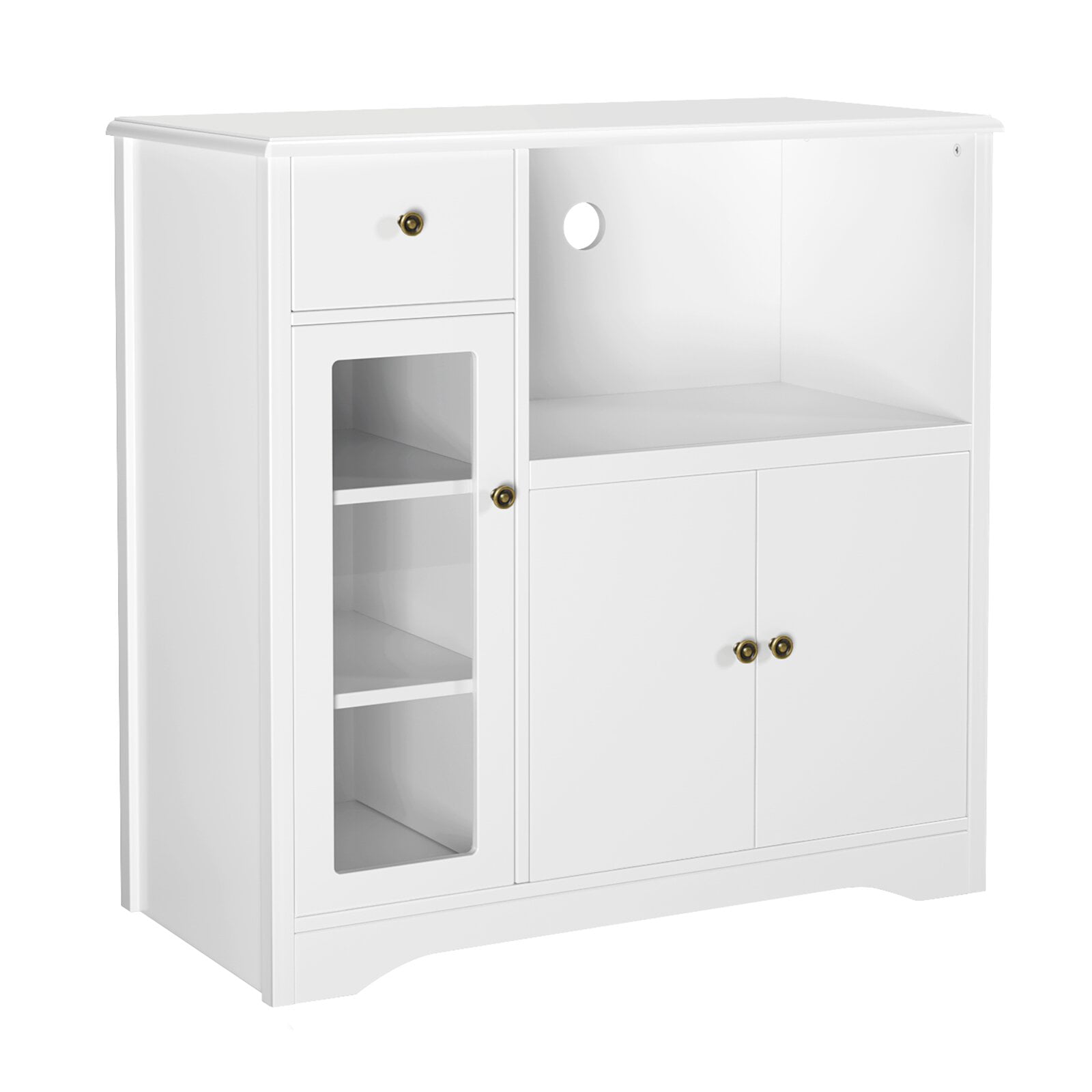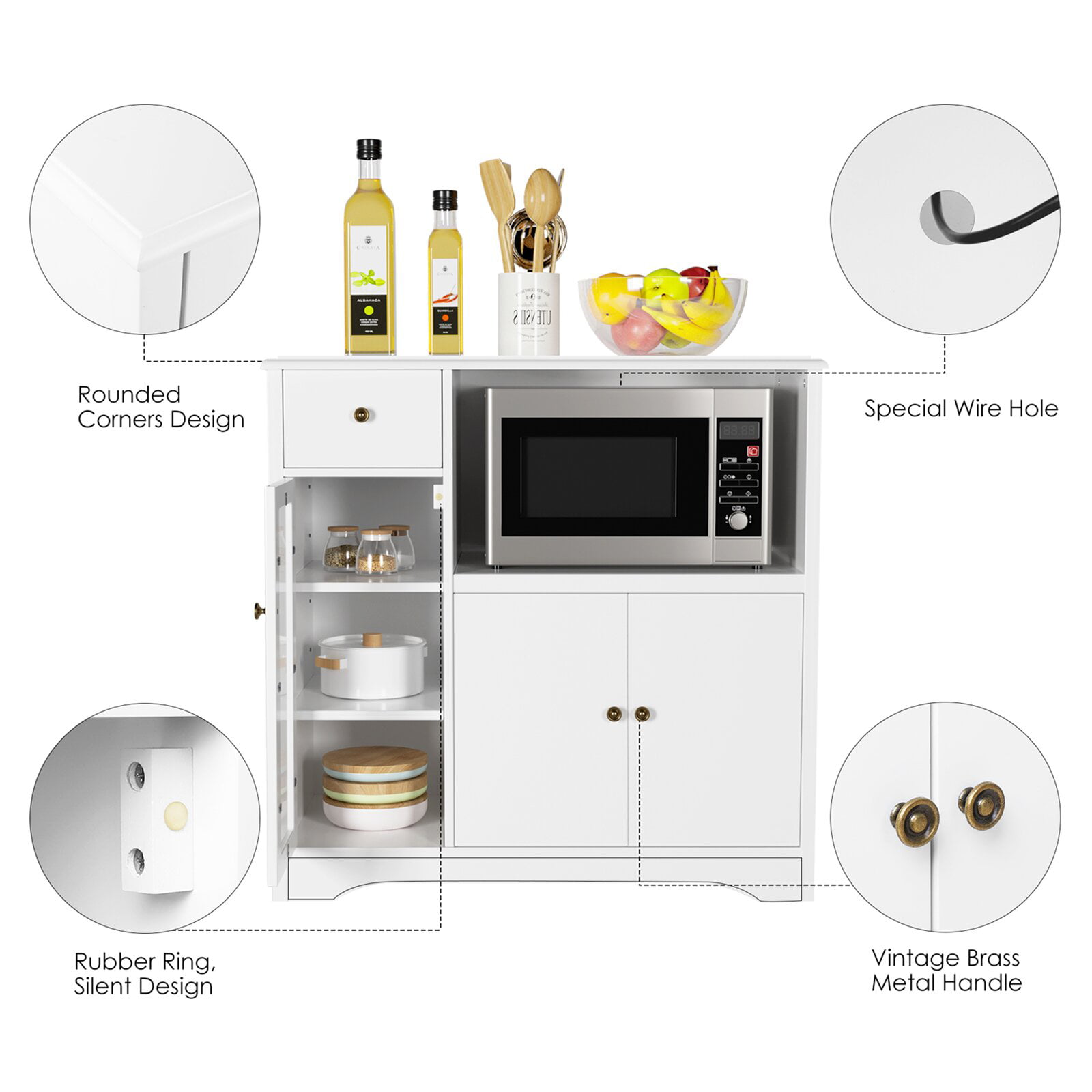 Homfa Microwave Cabinet with Hutch. Kitchen Pantry Cabinet Sideboard with Adjustable Shelves and Drawer for Dining Room. White