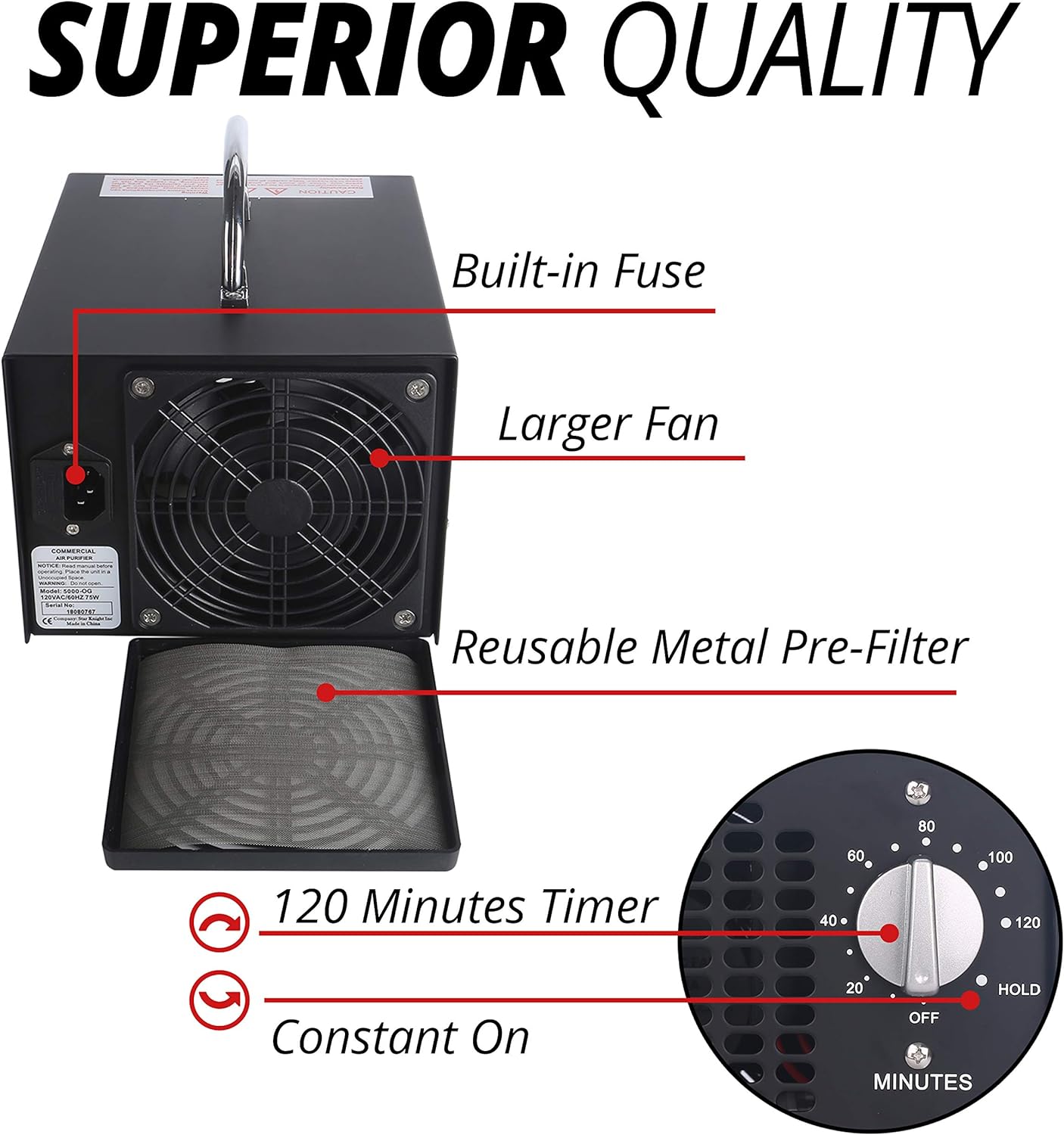 Mammoth 5000mg Ozone Generator for Car. Home and Large Rooms. Ozone Air Purifier for Smoke and Odor Removal in Automotive. House. Commercial Space(5000mg)