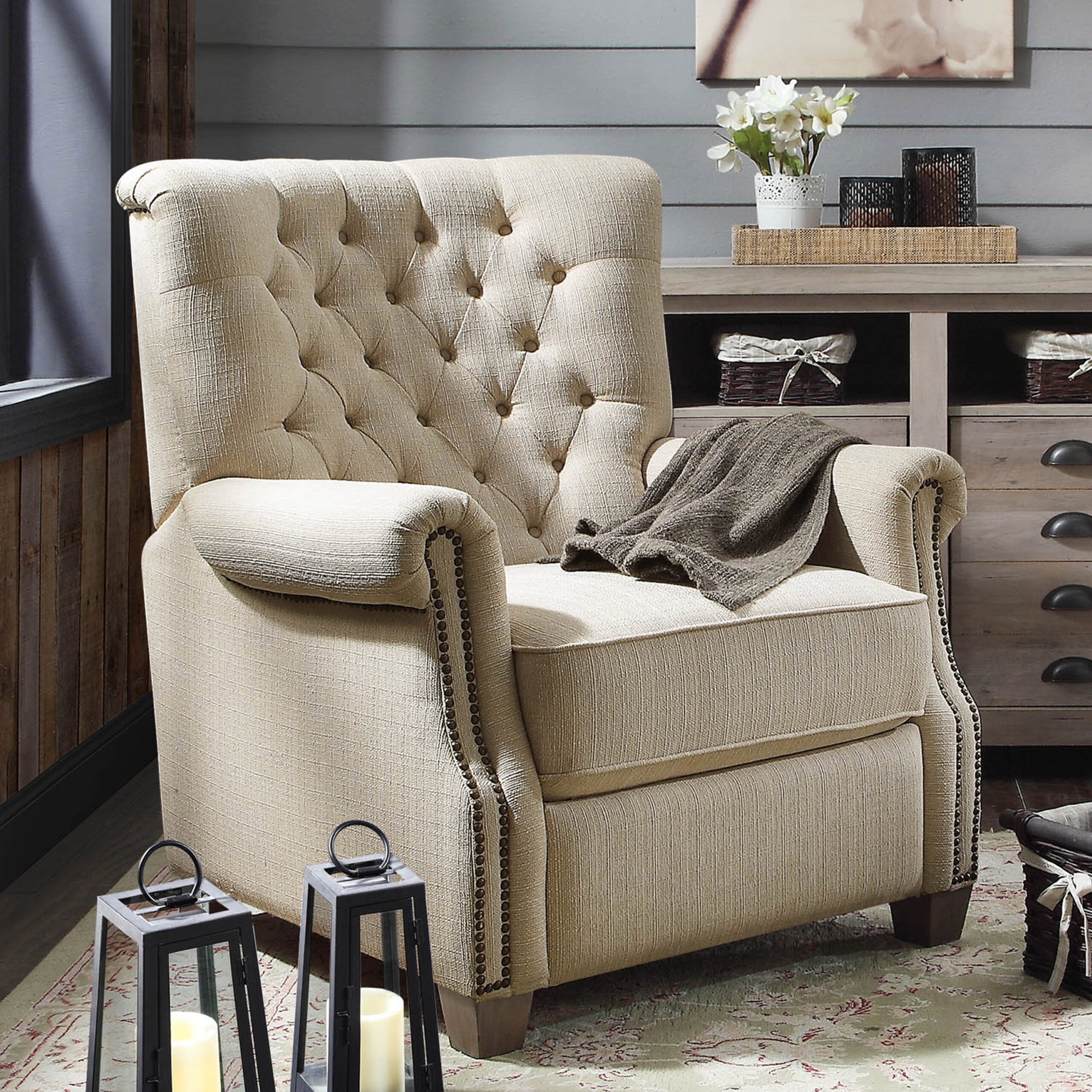 Better Homes & Gardens Tufted Push Back Recliner. Beige Fabric Upholstery