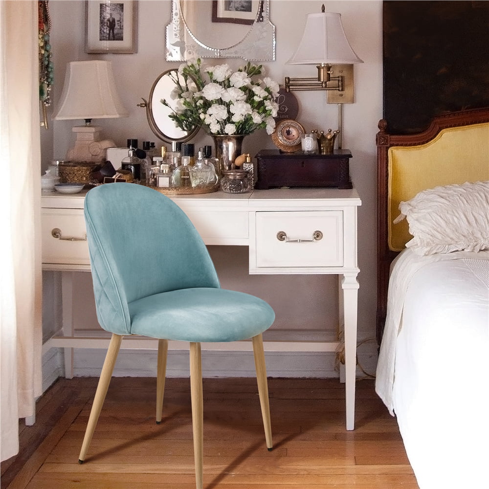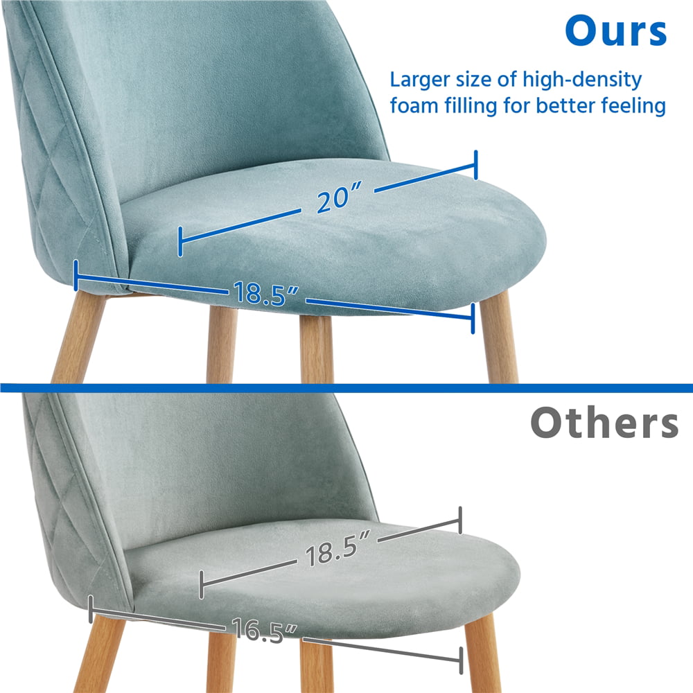 Easyfashion Velvet Dining Chairs with Wood Legs. Set of 2. Aqua