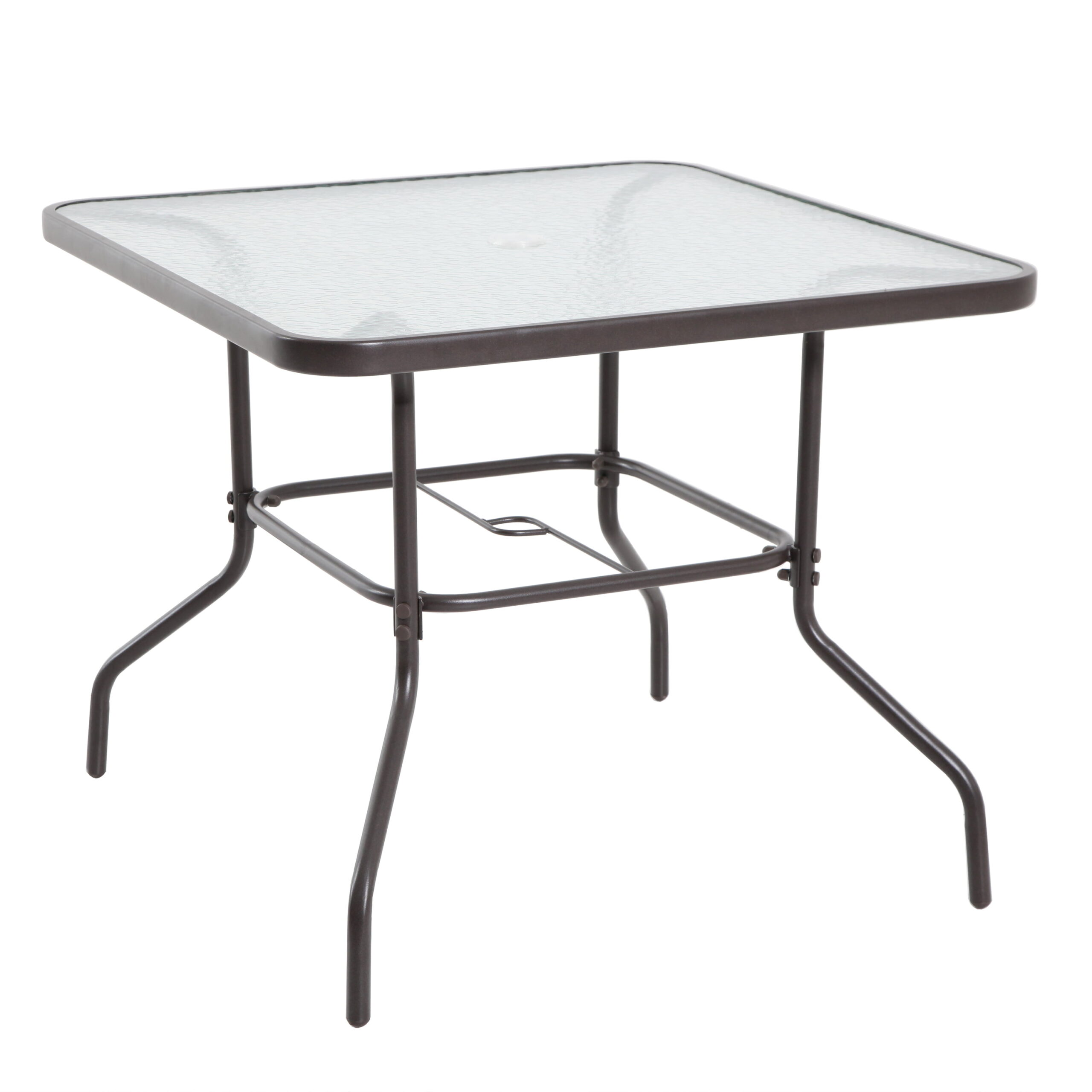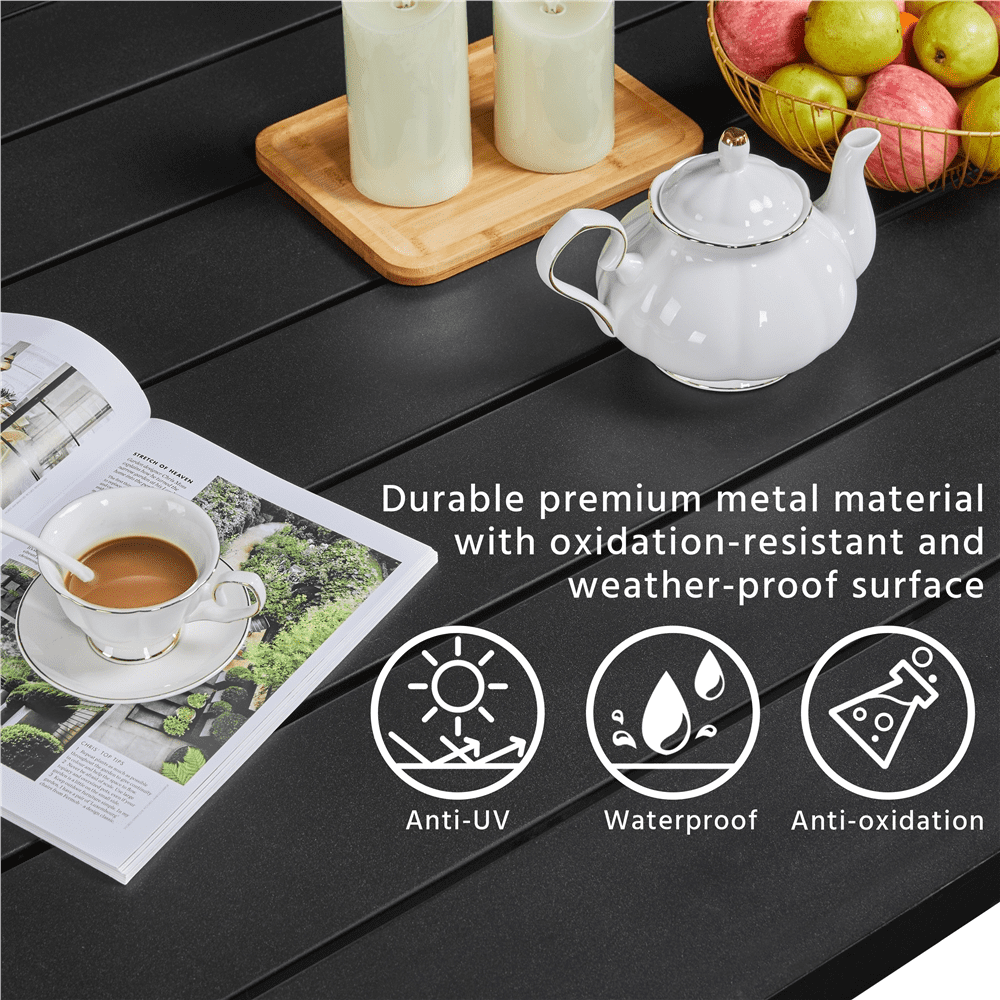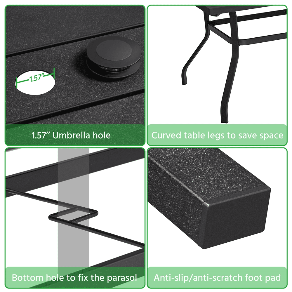 SMILE MART Patio Outdoor Dining Bistro Table with Umbrella Hole for Garden or Lawn. Black