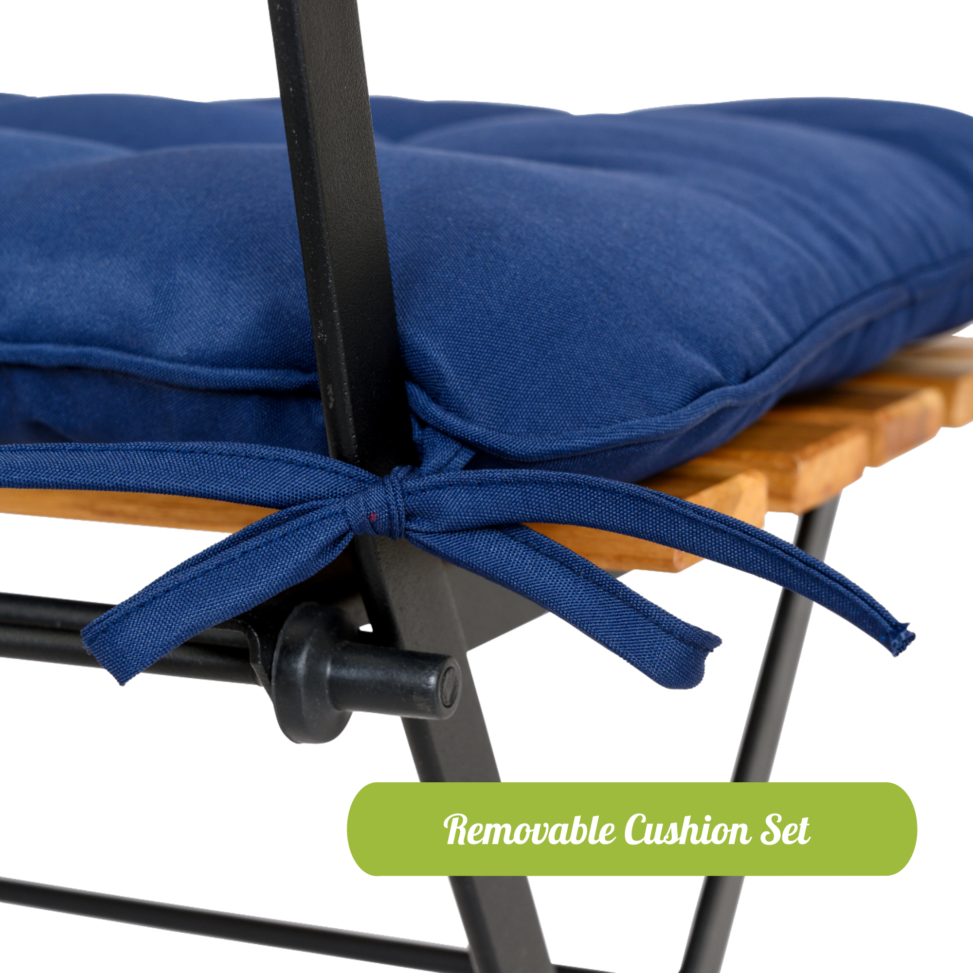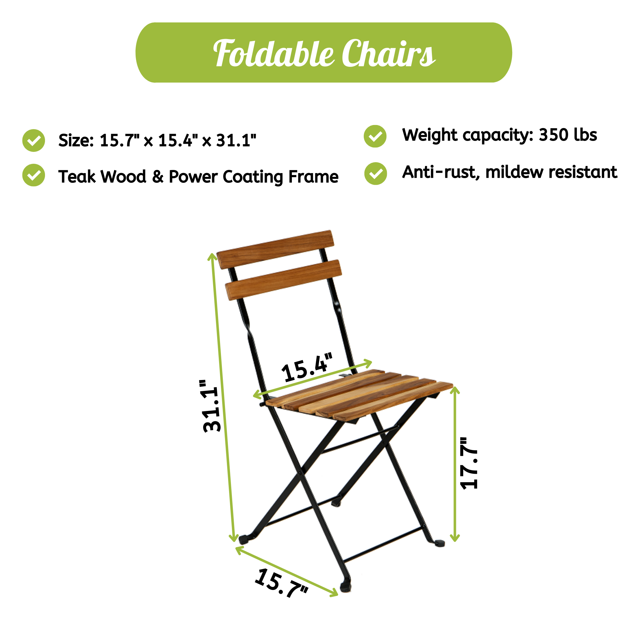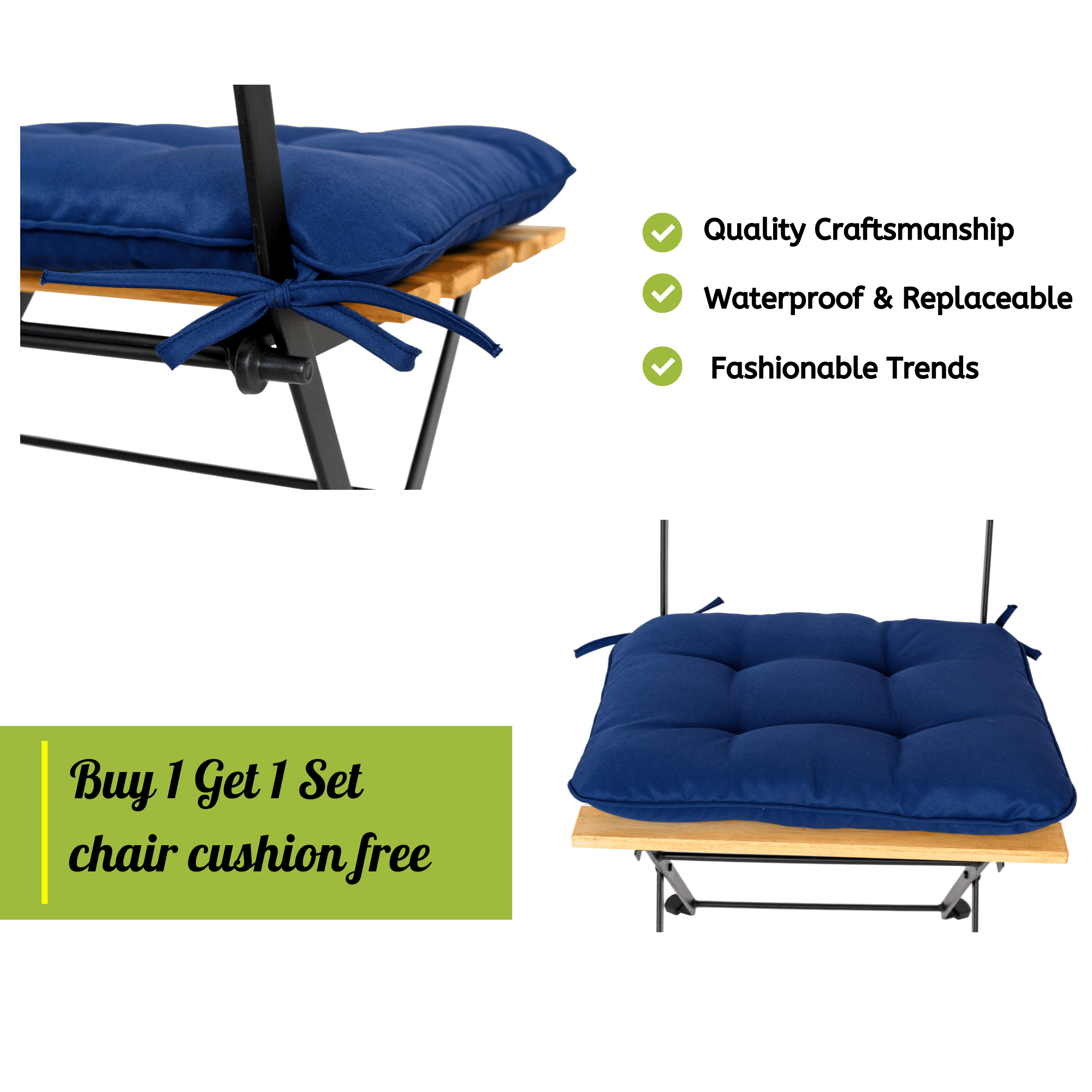 GIVIMO Bistro Set Solid Teak Wood Folding Table And Chair Set Power Coating Frame Patio Set With Waterproof Navy Cushion