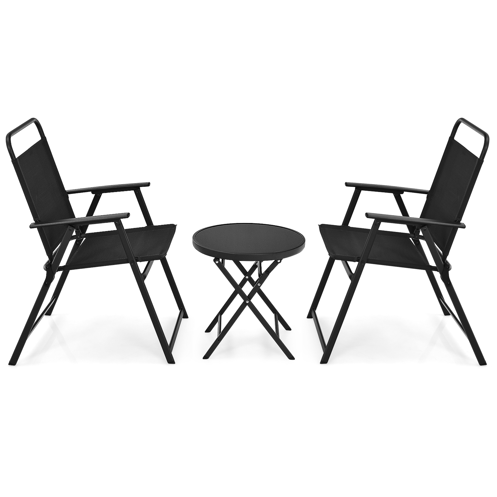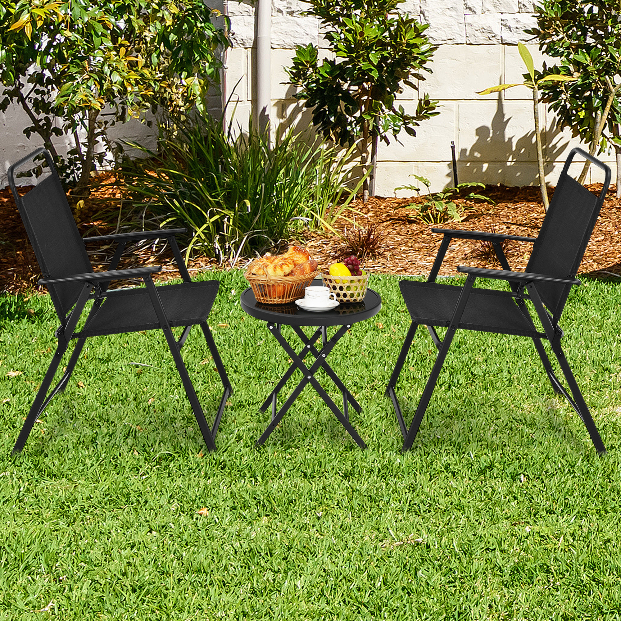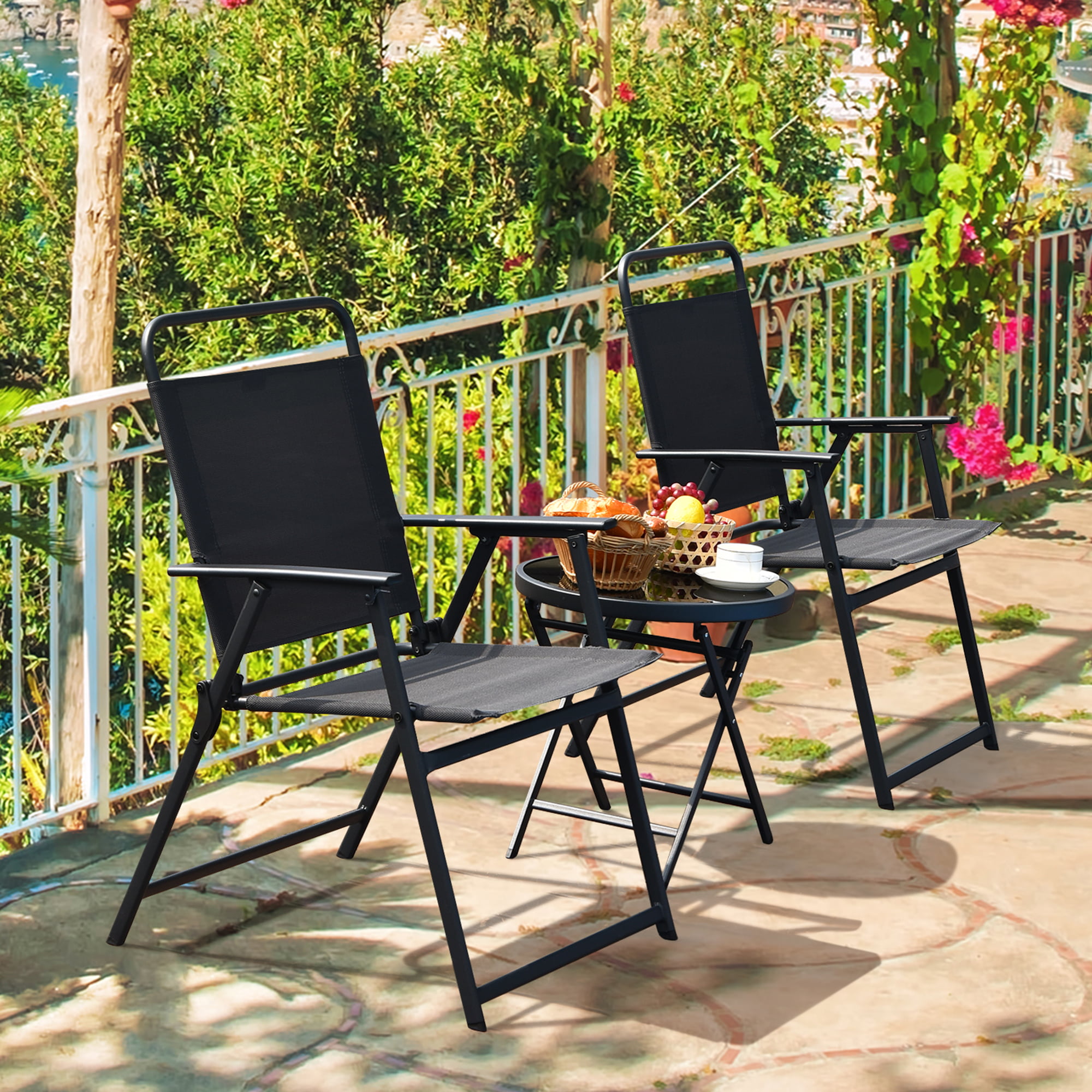 Gymax 3PCS Folding Patio Bistro Set Outdoor Furniture Set w/ Steel Frame. Black