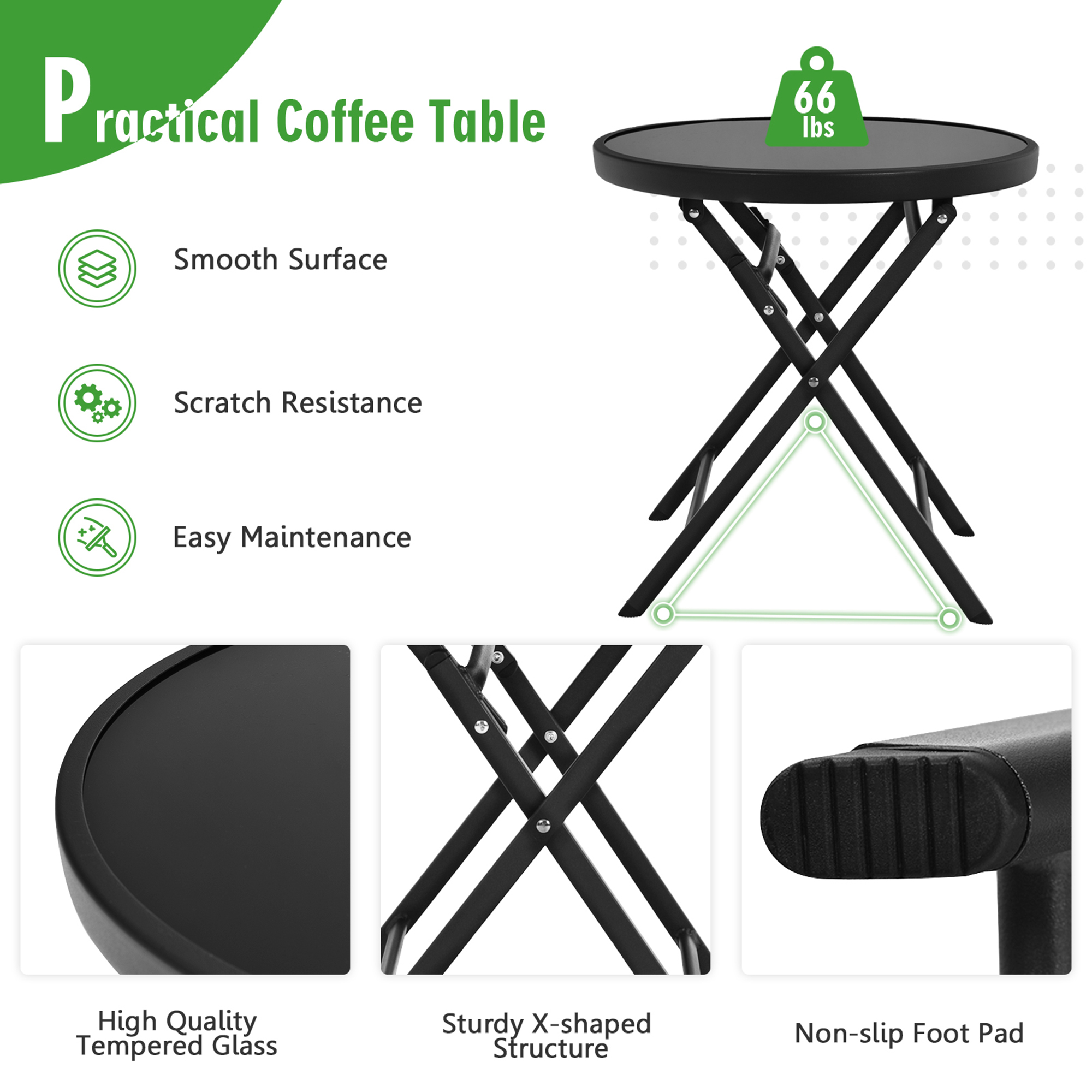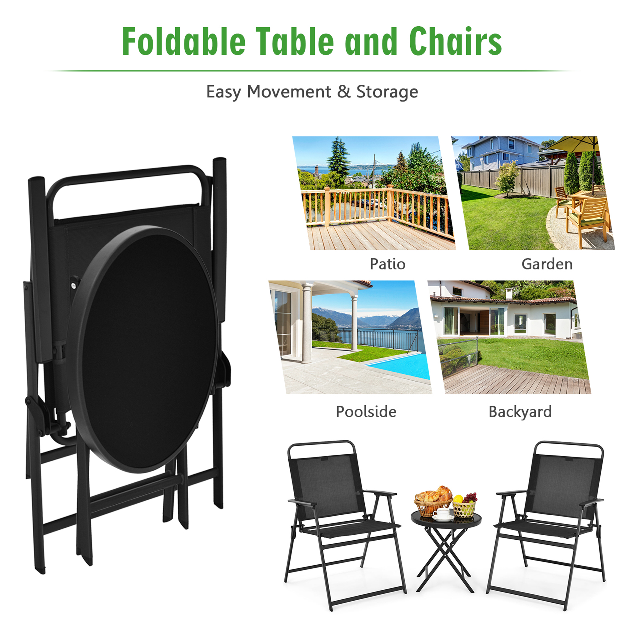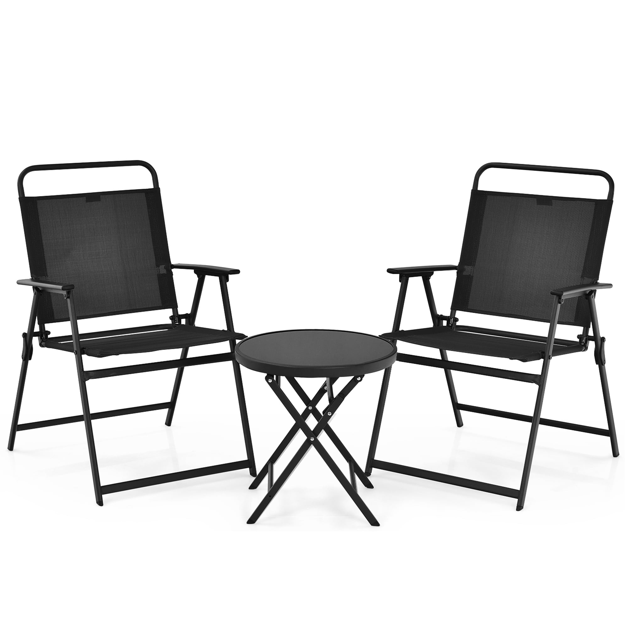 Gymax 3PCS Folding Patio Bistro Set Outdoor Furniture Set w/ Steel Frame. Black