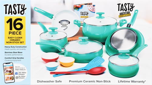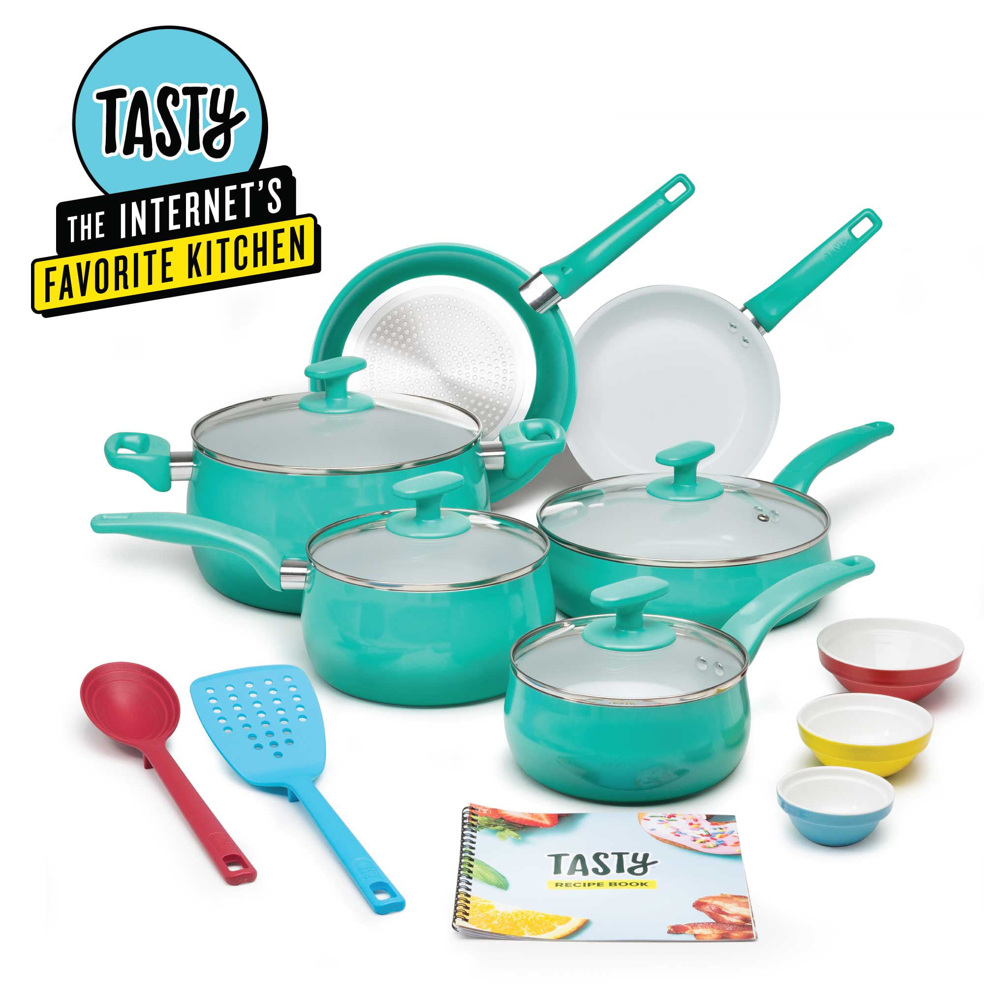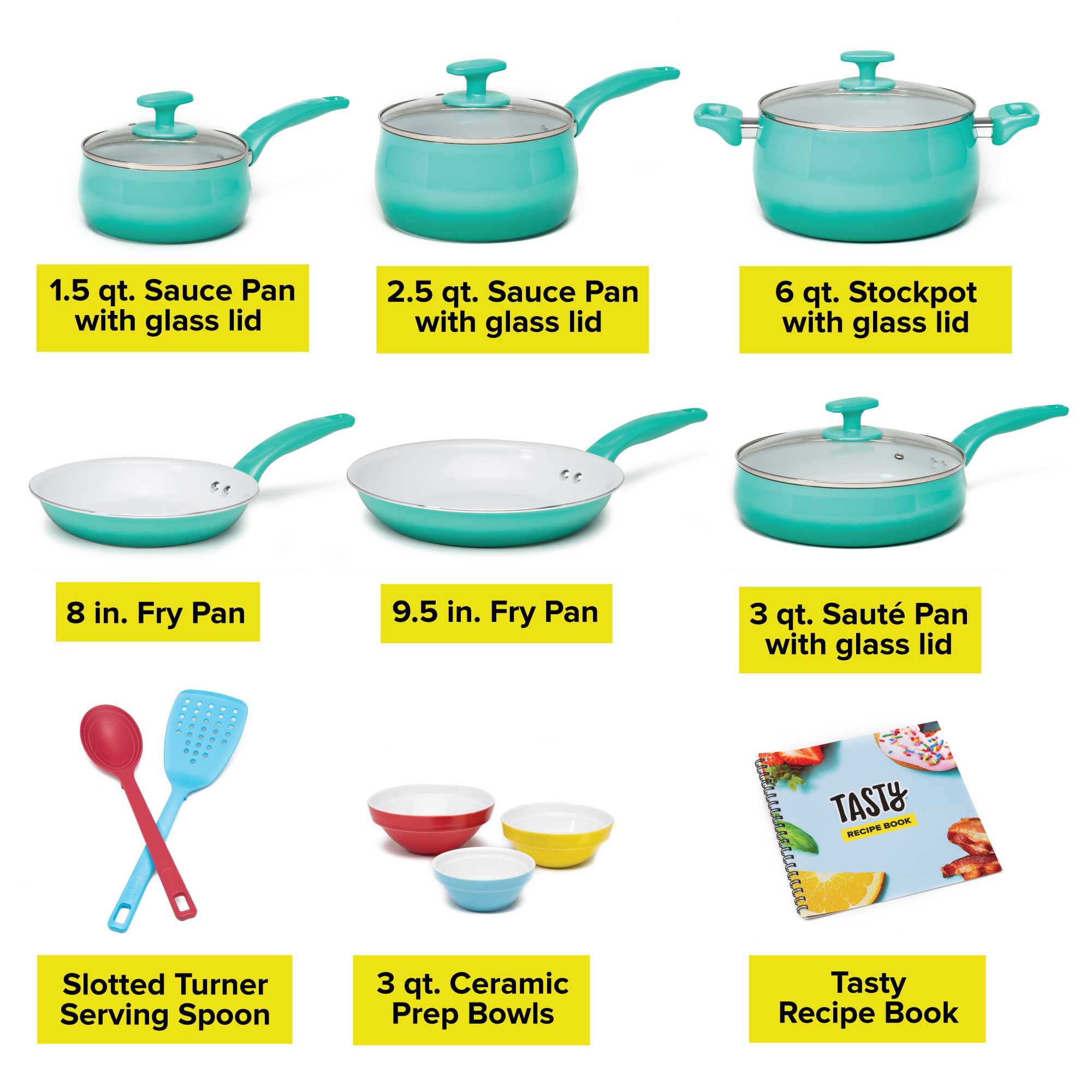Tasty Ceramic Titanium-Reinforced Cookware Set. Ombre Green. 16 Piece