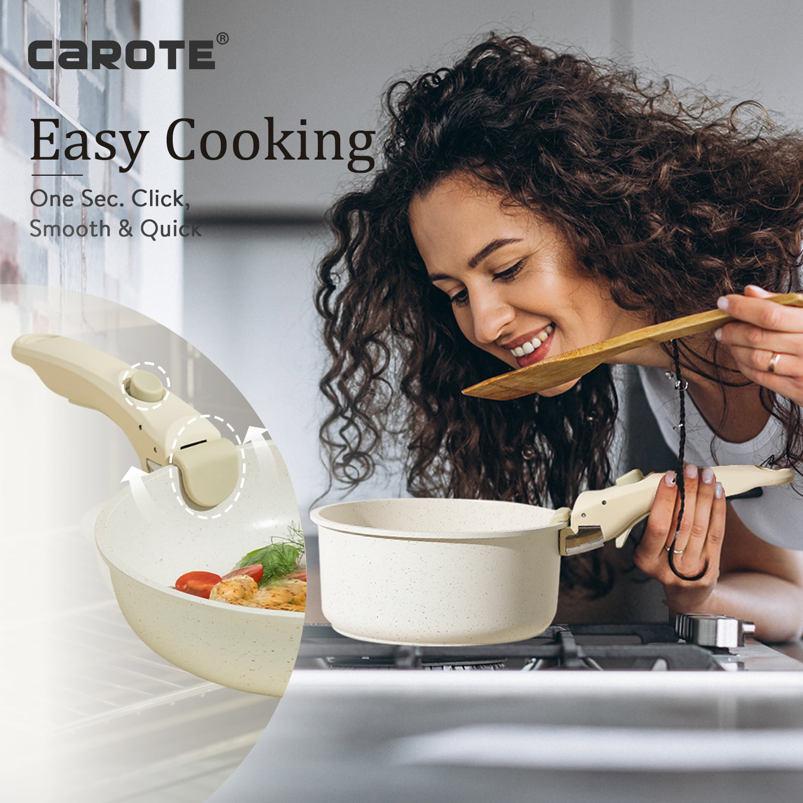 Carote Nonstick Cookware Sets. 9 Pcs Granite Non Stick Pots and Pans Set with Removable Handle