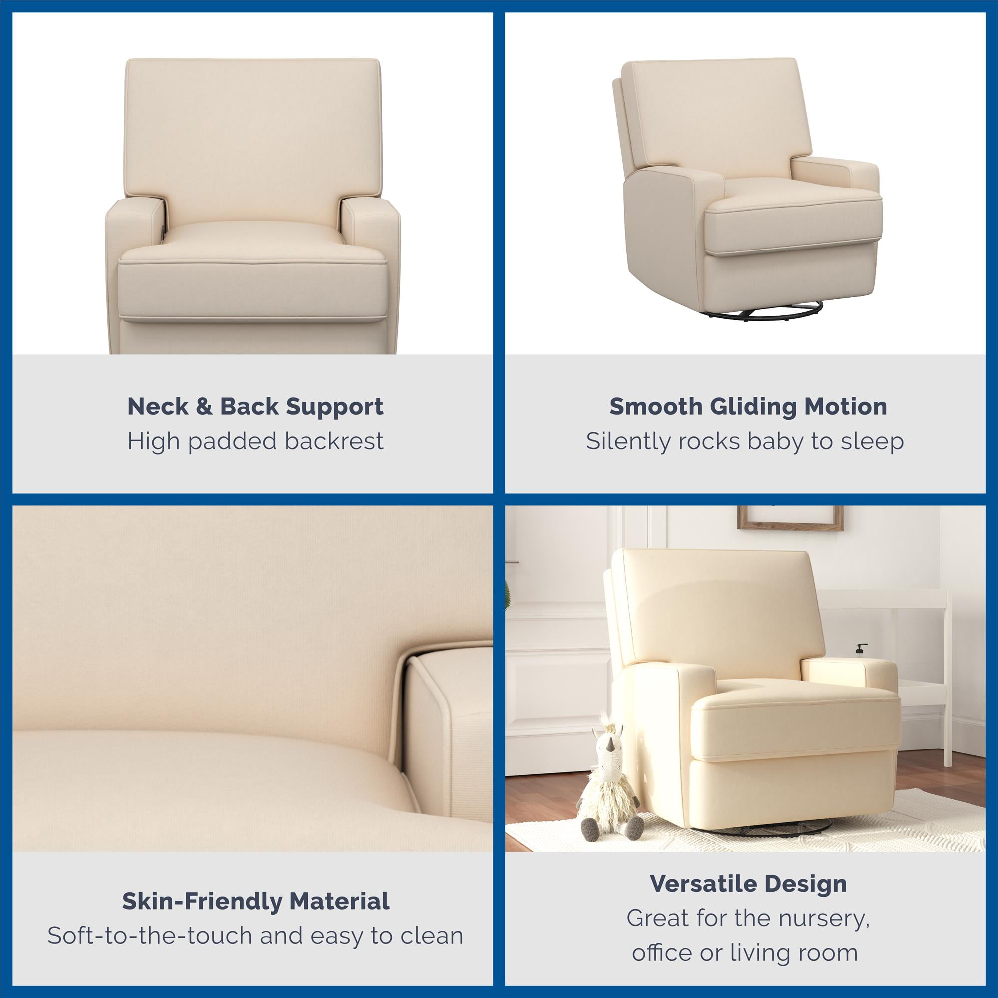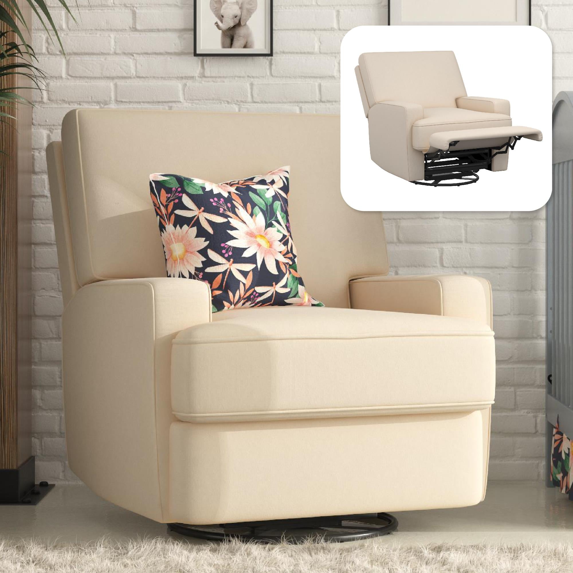Baby Relax Rylan 4-in-1 Swivel Glider Rocker Recliner Chair. Beige Velvet