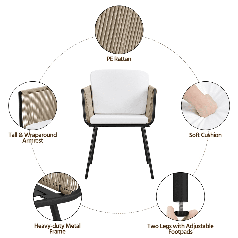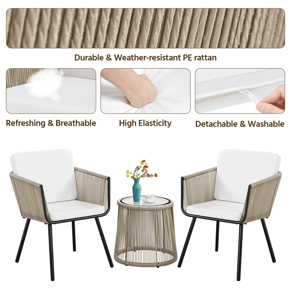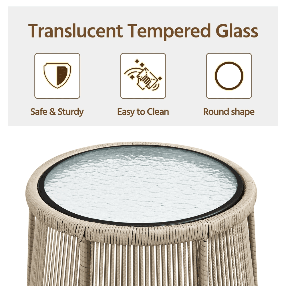 SMILE MART 3-Piece Outdoor Metal Frame Wicker Bistro Set 2 Chairs and Tempered Glass Top Side Table. Tan