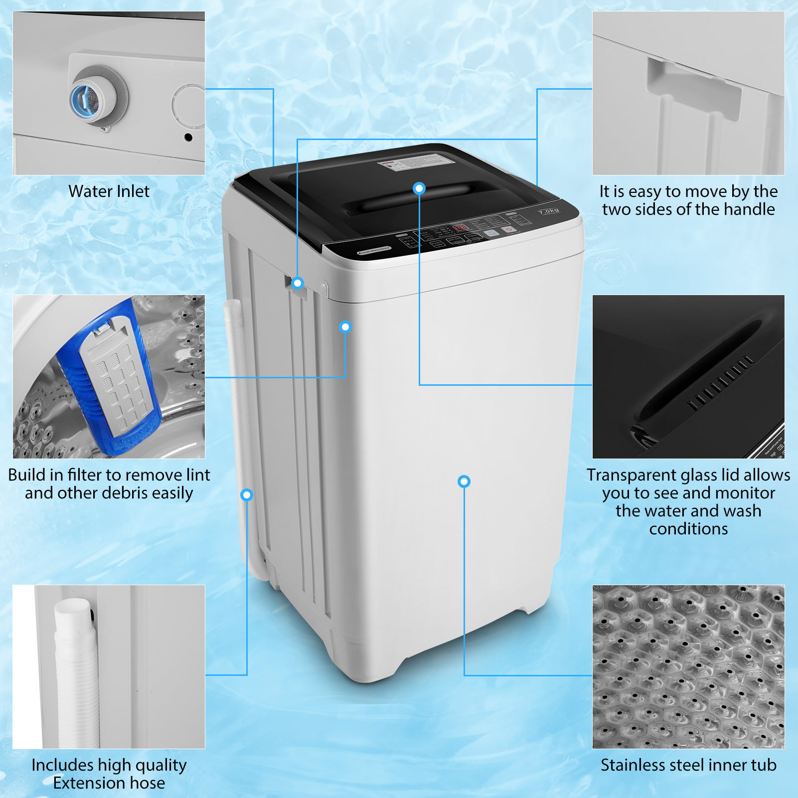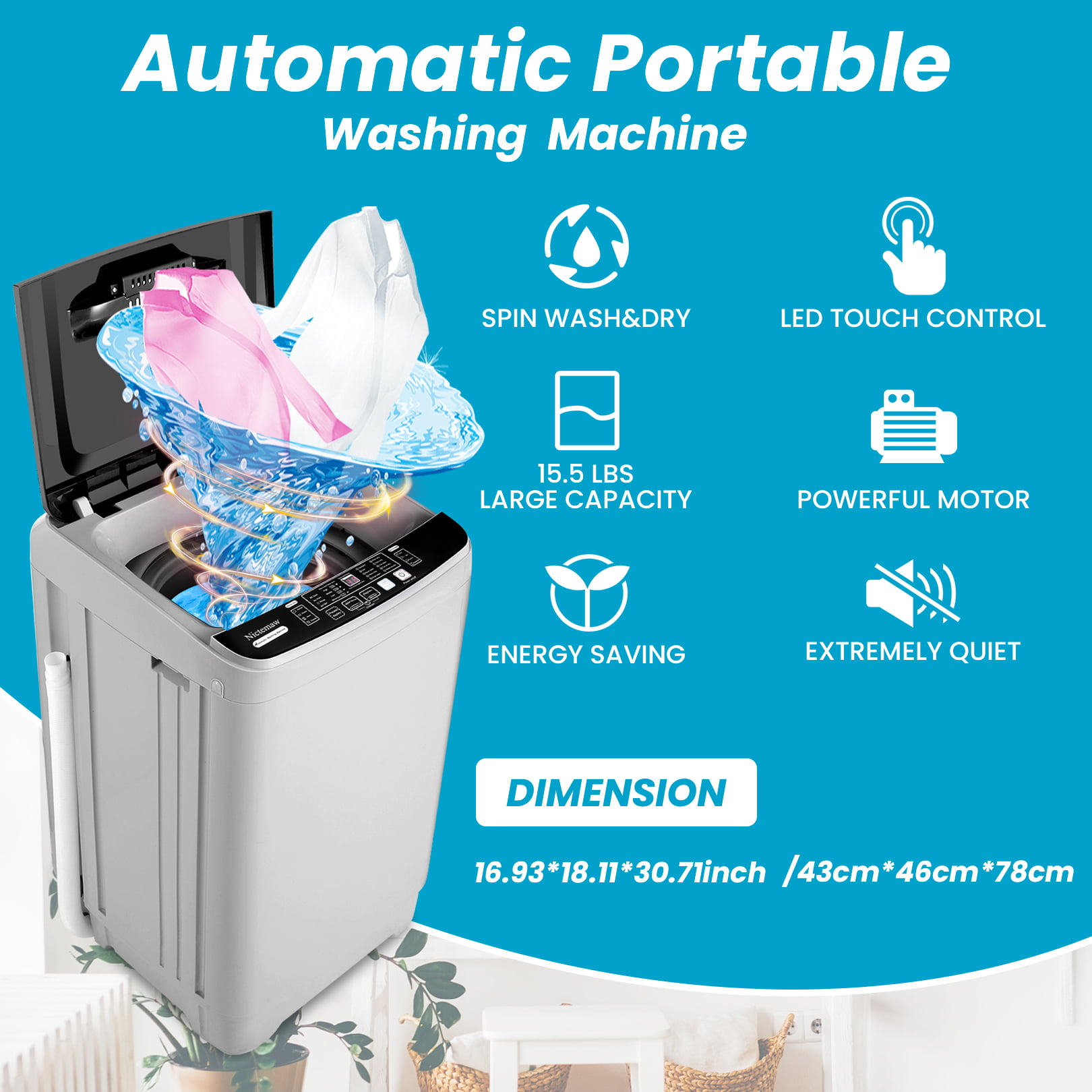 Portable Washing Machine. 17.6lbs Large Capacity Fully-Automatic Laundry Washer 1.9Cu.ft Washer Machine Ideal for Apartments Dorms Families