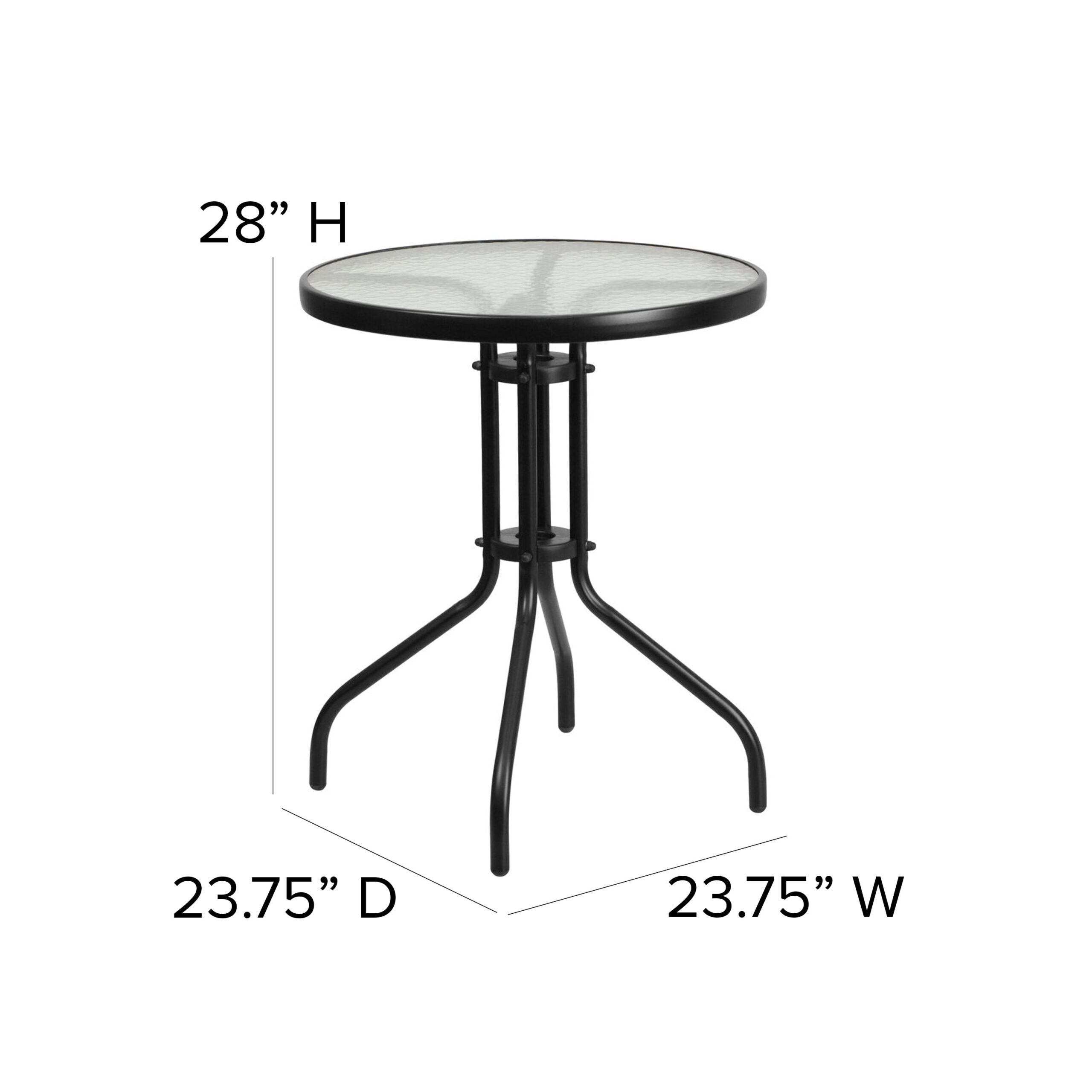 Flash Furniture 23.75″ Round Glass Metal Table with 2 Black Metal Aluminum Slat Stack Chairs