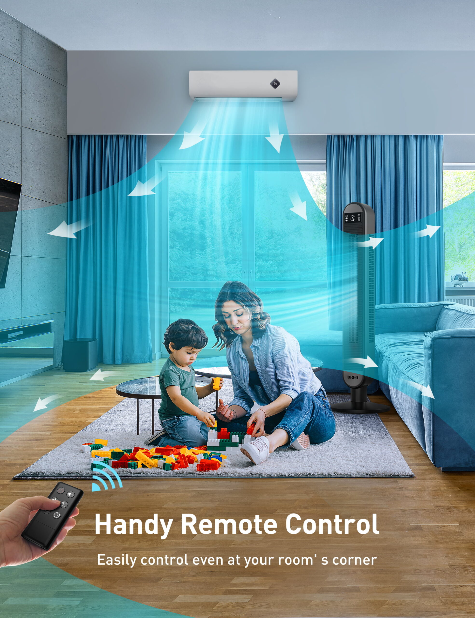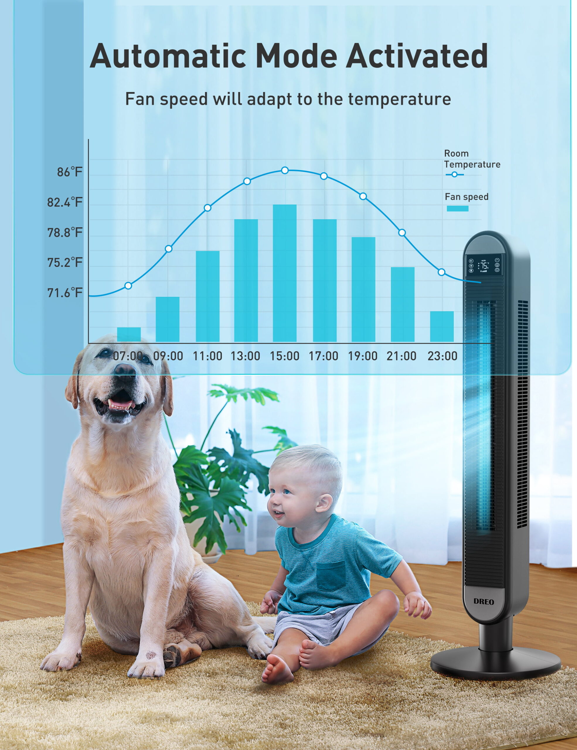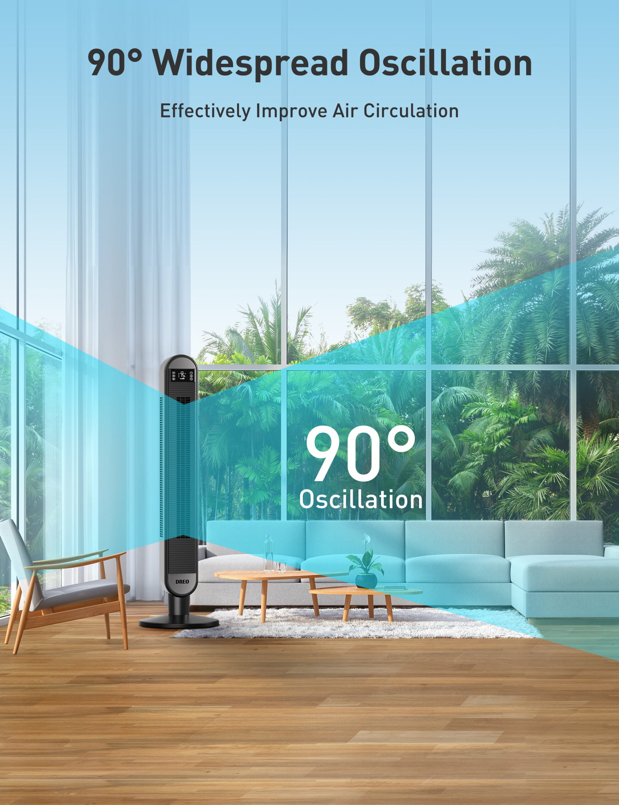 Dreo Tower Fan for Bedroom. 42 Inch Bladeless Fan. 90° Oscillating Fan. Quiet Floor Fan with Remote. LED Display. 6 Speeds 4 Modes. 12H Timer. Standing Fans for Home Living Room Office. Cruiser Pro T2