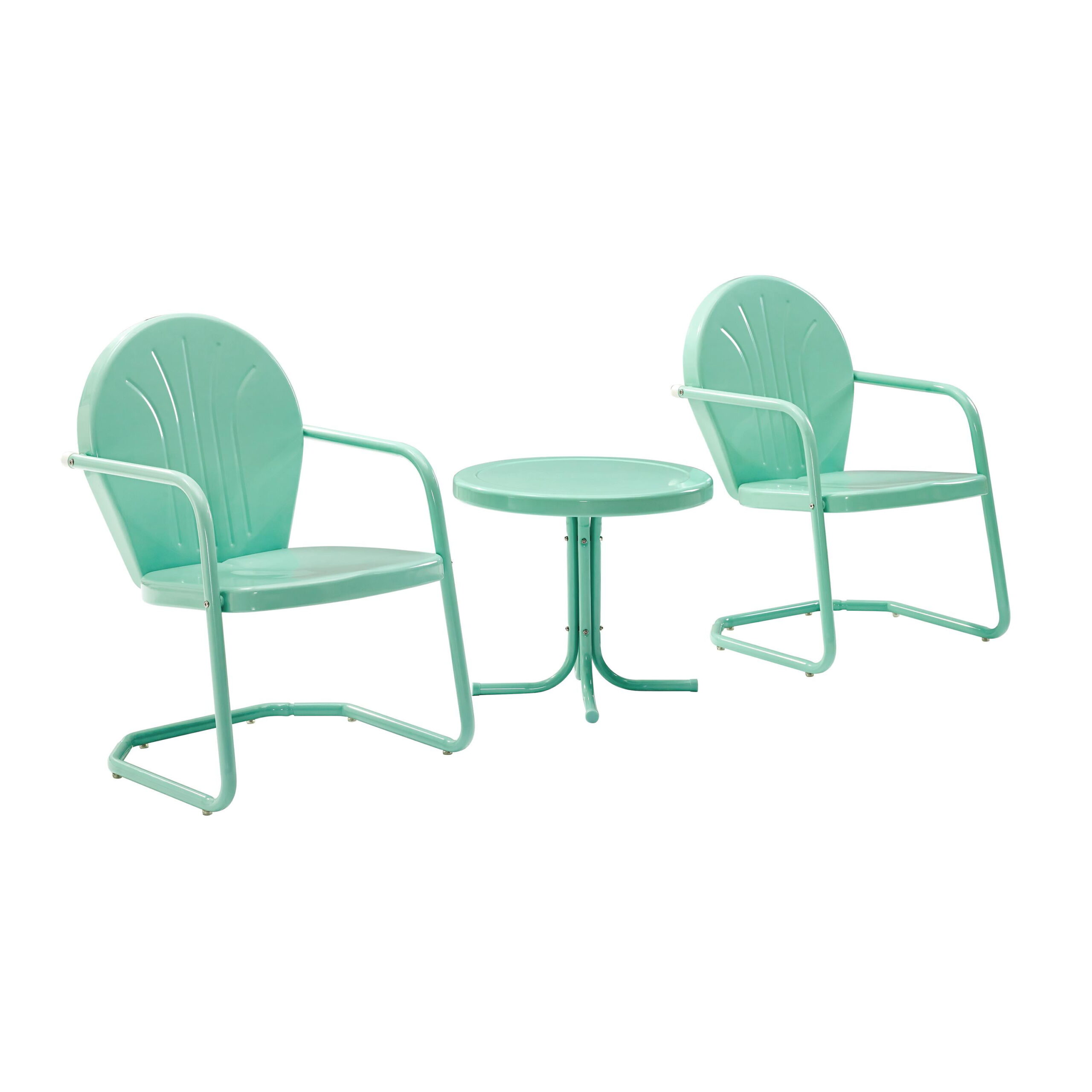 Griffith 3Pc Outdoor Metal Armchair Set Aqua Gloss - Side Table & 2 Chairs