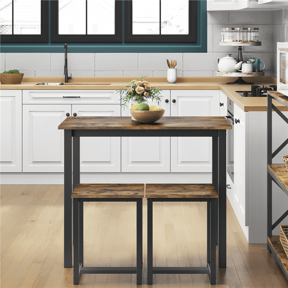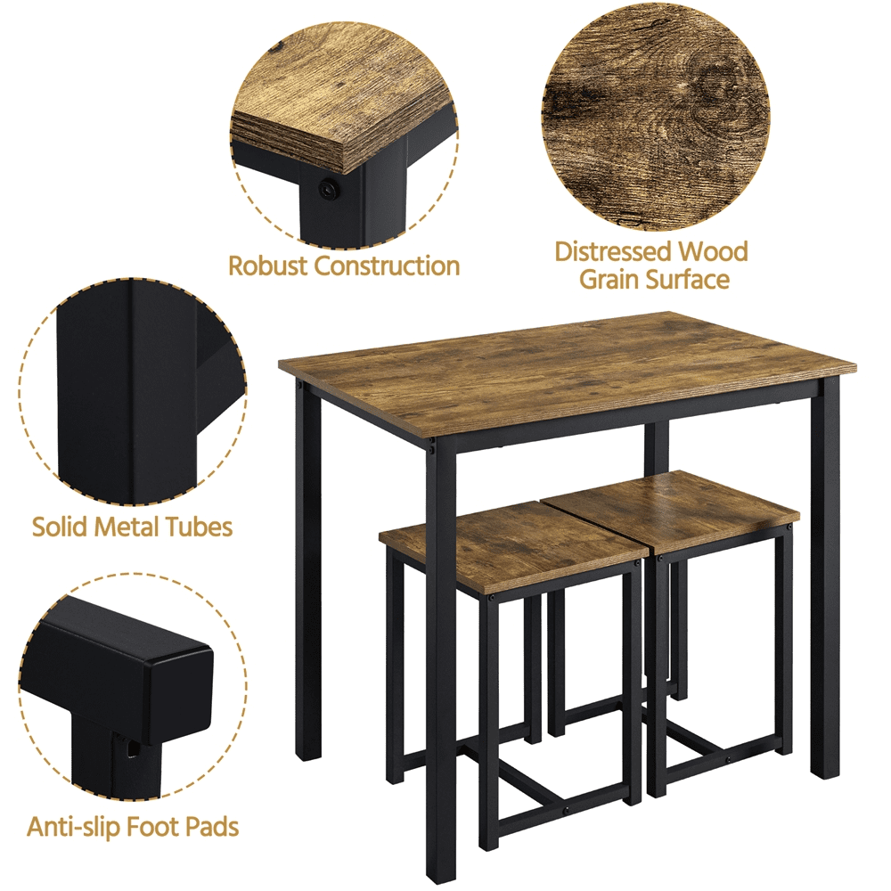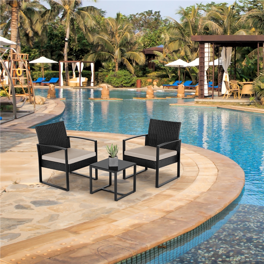 Easyfashion 3-Piece Bistro Set with Rattan Chairs for Outdoor. Beige Cushions